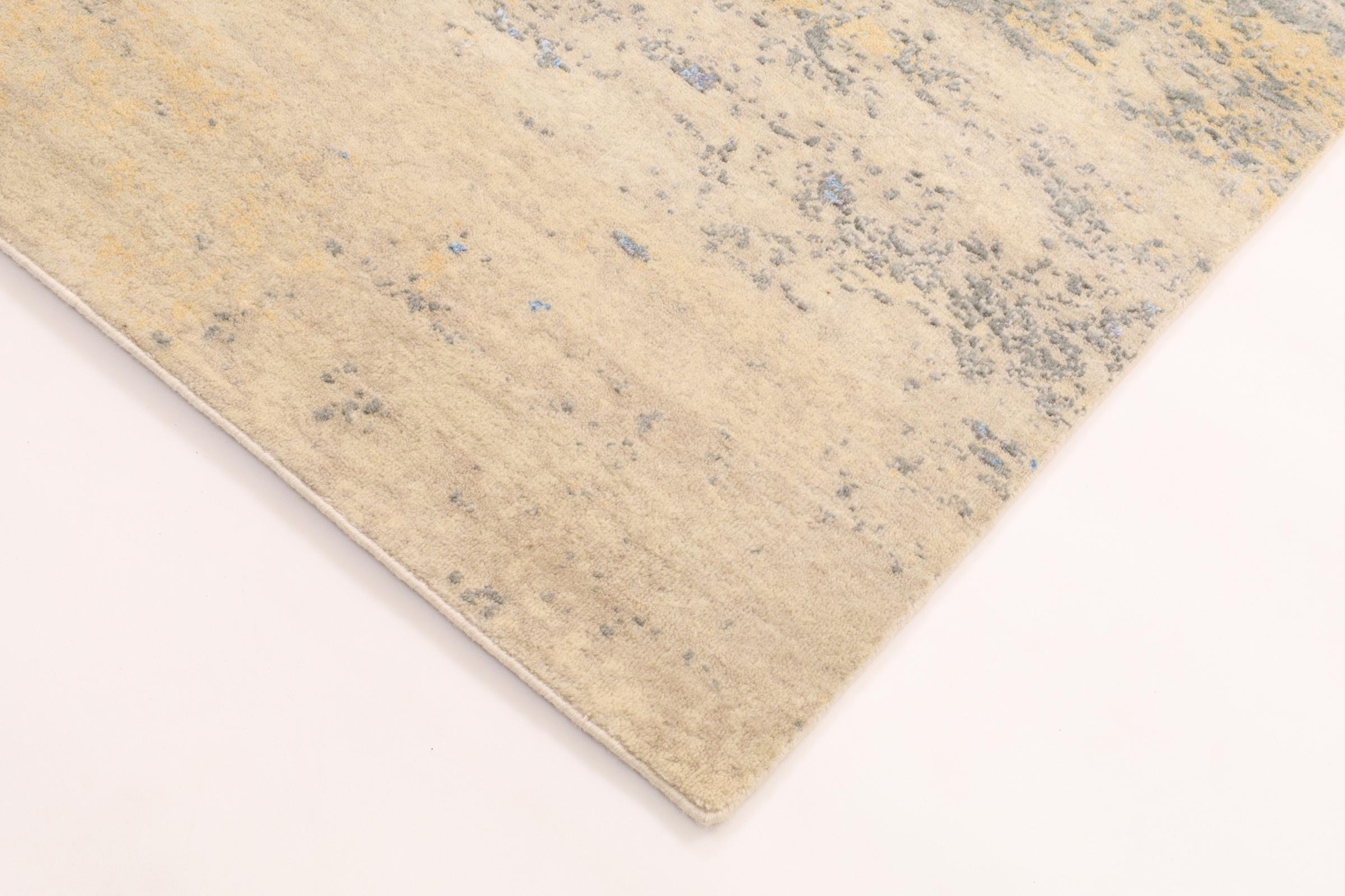 Este Sadraa é um tapete de design único, feito à mão durante meses. Os seus materiais de alta qualidade são combinados com um design muito moderno. O tapete não deixa nada a desejar. Graças ao artesanato das técnicas tradicionais de nó oriental, ele sobrevive a décadas e cargas pesadas. Foi criado por designers no estilo escandinavo, que continua a oferecer um destaque absoluto mesmo após anos. Em particular, a combinação de lã de ovelha macia e seda de bambu brilhante ou viscose proporciona uma experiência única.