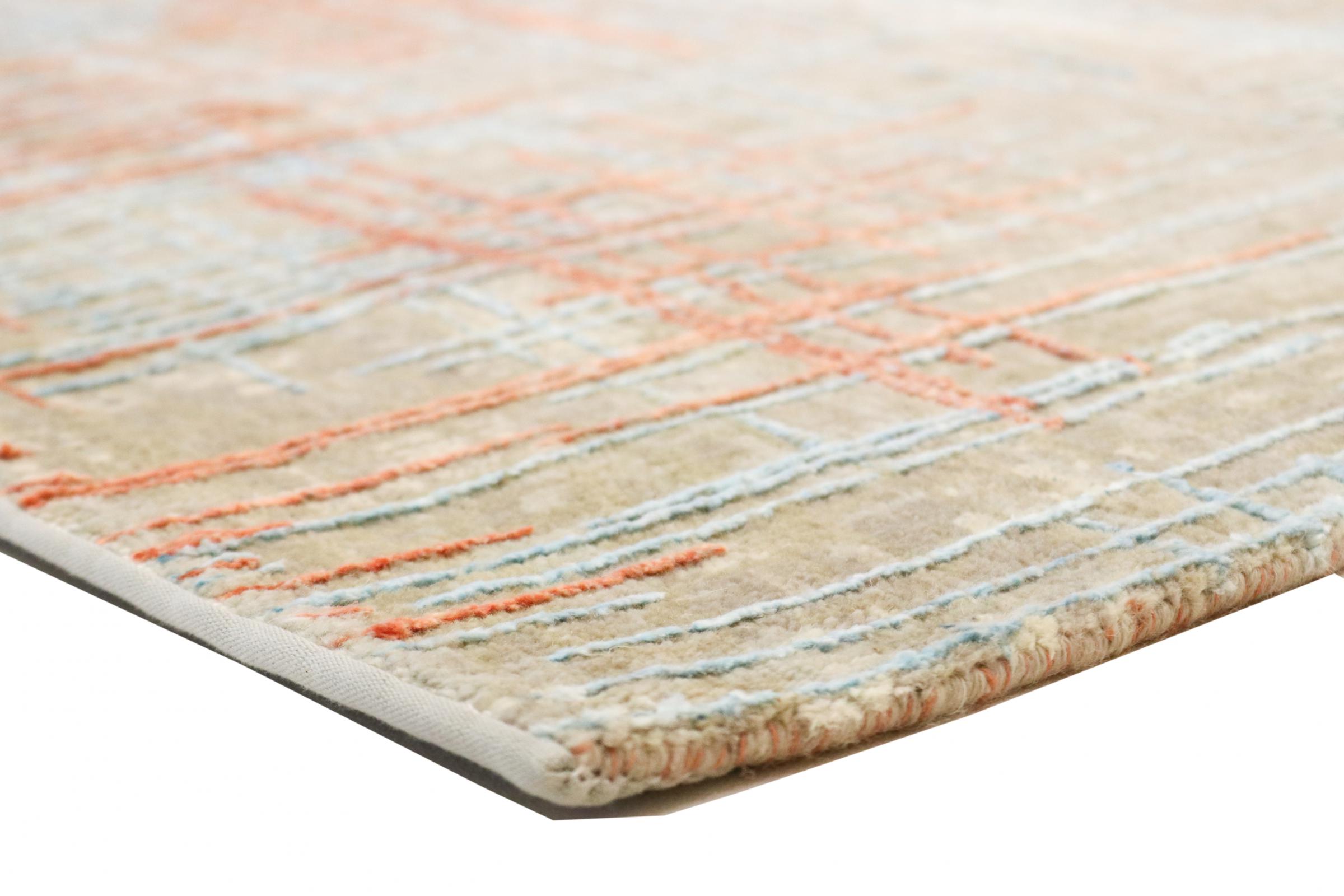 Este Sadraa é um tapete de design único, feito à mão durante meses. Os seus materiais de alta qualidade são combinados com um design muito moderno. O tapete não deixa nada a desejar. Graças ao artesanato das técnicas tradicionais de nó oriental, ele sobrevive a décadas e cargas pesadas. Foi criado por designers no estilo escandinavo, que continua a oferecer um destaque absoluto mesmo após anos. Em particular, a combinação de lã de ovelha macia e seda de bambu brilhante ou viscose proporciona uma experiência única.