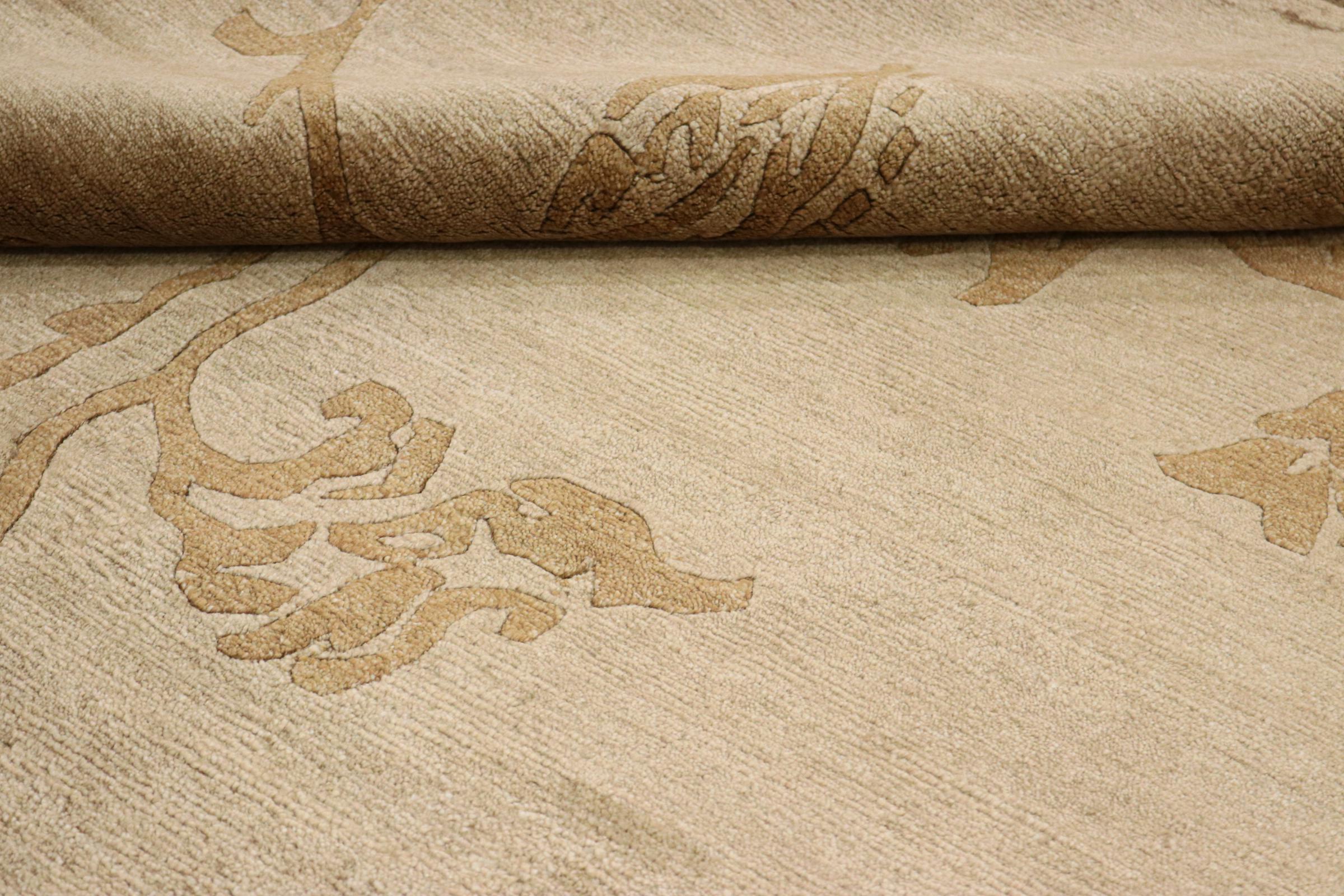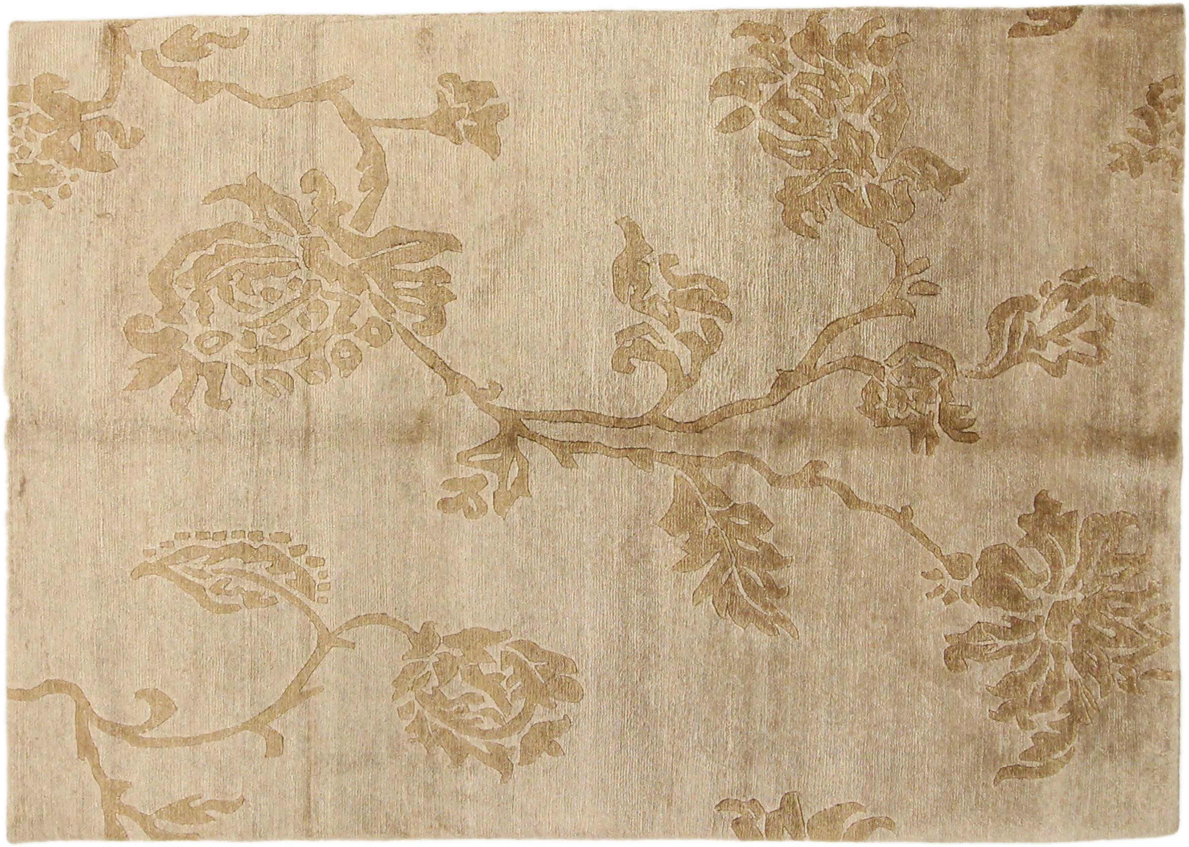 Esta alcatifa vem do Nepal e foi atada ali à mão. Normalmente, os tapetes nepaleses são um pouco mais grosseiros e têm padrões coloridos modernos. As variações clássicas captam desenhos de tapetes tradicionais chineses. O aspecto dos tapetes do Nepal tem sido adaptado ao longo do tempo para satisfazer a procura dos mercados ocidentais. Hoje em dia é possível encontrar cores pastel e padrões geométricos nestes tapetes com nó de mão.