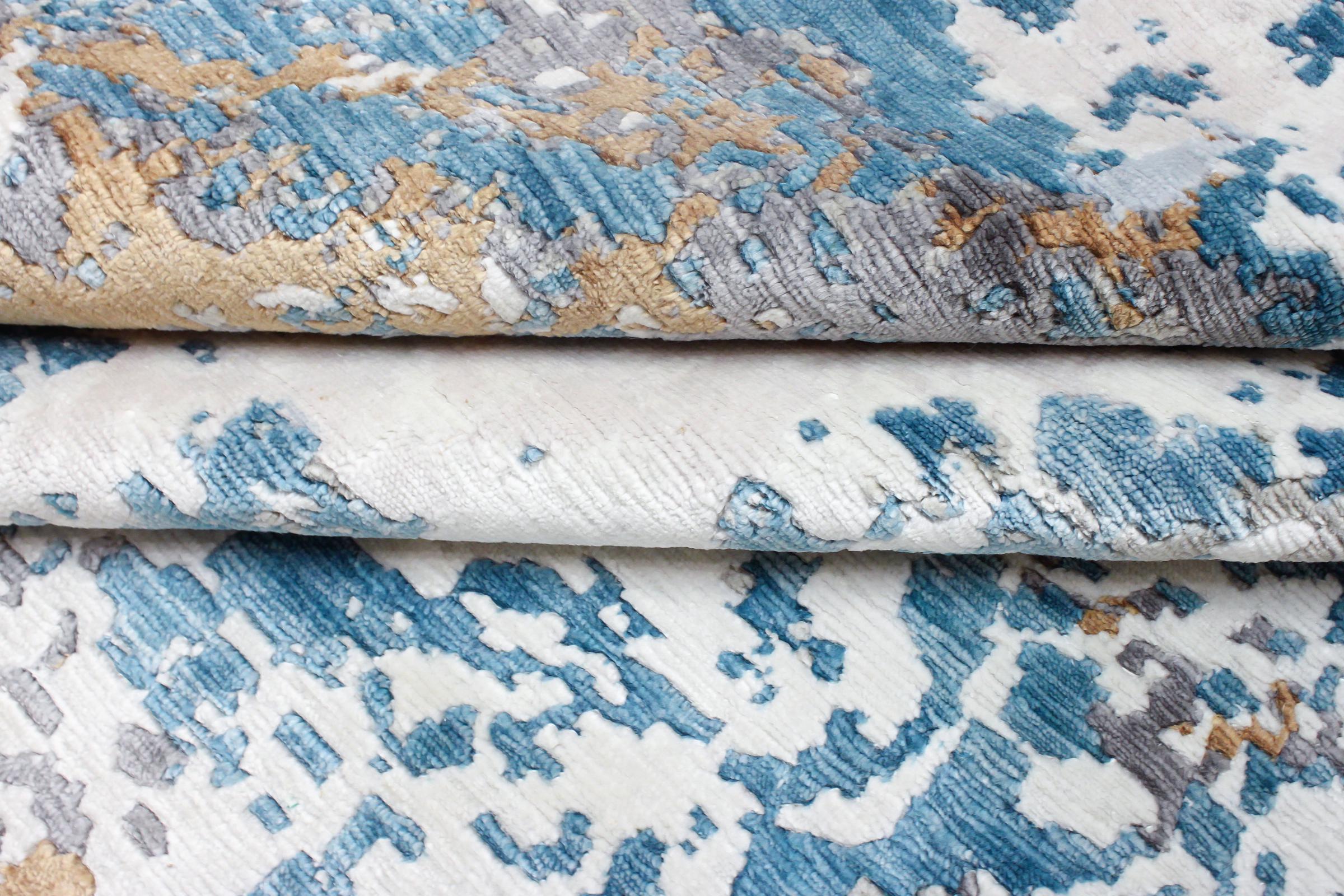 Este Sadraa é um tapete de design único, feito à mão durante meses. Os seus materiais de alta qualidade são combinados com um design muito moderno. O tapete não deixa nada a desejar. Graças ao artesanato das técnicas tradicionais de nó oriental, ele sobrevive a décadas e cargas pesadas. Foi criado por designers no estilo escandinavo, que continua a oferecer um destaque absoluto mesmo após anos. Em particular, a combinação de lã de ovelha macia e seda de bambu brilhante ou viscose proporciona uma experiência única.