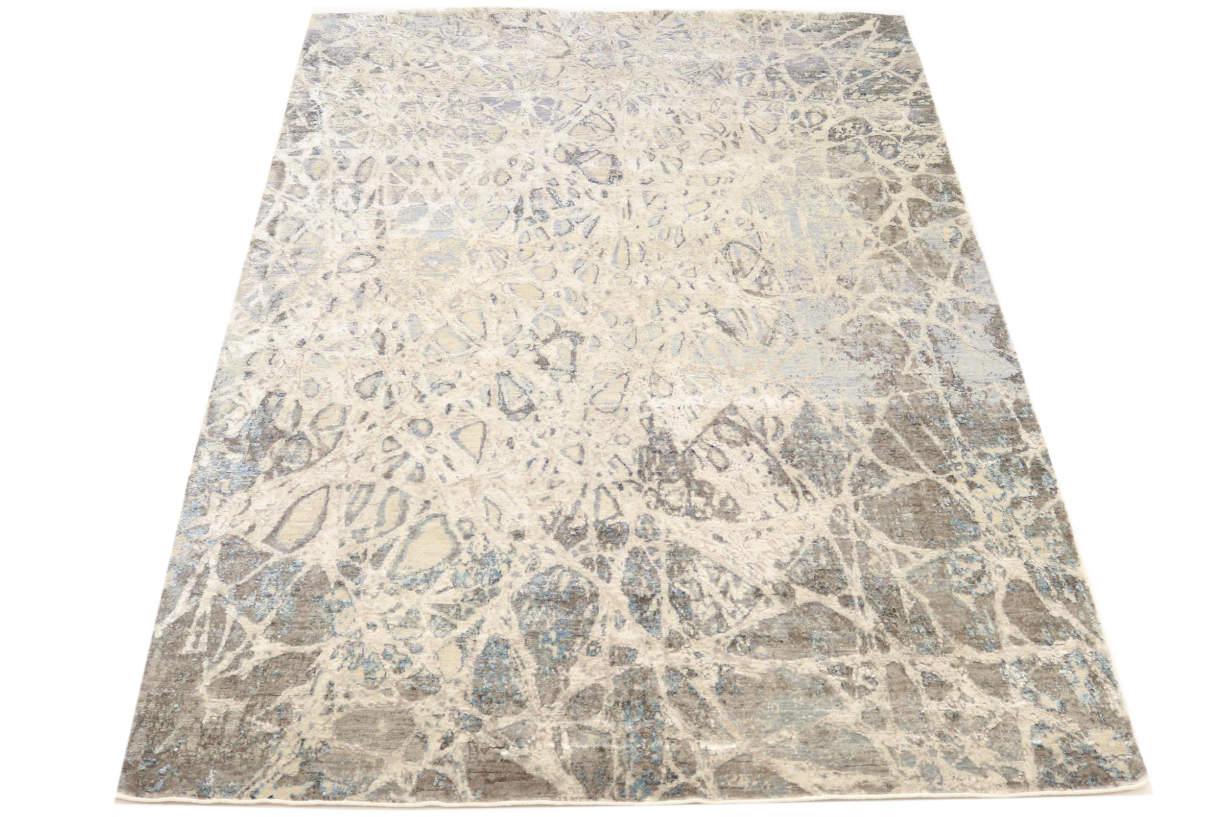 Este Sadraa é um tapete de design único, feito à mão durante meses. Os seus materiais de alta qualidade são combinados com um design muito moderno. O tapete não deixa nada a desejar. Graças ao artesanato das técnicas tradicionais de nó oriental, ele sobrevive a décadas e cargas pesadas. Foi criado por designers no estilo escandinavo, que continua a oferecer um destaque absoluto mesmo após anos. Em particular, a combinação de lã de ovelha macia e seda de bambu brilhante ou viscose proporciona uma experiência única.
