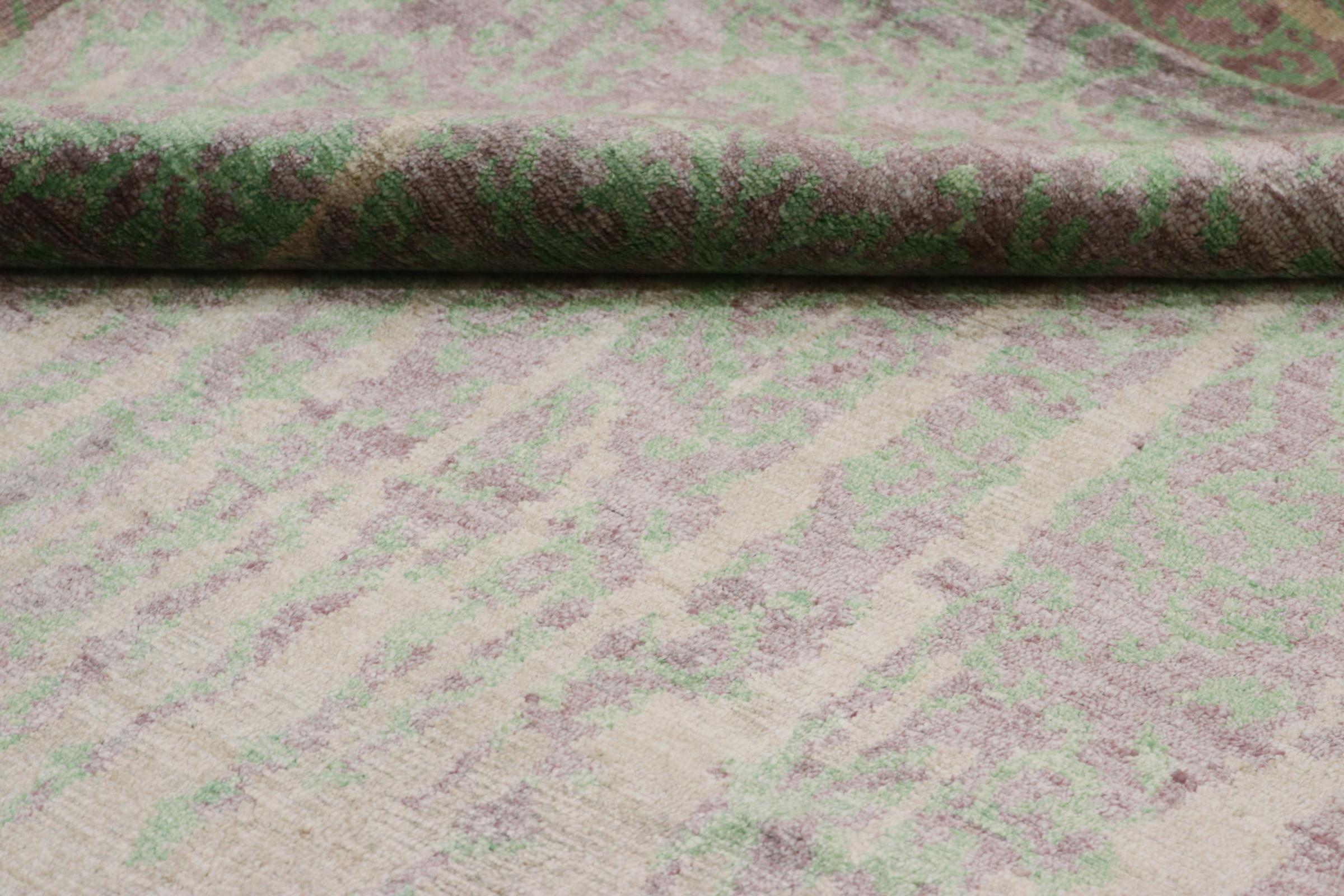 Esta alcatifa vem do Nepal e foi atada ali à mão. Normalmente, os tapetes nepaleses são um pouco mais grosseiros e têm padrões coloridos modernos. As variações clássicas captam desenhos de tapetes tradicionais chineses. O aspecto dos tapetes do Nepal tem sido adaptado ao longo do tempo para satisfazer a procura dos mercados ocidentais. Hoje em dia é possível encontrar cores pastel e padrões geométricos nestes tapetes com nó de mão.