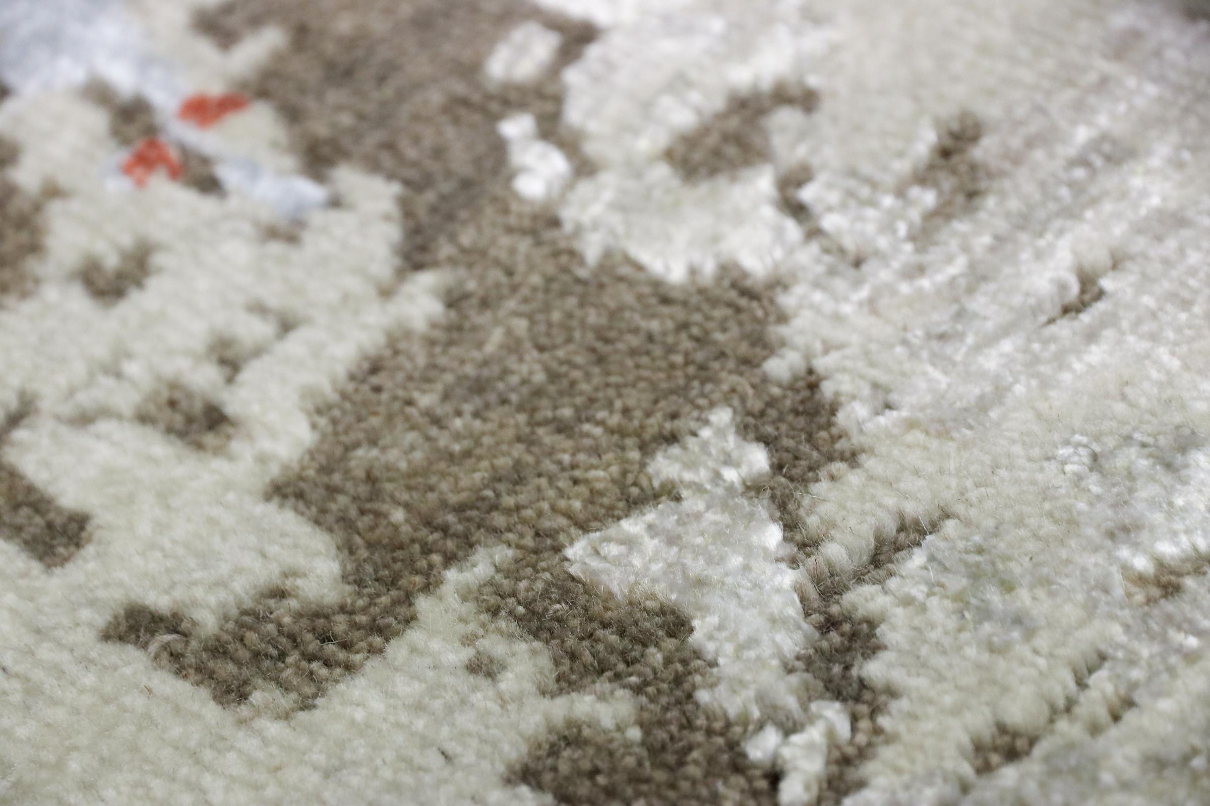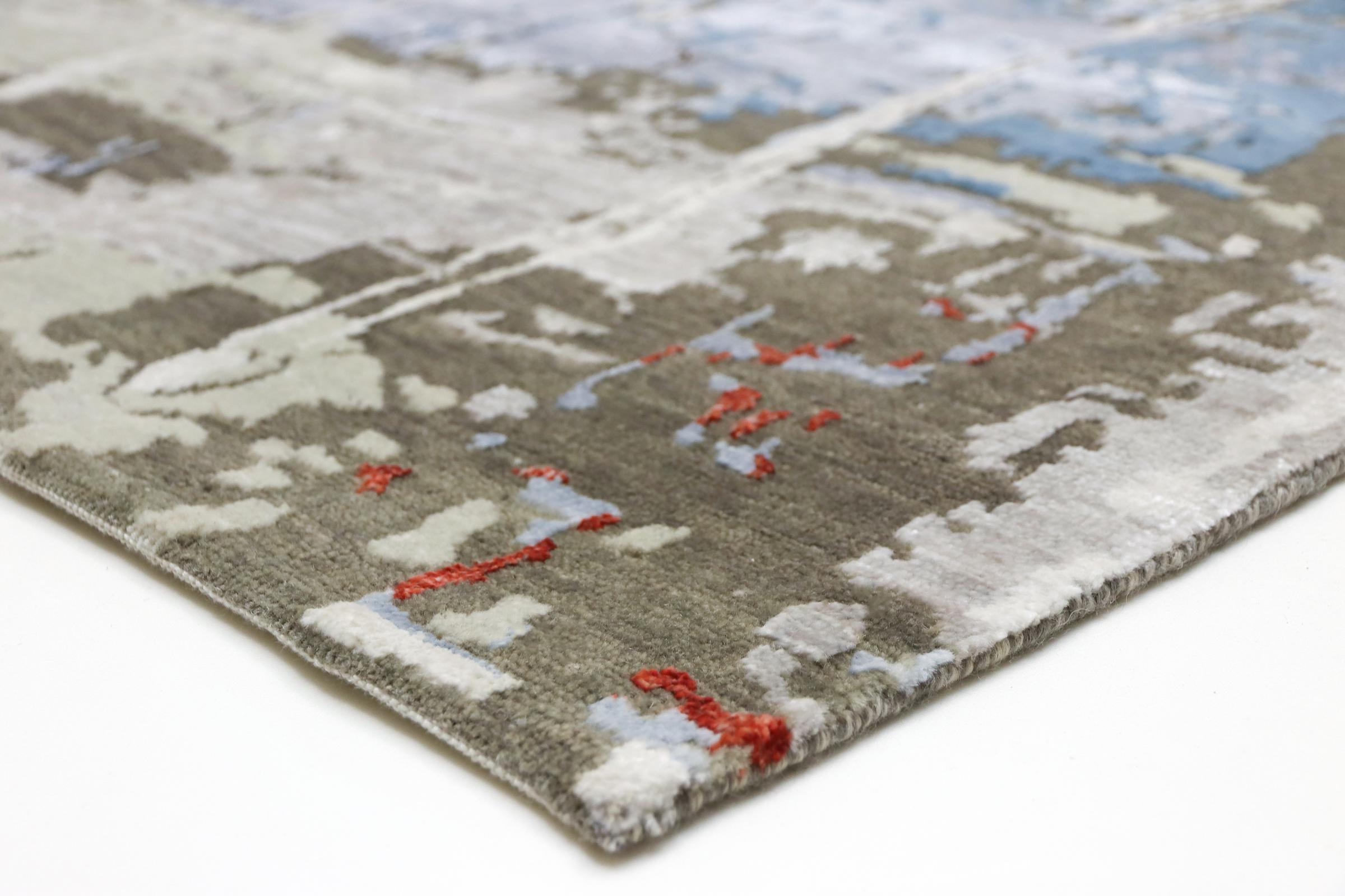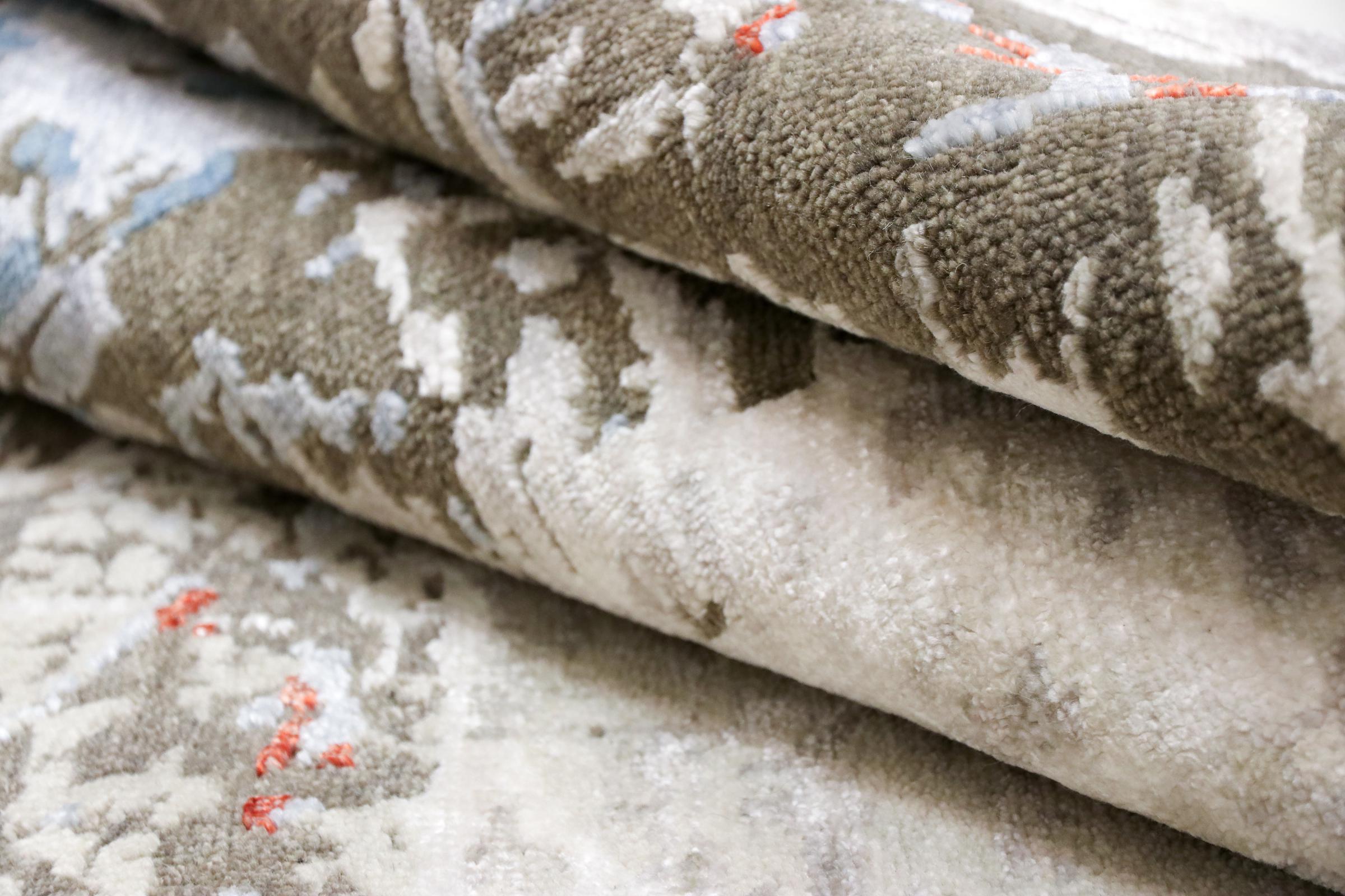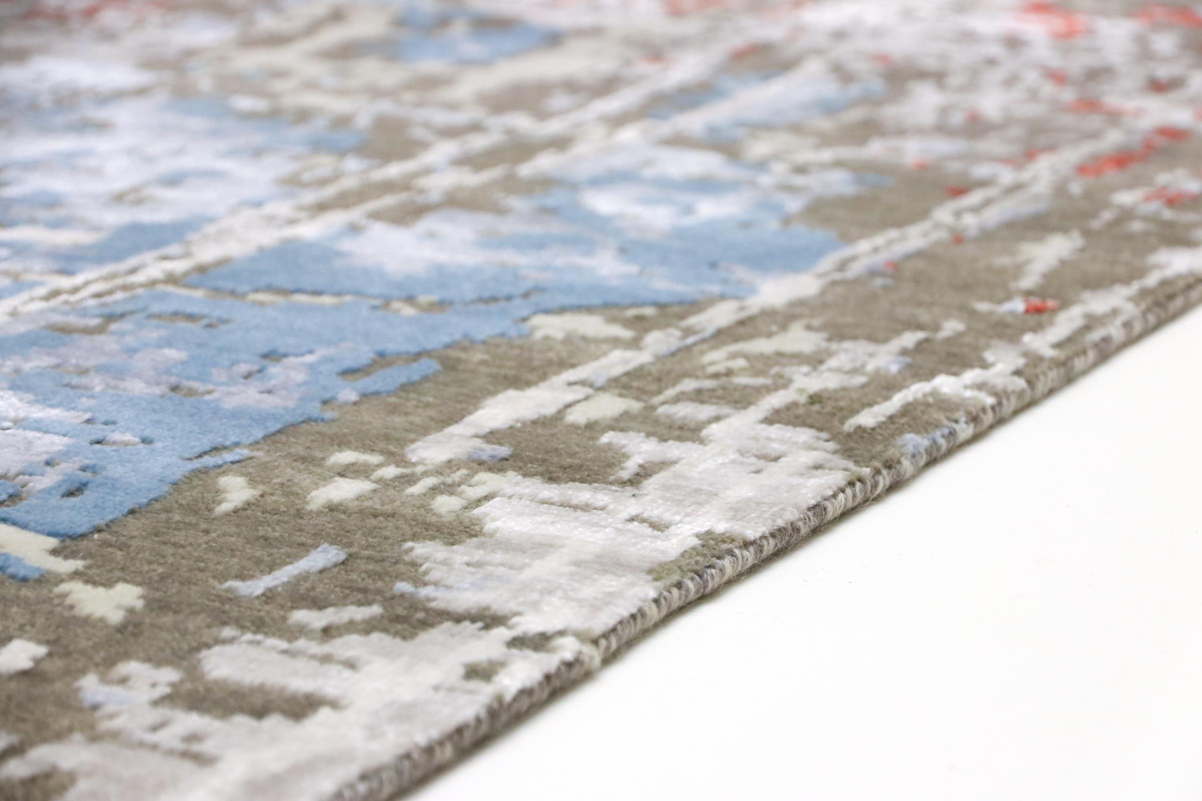 Este Sadraa é um tapete de design único, feito à mão durante meses. Os seus materiais de alta qualidade são combinados com um design muito moderno. O tapete não deixa nada a desejar. Graças ao artesanato das técnicas tradicionais de nó oriental, ele sobrevive a décadas e cargas pesadas. Foi criado por designers no estilo escandinavo, que continua a oferecer um destaque absoluto mesmo após anos. Em particular, a combinação de lã de ovelha macia e seda de bambu brilhante ou viscose proporciona uma experiência única.