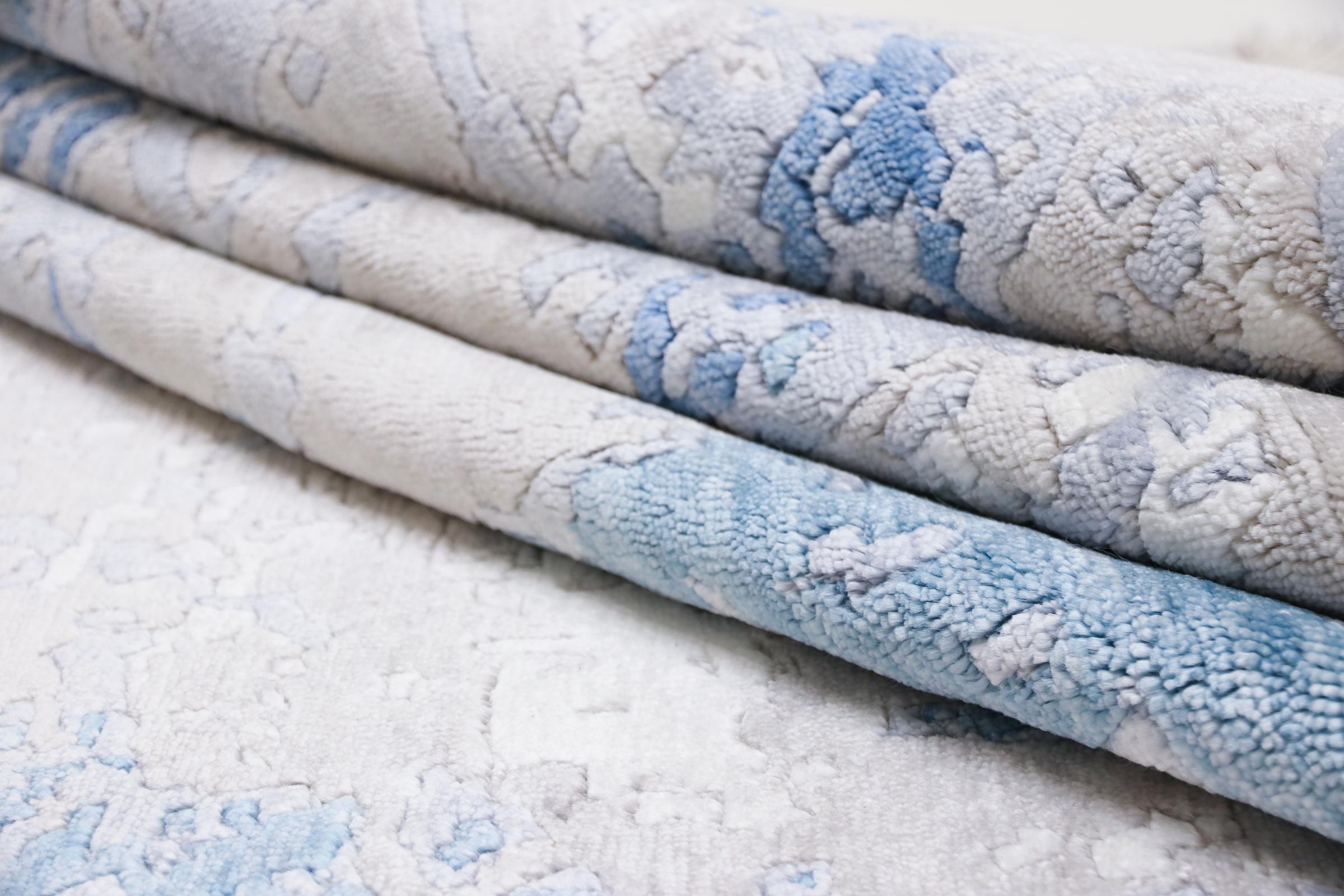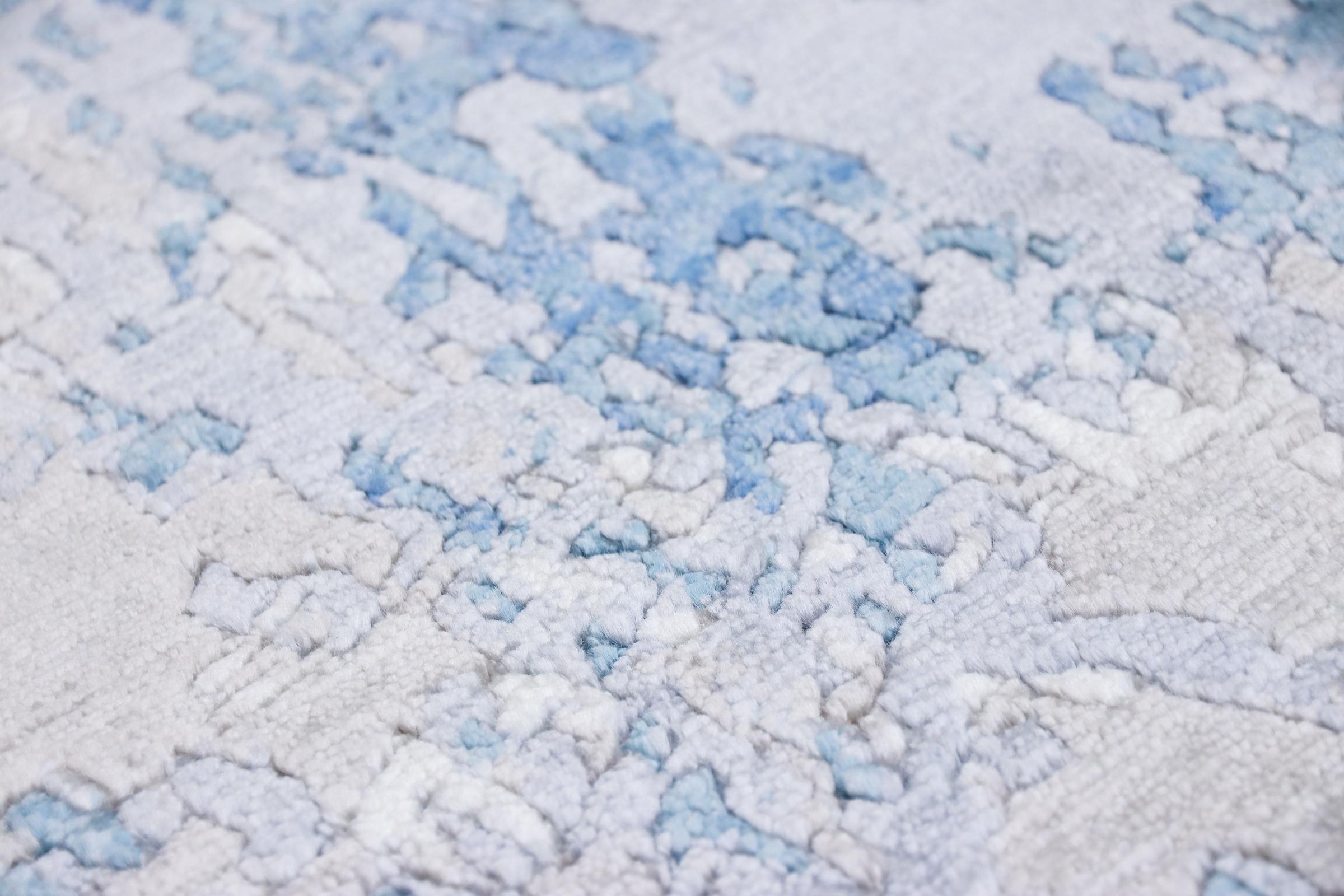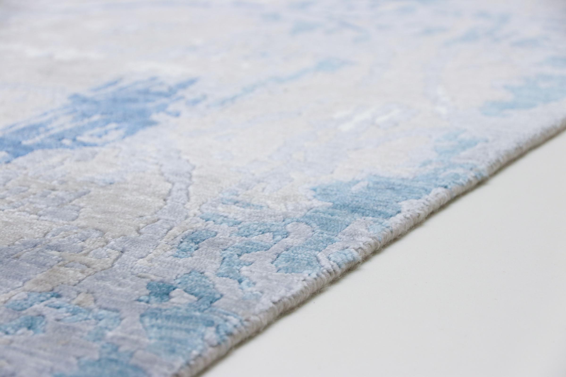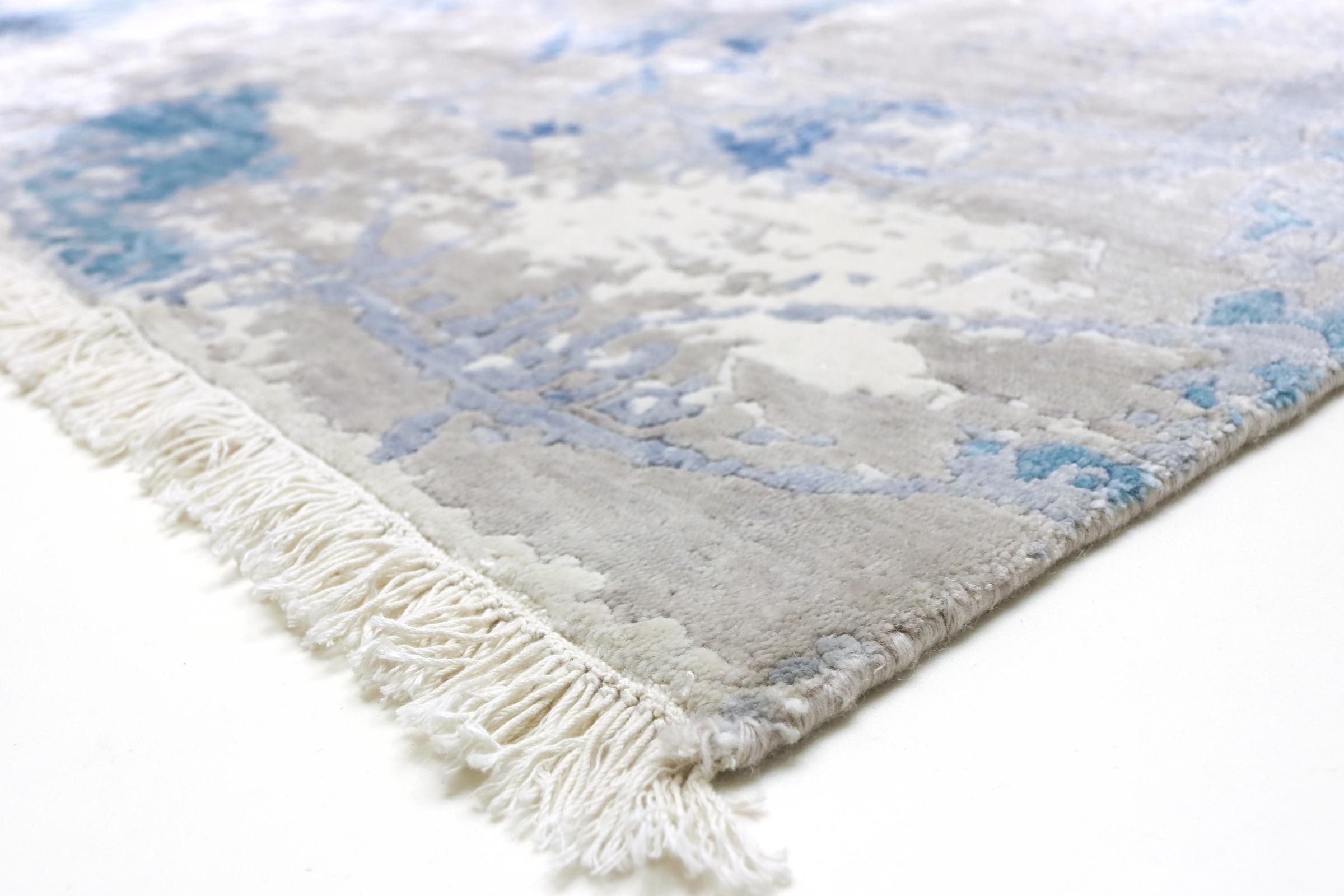 Este Sadraa é um tapete de design único, feito à mão durante meses. Os seus materiais de alta qualidade são combinados com um design muito moderno. O tapete não deixa nada a desejar. Graças ao artesanato das técnicas tradicionais de nó oriental, ele sobrevive a décadas e cargas pesadas. Foi criado por designers no estilo escandinavo, que continua a oferecer um destaque absoluto mesmo após anos. Em particular, a combinação de lã de ovelha macia e seda de bambu brilhante ou viscose proporciona uma experiência única.