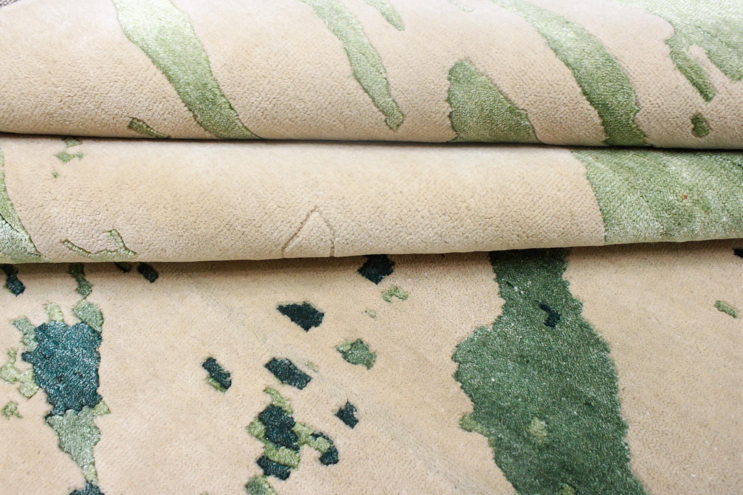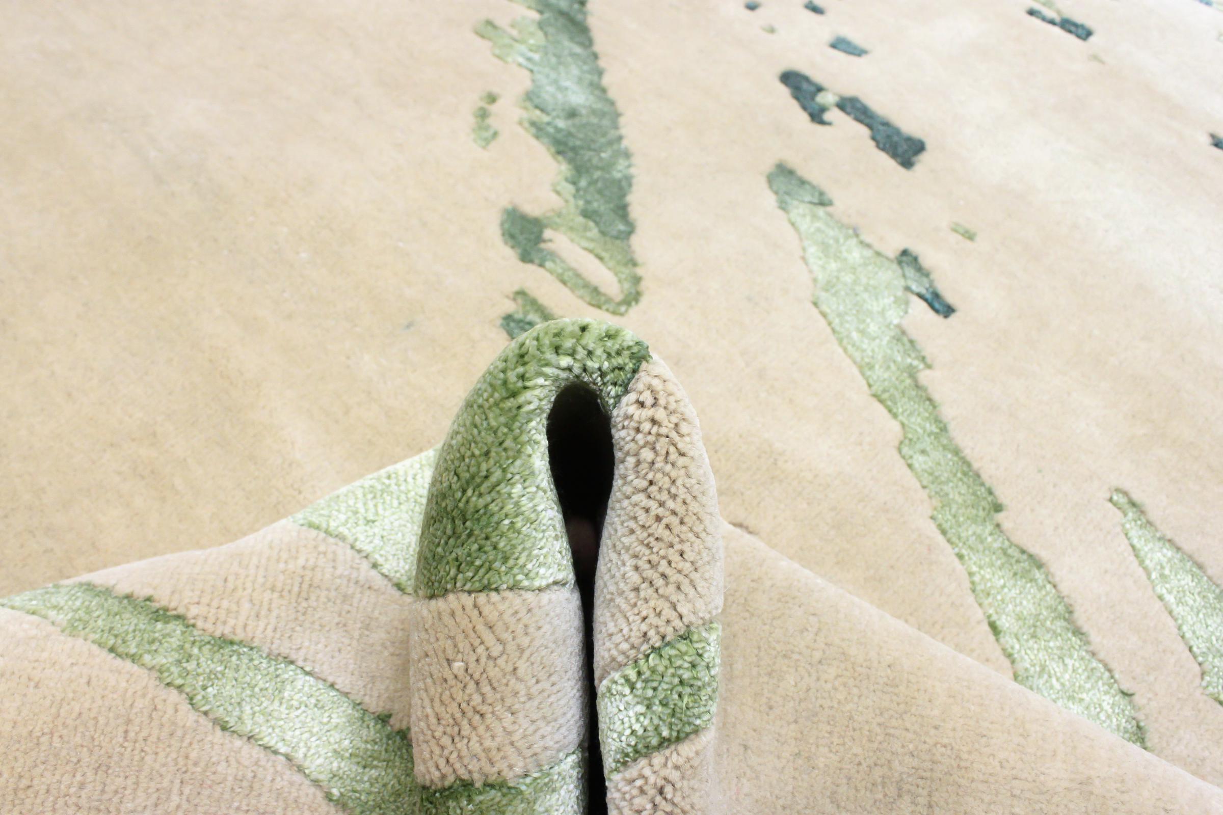 Este Sadraa é um tapete de design único, feito à mão durante meses. Os seus materiais de alta qualidade são combinados com um design muito moderno. O tapete não deixa nada a desejar. Graças ao artesanato das técnicas tradicionais de nó oriental, ele sobrevive a décadas e cargas pesadas. Foi criado por designers no estilo escandinavo, que continua a oferecer um destaque absoluto mesmo após anos. Em particular, a combinação de lã de ovelha macia e seda de bambu brilhante ou viscose proporciona uma experiência única.
