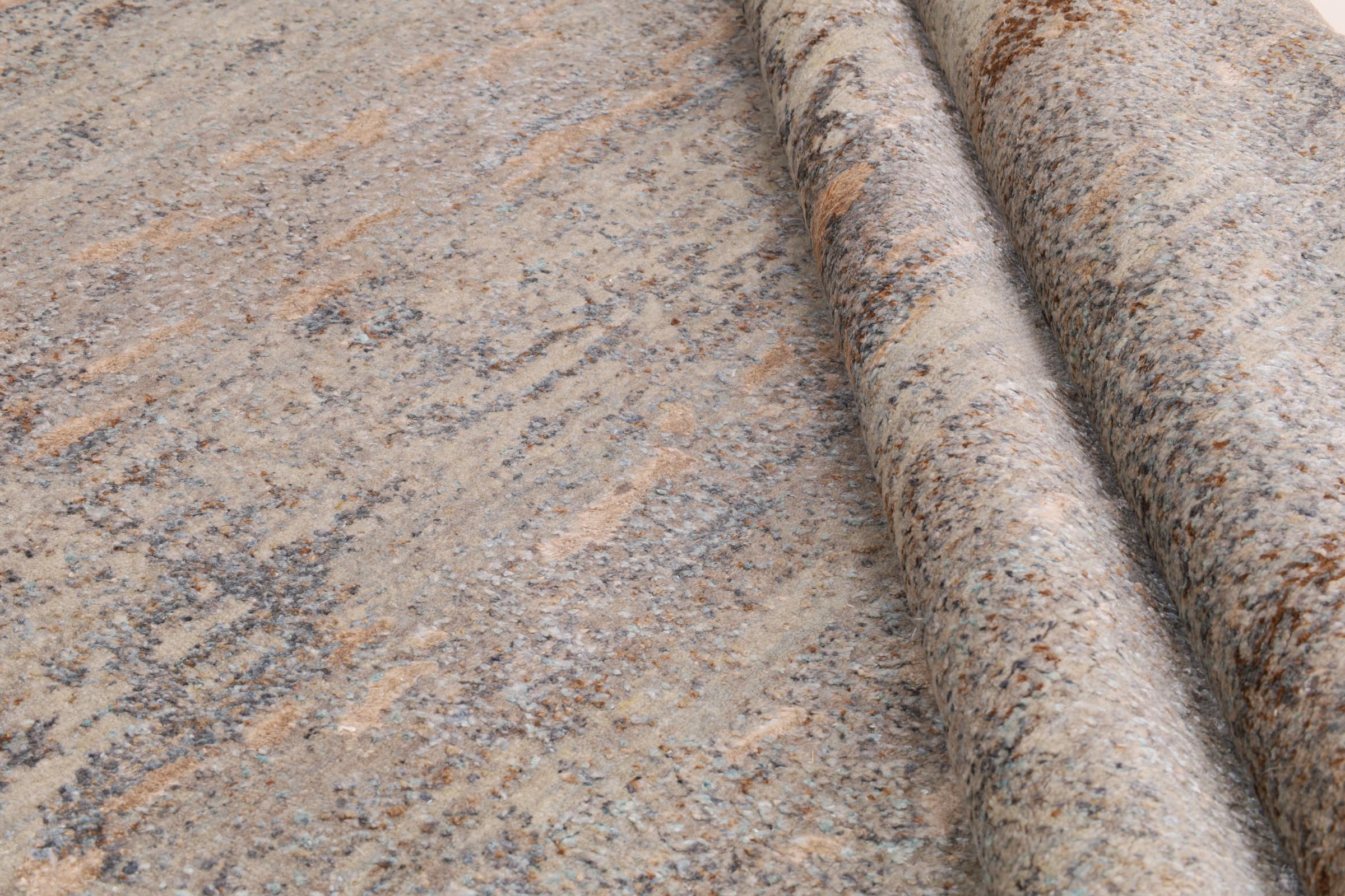 Este Sadraa é um tapete de design único, feito à mão durante meses. Os seus materiais de alta qualidade são combinados com um design muito moderno. O tapete não deixa nada a desejar. Graças ao artesanato das técnicas tradicionais de nó oriental, ele sobrevive a décadas e cargas pesadas. Foi criado por designers no estilo escandinavo, que continua a oferecer um destaque absoluto mesmo após anos. Em particular, a combinação de lã de ovelha macia e seda de bambu brilhante ou viscose proporciona uma experiência única.