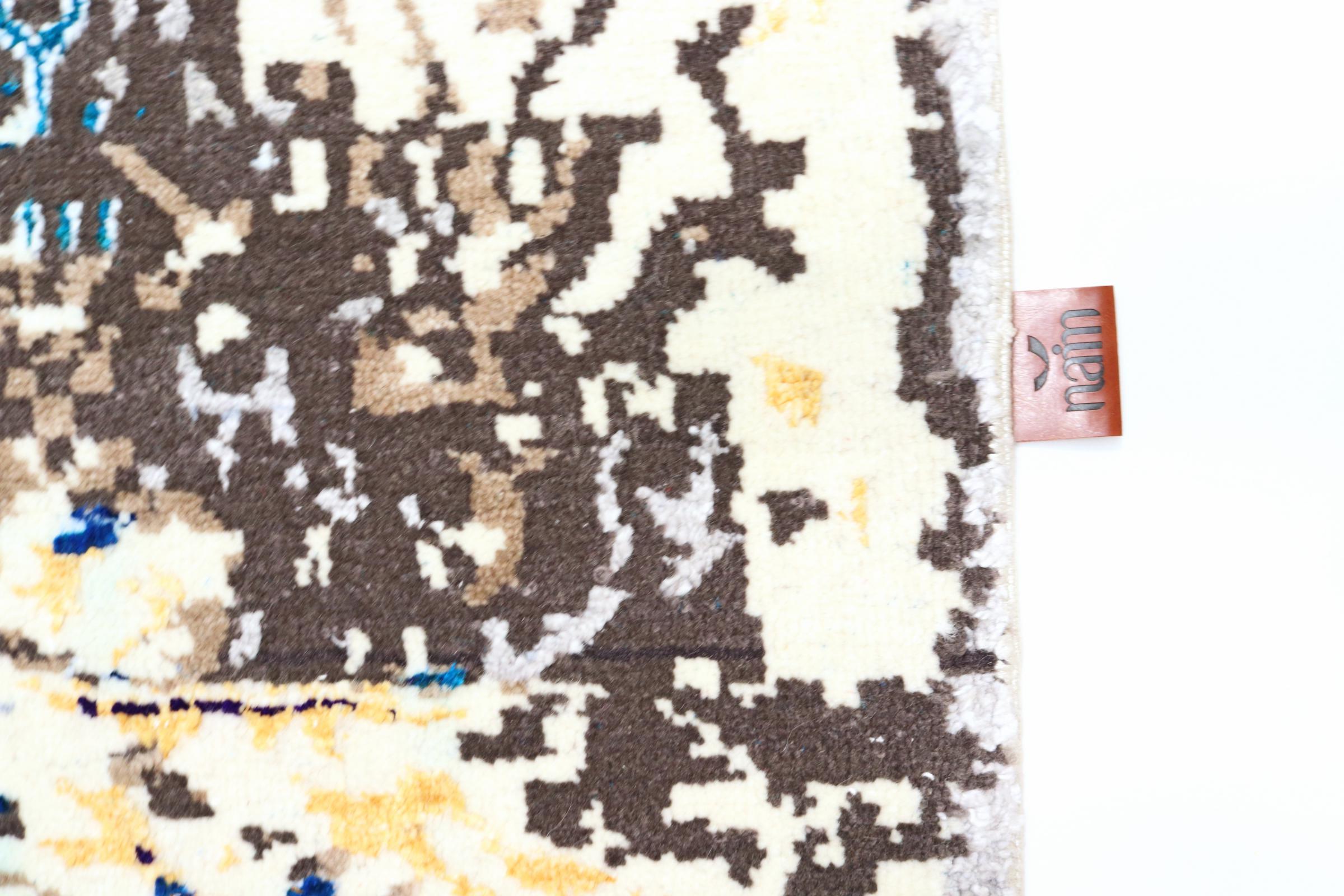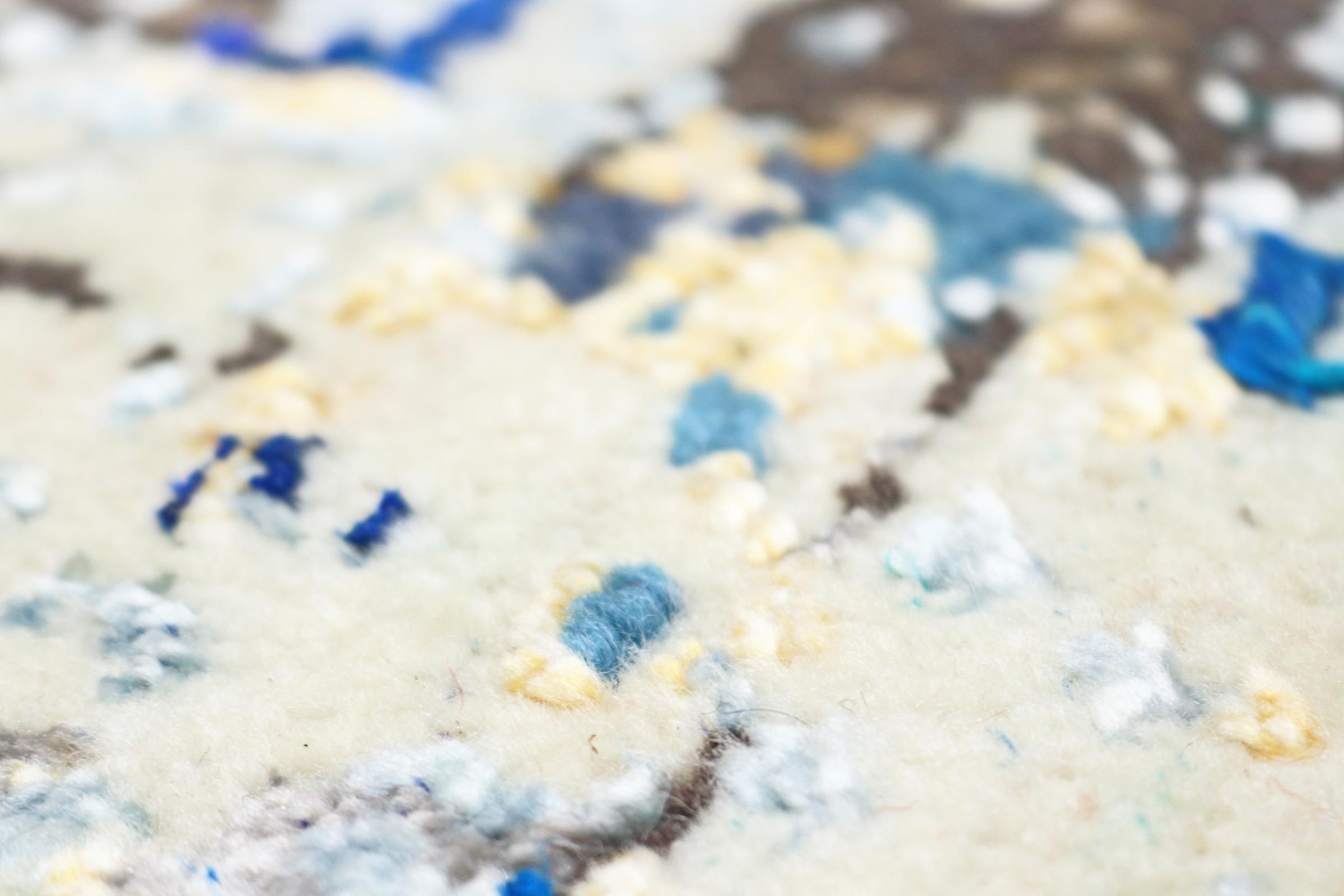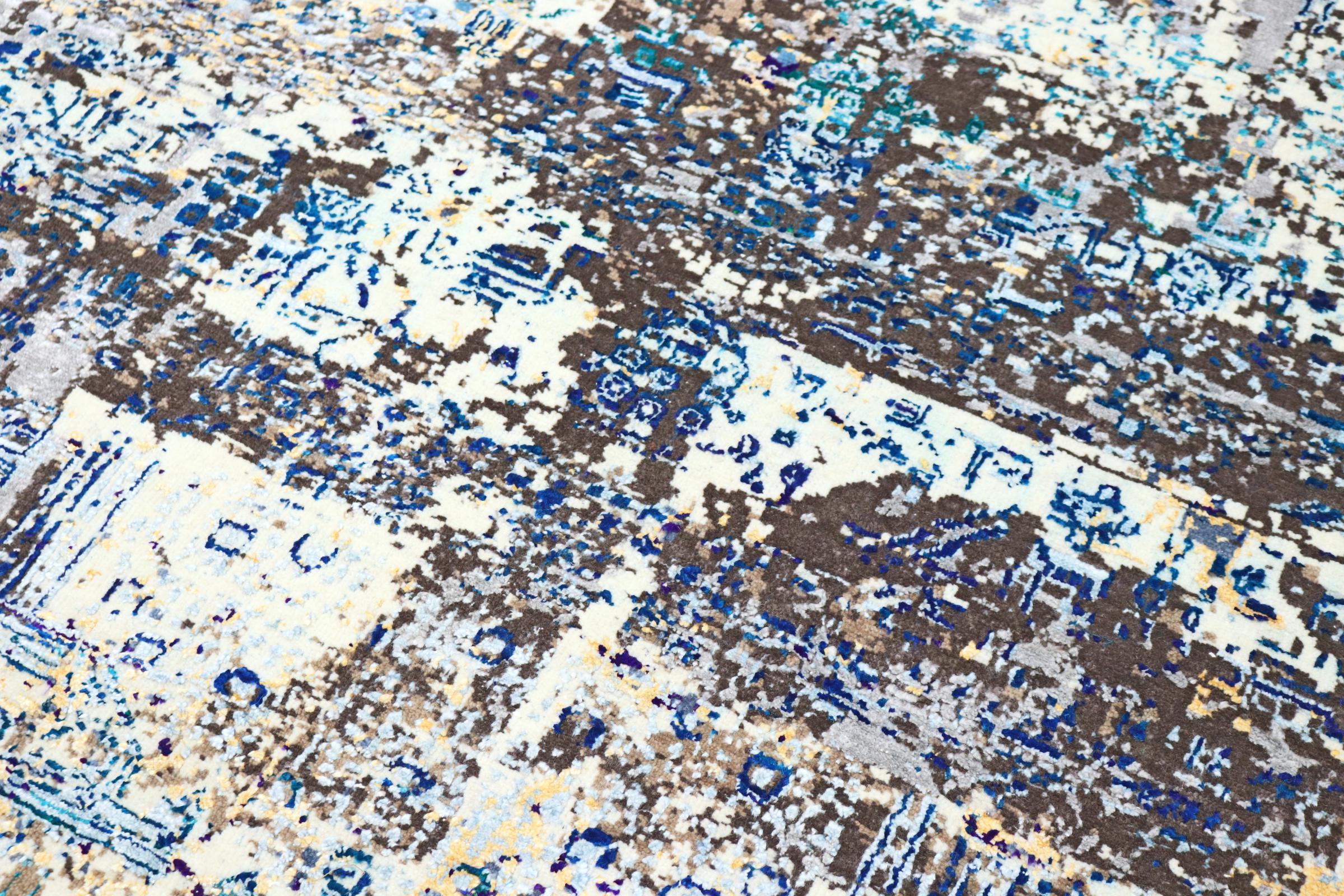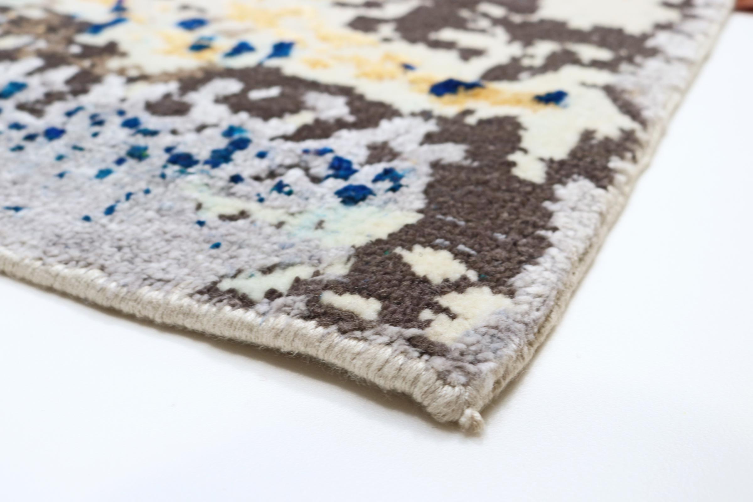Este Sadraa é um tapete de design único, feito à mão durante meses. Os seus materiais de alta qualidade são combinados com um design muito moderno. O tapete não deixa nada a desejar. Graças ao artesanato das técnicas tradicionais de nó oriental, ele sobrevive a décadas e cargas pesadas. Foi criado por designers no estilo escandinavo, que continua a oferecer um destaque absoluto mesmo após anos. Em particular, a combinação de lã de ovelha macia e seda de bambu brilhante ou viscose proporciona uma experiência única.
