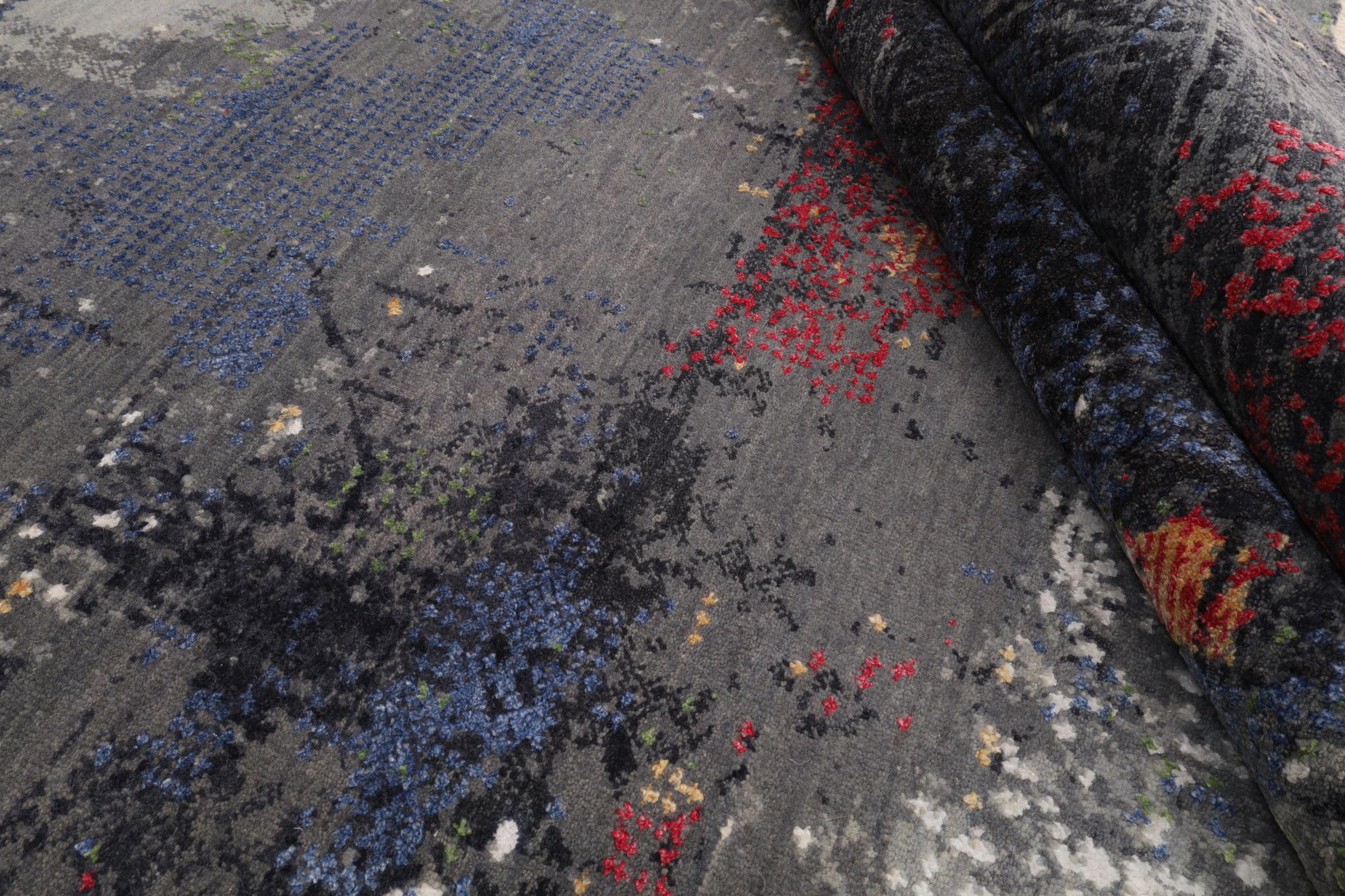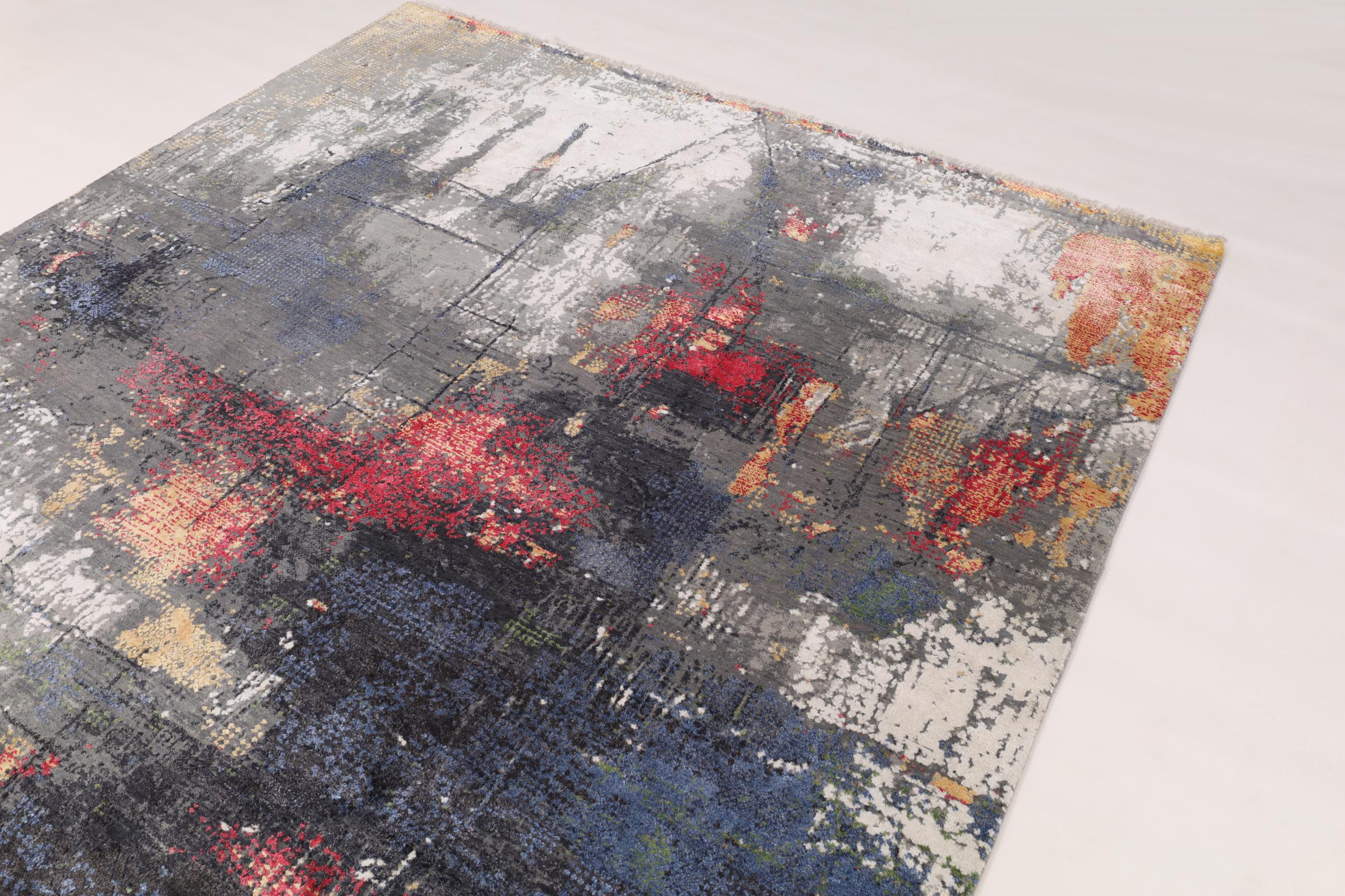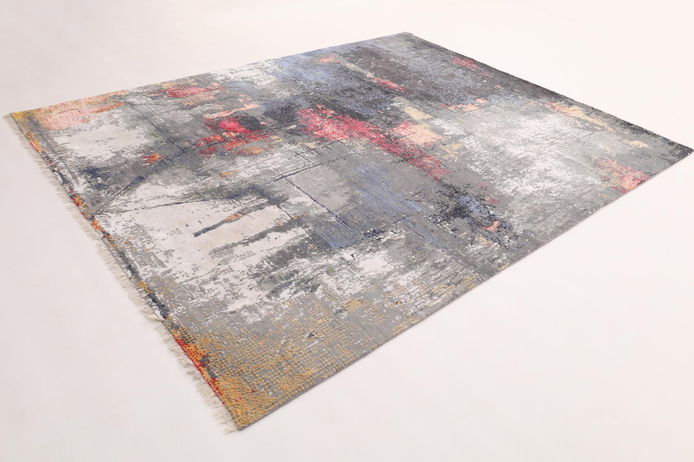 Este Sadraa é um tapete de design único, feito à mão durante meses. Os seus materiais de alta qualidade são combinados com um design muito moderno. O tapete não deixa nada a desejar. Graças ao artesanato das técnicas tradicionais de nó oriental, ele sobrevive a décadas e cargas pesadas. Foi criado por designers no estilo escandinavo, que continua a oferecer um destaque absoluto mesmo após anos. Em particular, a combinação de lã de ovelha macia e seda de bambu brilhante ou viscose proporciona uma experiência única.