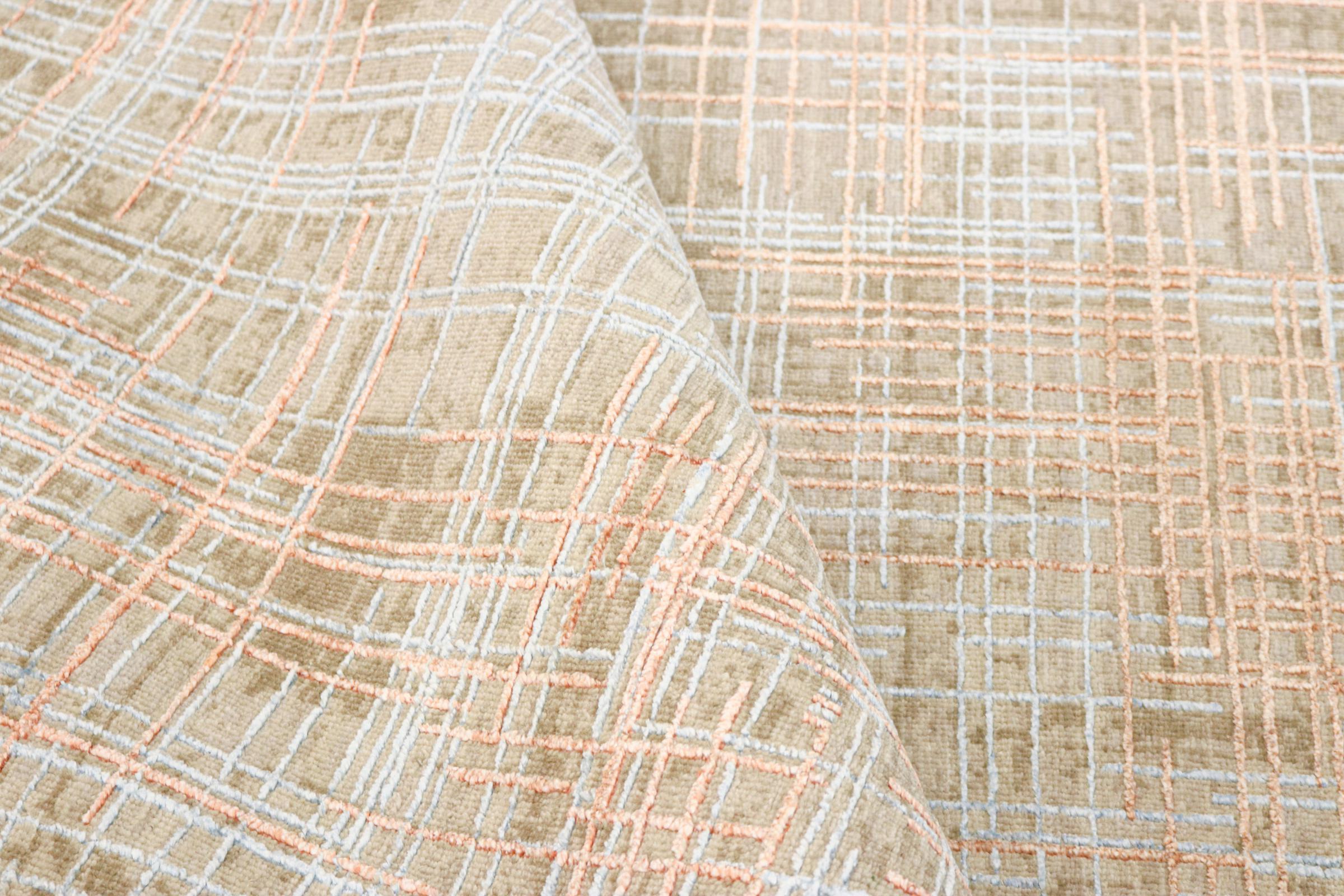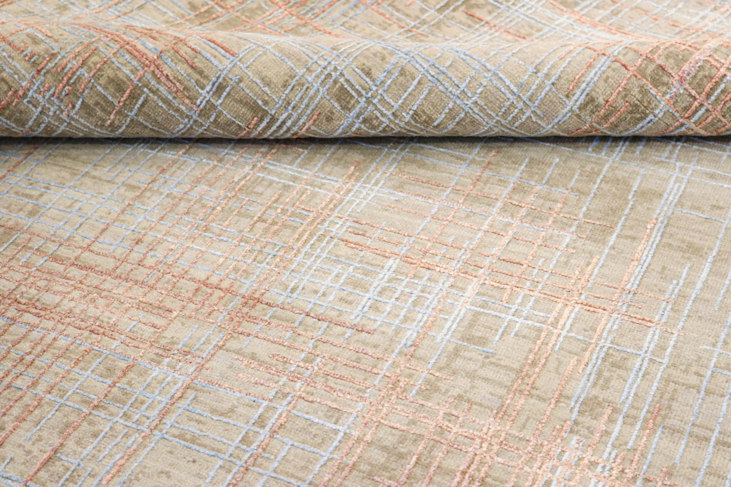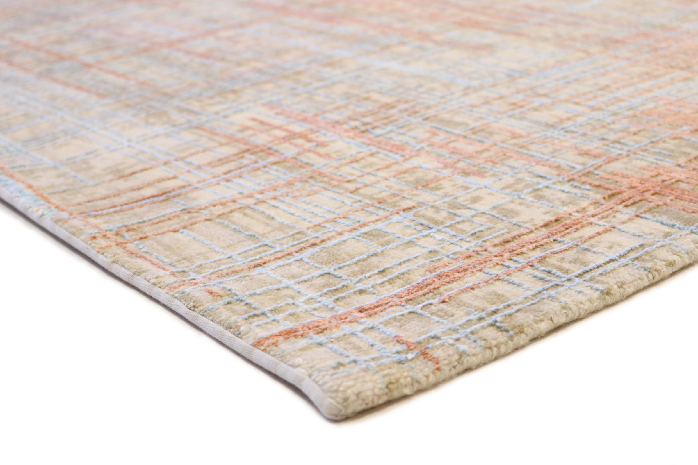 Este Sadraa é um tapete de design único, feito à mão durante meses. Os seus materiais de alta qualidade são combinados com um design muito moderno. O tapete não deixa nada a desejar. Graças ao artesanato das técnicas tradicionais de nó oriental, ele sobrevive a décadas e cargas pesadas. Foi criado por designers no estilo escandinavo, que continua a oferecer um destaque absoluto mesmo após anos. Em particular, a combinação de lã de ovelha macia e seda de bambu brilhante ou viscose proporciona uma experiência única.