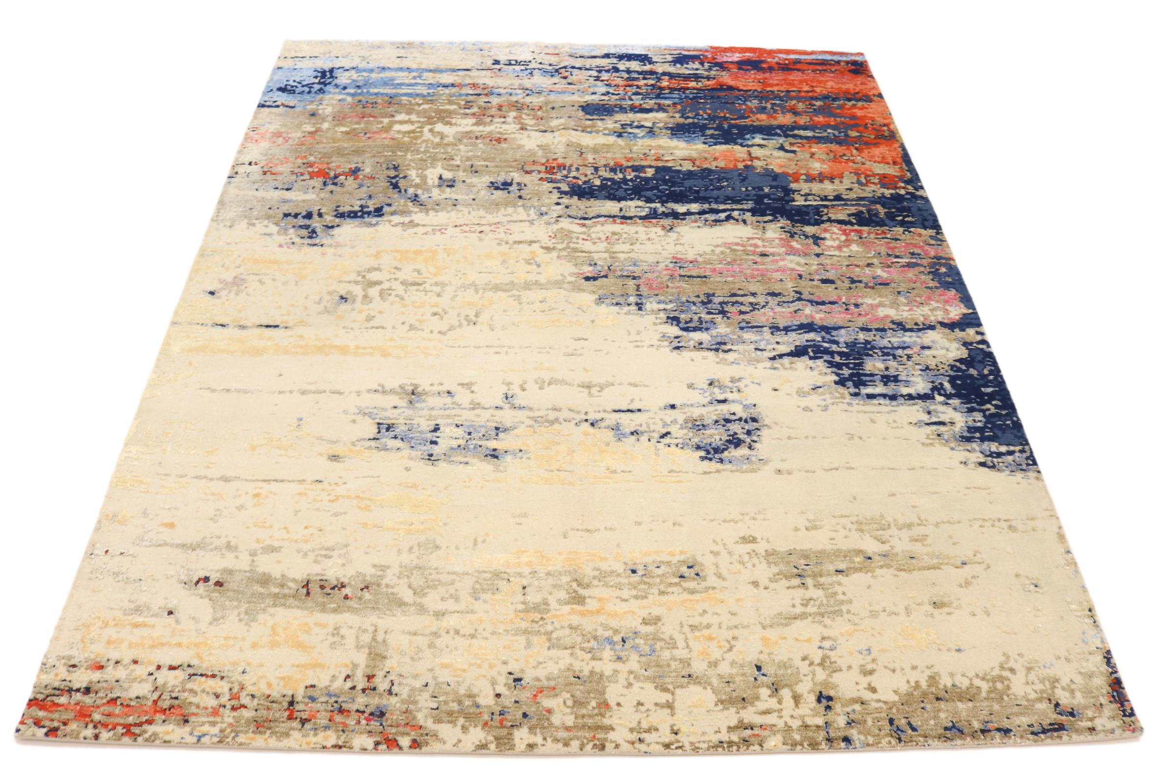 Este Sadraa é um tapete de design único, feito à mão durante meses. Os seus materiais de alta qualidade são combinados com um design muito moderno. O tapete não deixa nada a desejar. Graças ao artesanato das técnicas tradicionais de nó oriental, ele sobrevive a décadas e cargas pesadas. Foi criado por designers no estilo escandinavo, que continua a oferecer um destaque absoluto mesmo após anos. Em particular, a combinação de lã de ovelha macia e seda de bambu brilhante ou viscose proporciona uma experiência única.