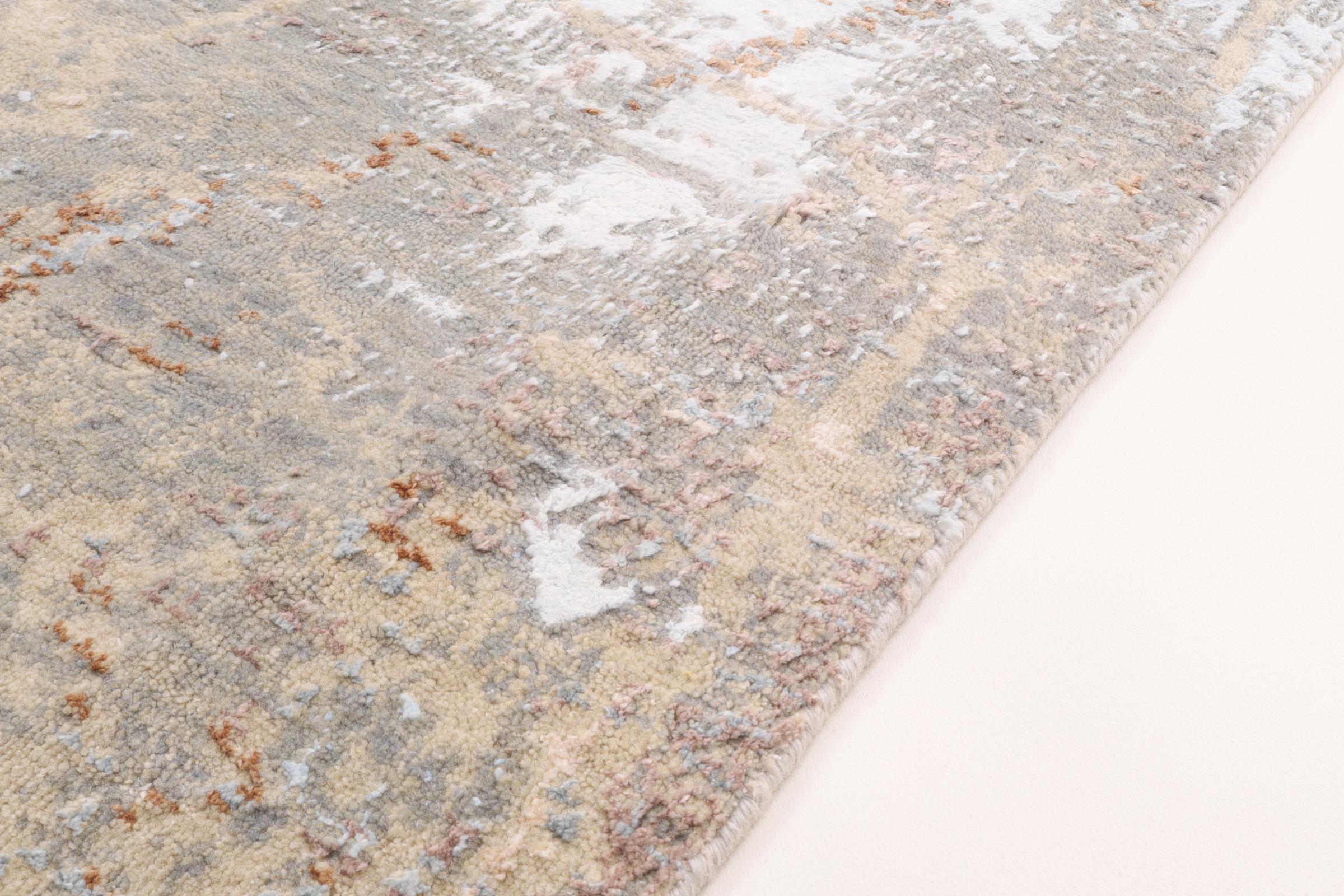 Este Sadraa é um tapete de design único, feito à mão durante meses. Os seus materiais de alta qualidade são combinados com um design muito moderno. O tapete não deixa nada a desejar. Graças ao artesanato das técnicas tradicionais de nó oriental, ele sobrevive a décadas e cargas pesadas. Foi criado por designers no estilo escandinavo, que continua a oferecer um destaque absoluto mesmo após anos. Em particular, a combinação de lã de ovelha macia e seda de bambu brilhante ou viscose proporciona uma experiência única.