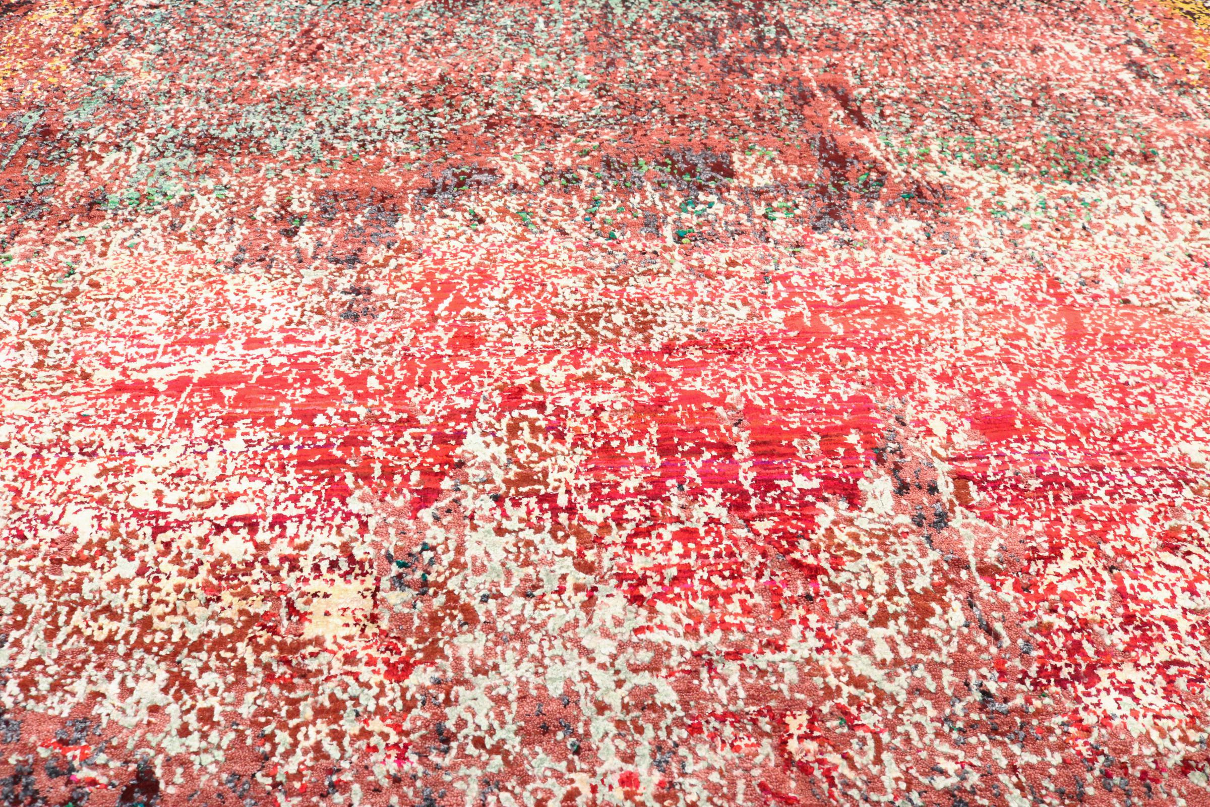 Este Sadraa é um tapete de design único, feito à mão durante meses. Os seus materiais de alta qualidade são combinados com um design muito moderno. O tapete não deixa nada a desejar. Graças ao artesanato das técnicas tradicionais de nó oriental, ele sobrevive a décadas e cargas pesadas. Foi criado por designers no estilo escandinavo, que continua a oferecer um destaque absoluto mesmo após anos. Em particular, a combinação de lã de ovelha macia e seda de bambu brilhante ou viscose proporciona uma experiência única.