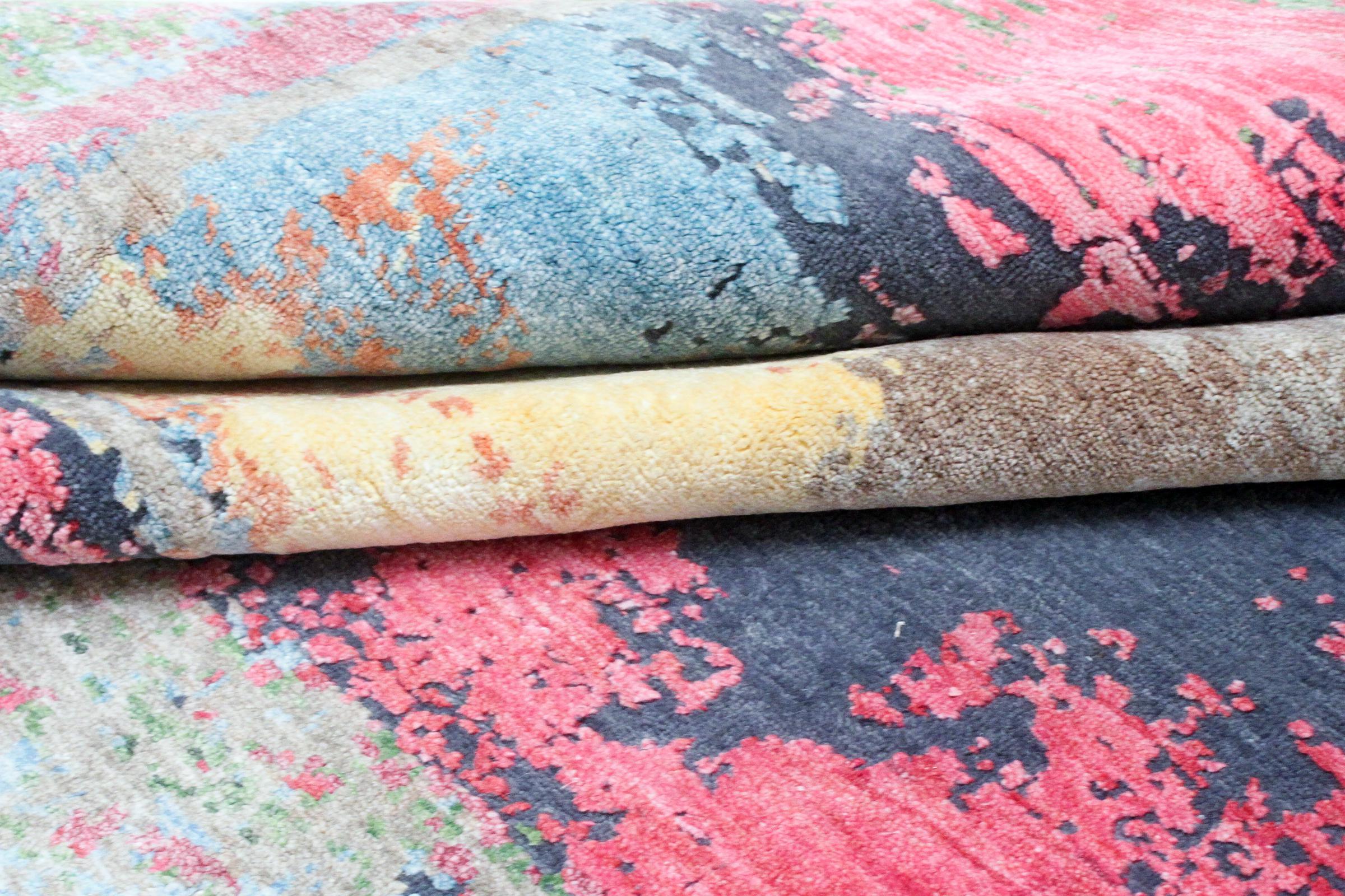 Este Sadraa é um tapete de design único, feito à mão durante meses. Os seus materiais de alta qualidade são combinados com um design muito moderno. O tapete não deixa nada a desejar. Graças ao artesanato das técnicas tradicionais de nó oriental, ele sobrevive a décadas e cargas pesadas. Foi criado por designers no estilo escandinavo, que continua a oferecer um destaque absoluto mesmo após anos. Em particular, a combinação de lã de ovelha macia e seda de bambu brilhante ou viscose proporciona uma experiência única.