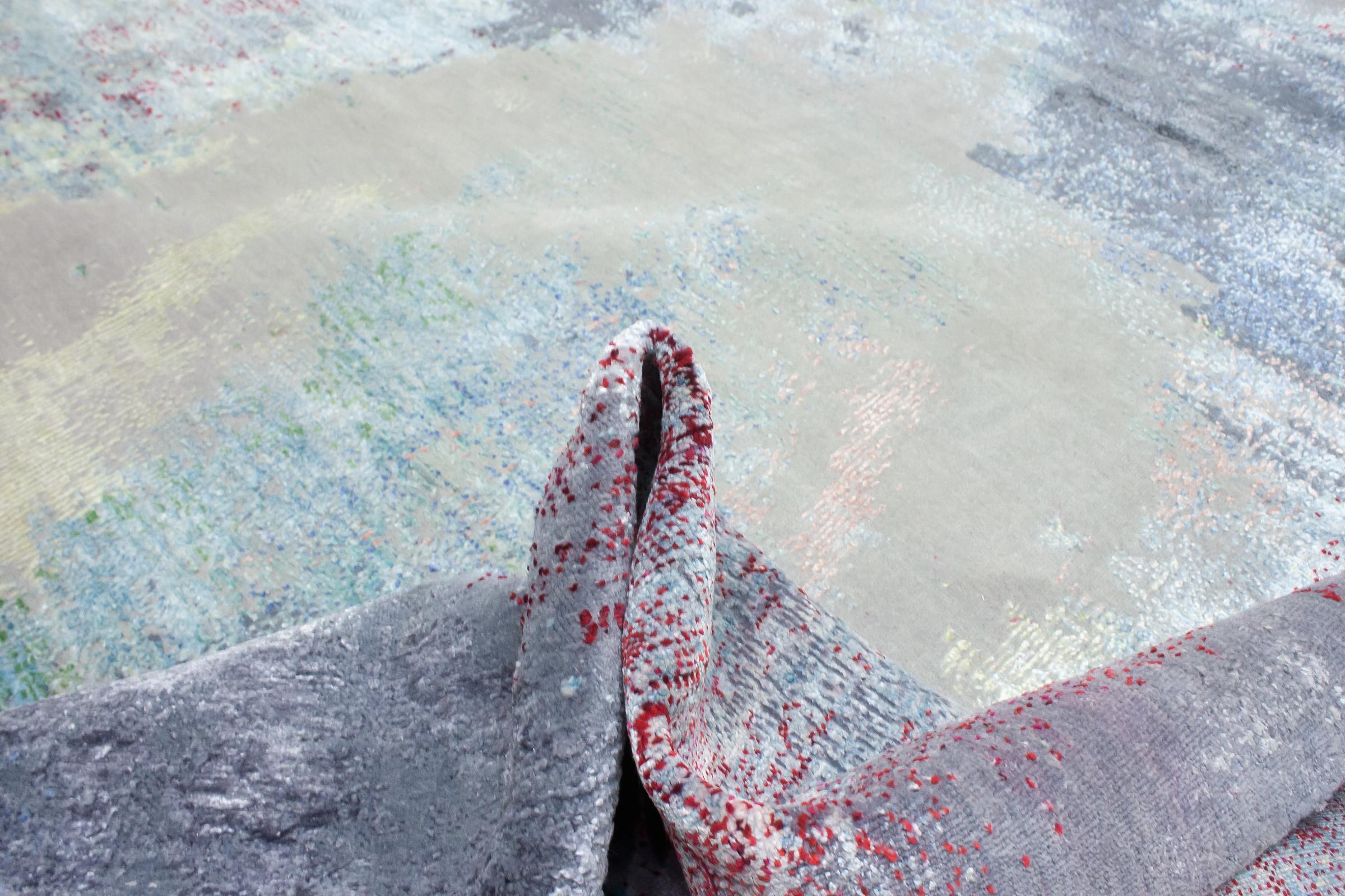 Este Sadraa é um tapete de design único, feito à mão durante meses. Os seus materiais de alta qualidade são combinados com um design muito moderno. O tapete não deixa nada a desejar. Graças ao artesanato das técnicas tradicionais de nó oriental, ele sobrevive a décadas e cargas pesadas. Foi criado por designers no estilo escandinavo, que continua a oferecer um destaque absoluto mesmo após anos. Em particular, a combinação de lã de ovelha macia e seda de bambu brilhante ou viscose proporciona uma experiência única.