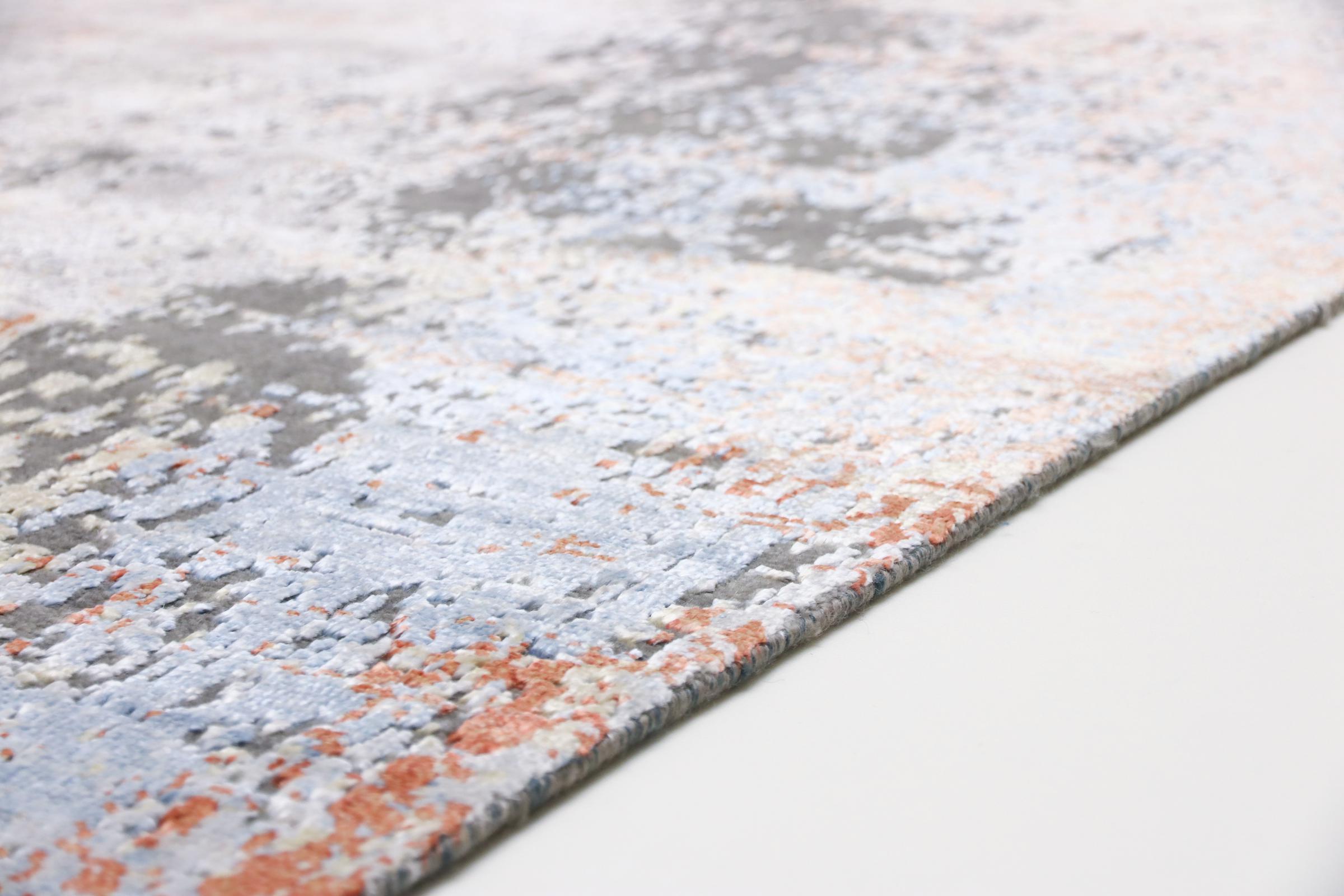 Este Sadraa é um tapete de design único, feito à mão durante meses. Os seus materiais de alta qualidade são combinados com um design muito moderno. O tapete não deixa nada a desejar. Graças ao artesanato das técnicas tradicionais de nó oriental, ele sobrevive a décadas e cargas pesadas. Foi criado por designers no estilo escandinavo, que continua a oferecer um destaque absoluto mesmo após anos. Em particular, a combinação de lã de ovelha macia e seda de bambu brilhante ou viscose proporciona uma experiência única.