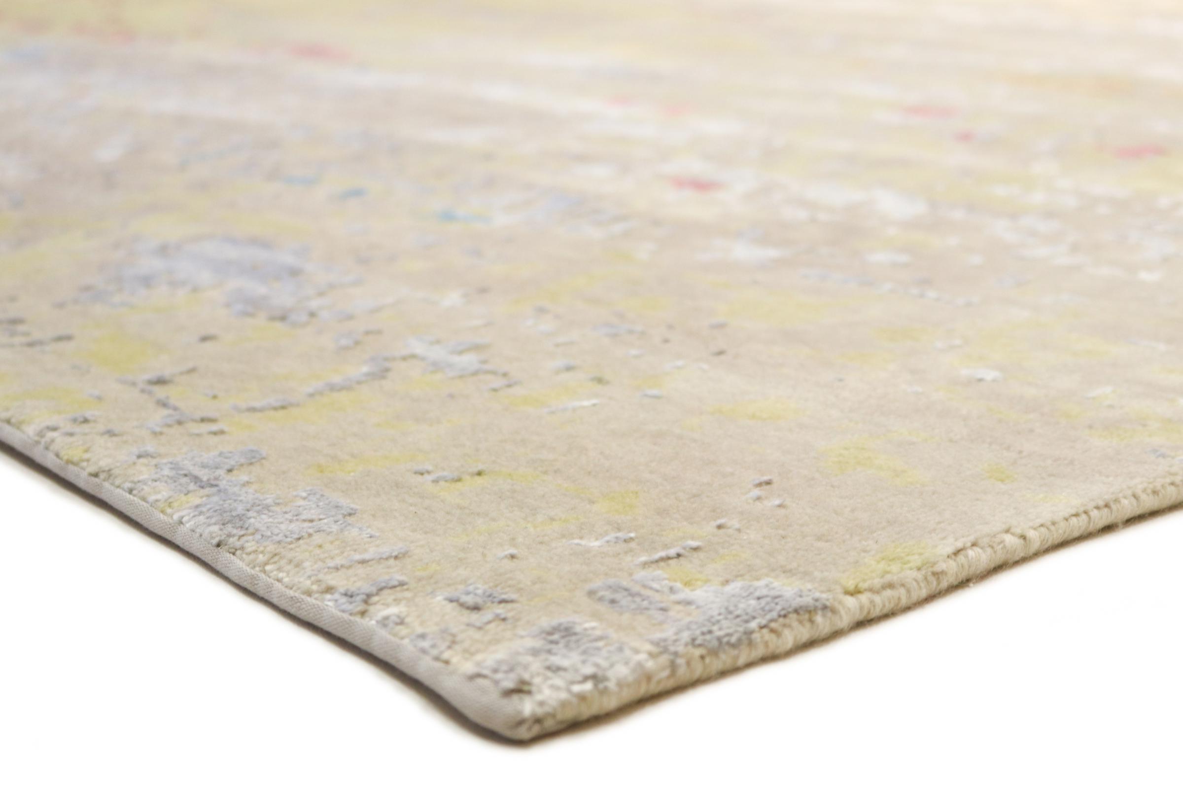 Este Sadraa é um tapete de design único, feito à mão durante meses. Os seus materiais de alta qualidade são combinados com um design muito moderno. O tapete não deixa nada a desejar. Graças ao artesanato das técnicas tradicionais de nó oriental, ele sobrevive a décadas e cargas pesadas. Foi criado por designers no estilo escandinavo, que continua a oferecer um destaque absoluto mesmo após anos. Em particular, a combinação de lã de ovelha macia e seda de bambu brilhante ou viscose proporciona uma experiência única.