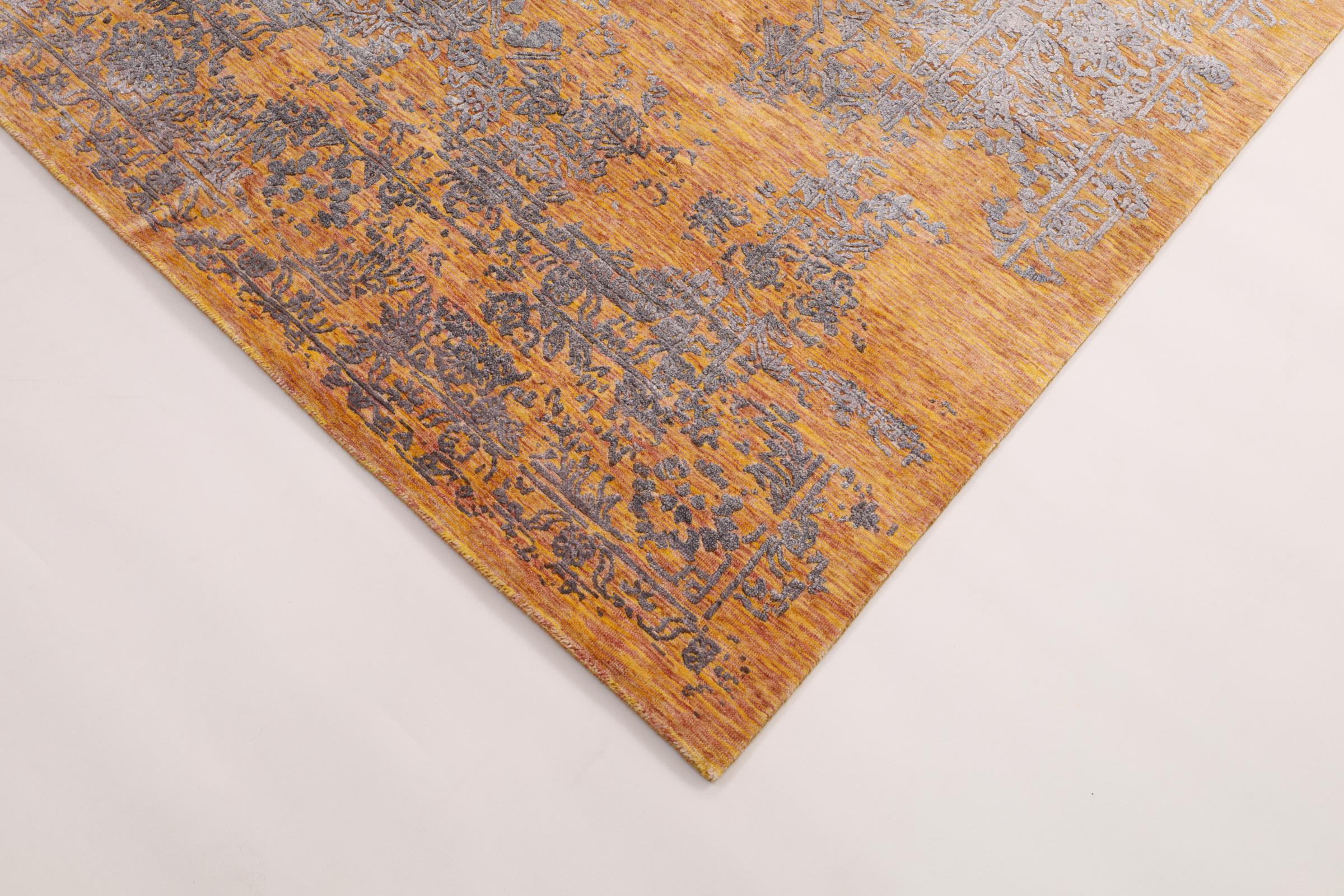 Nº do Tapete: 230815004921572 Tamanho: 349x238 cm Espessura: aproximadamente 12 mm Nós: 160 000 - 200 000 / m² Processamento: Atado à mão Veludo: Lã com seda de bambu Urdidura: Algodão Origem: Índia Idade: Novo Peso: aproximadamente 33 kg Em armazém: Único - Apenas 1 em stock