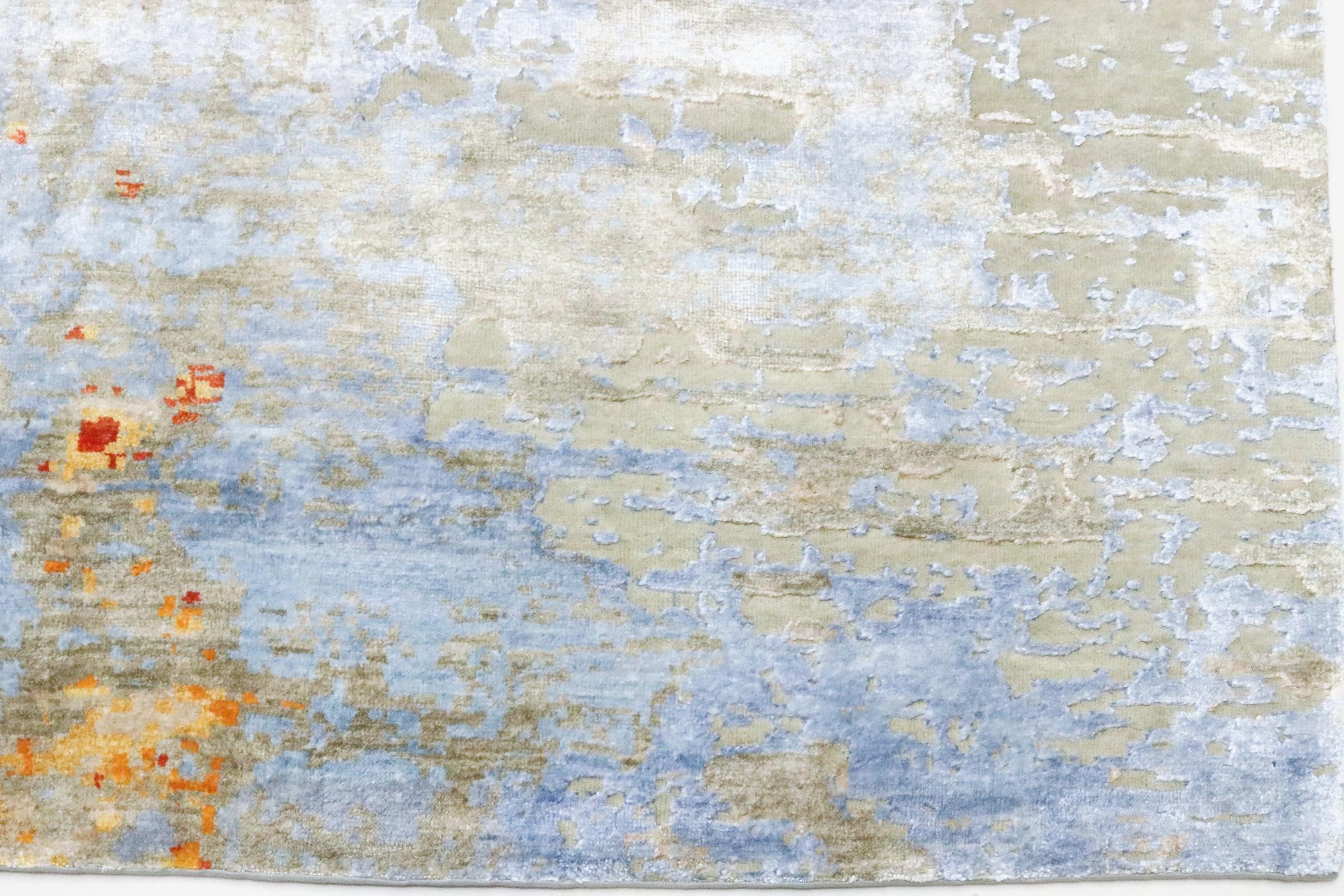 Este Sadraa é um tapete de design único, feito à mão durante meses. Os seus materiais de alta qualidade são combinados com um design muito moderno. O tapete não deixa nada a desejar. Graças ao artesanato das técnicas tradicionais de nó oriental, ele sobrevive a décadas e cargas pesadas. Foi criado por designers no estilo escandinavo, que continua a oferecer um destaque absoluto mesmo após anos. Em particular, a combinação de lã de ovelha macia e seda de bambu brilhante ou viscose proporciona uma experiência única.
