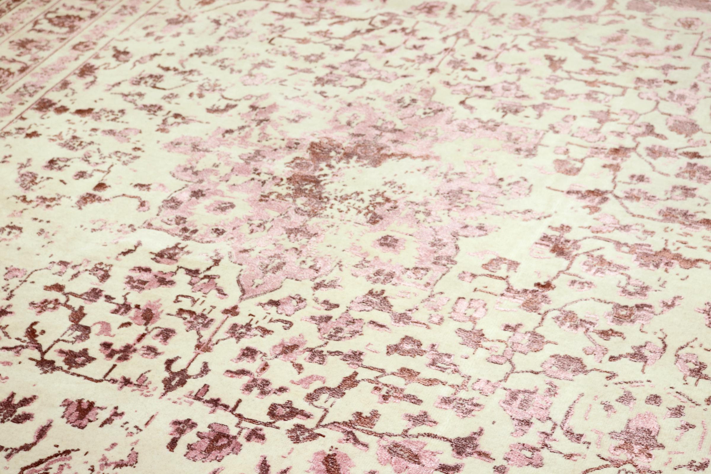 Este Sadraa é um tapete de design único, feito à mão durante meses. Os seus materiais de alta qualidade são combinados com um design muito moderno. O tapete não deixa nada a desejar. Graças ao artesanato das técnicas tradicionais de nó oriental, ele sobrevive a décadas e cargas pesadas. Foi criado por designers no estilo escandinavo, que continua a oferecer um destaque absoluto mesmo após anos. Em particular, a combinação de lã de ovelha macia e seda de bambu brilhante ou viscose proporciona uma experiência única.