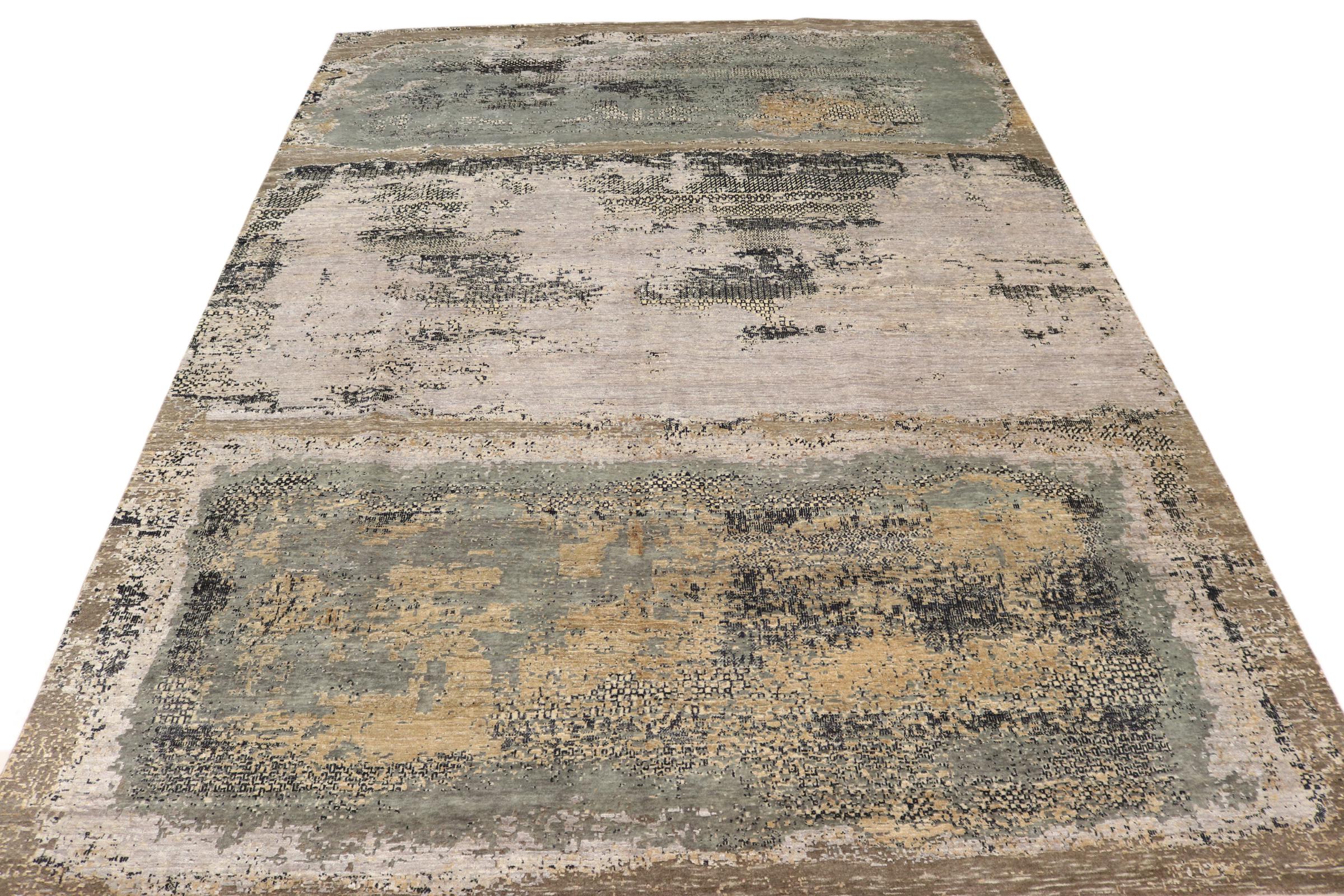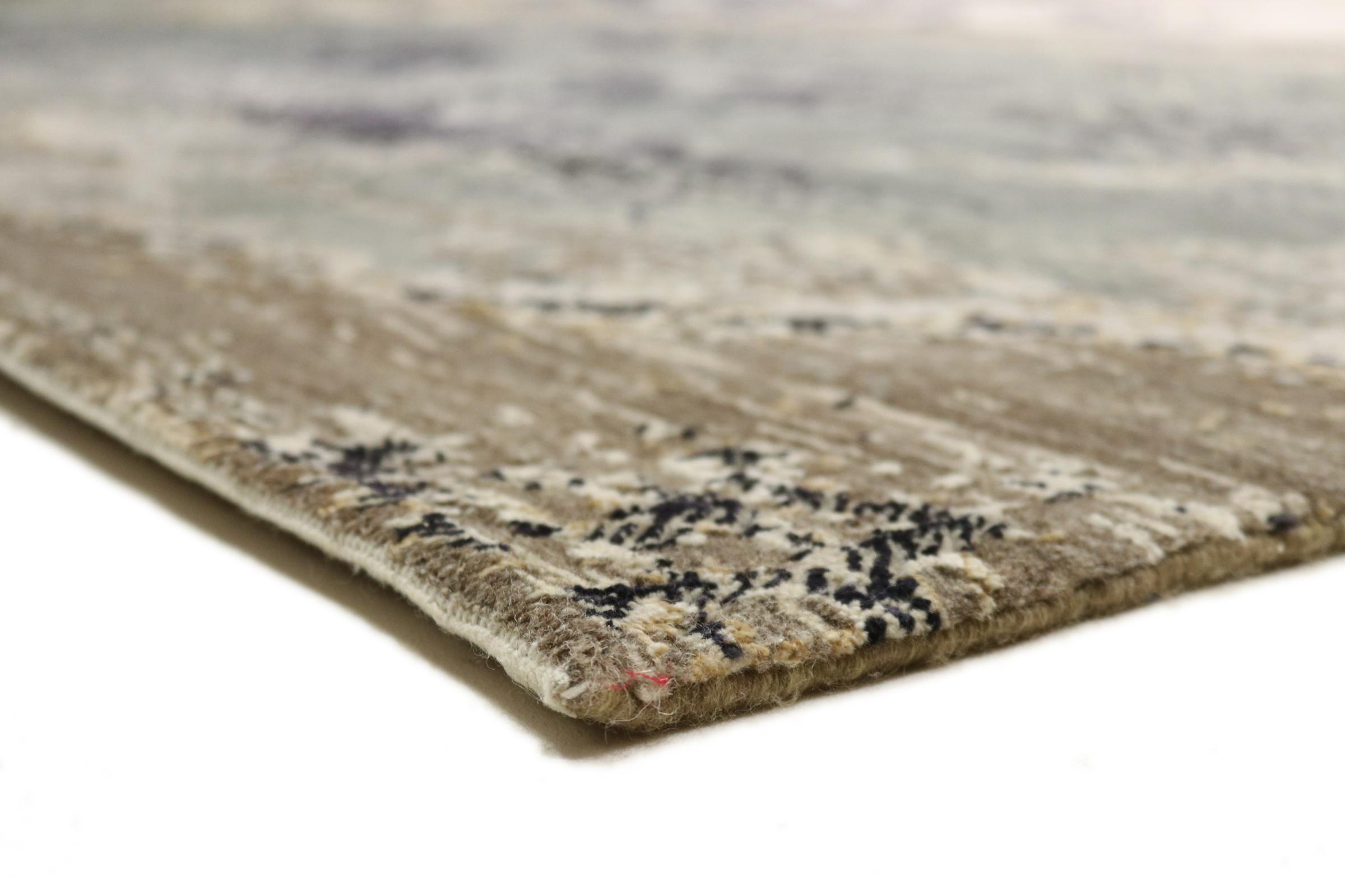 Este Sadraa é um tapete de design único, feito à mão durante meses. Os seus materiais de alta qualidade são combinados com um design muito moderno. O tapete não deixa nada a desejar. Graças ao artesanato das técnicas tradicionais de nó oriental, ele sobrevive a décadas e cargas pesadas. Foi criado por designers no estilo escandinavo, que continua a oferecer um destaque absoluto mesmo após anos. Em particular, a combinação de lã de ovelha macia e seda de bambu brilhante ou viscose proporciona uma experiência única.