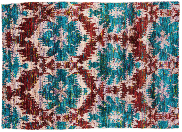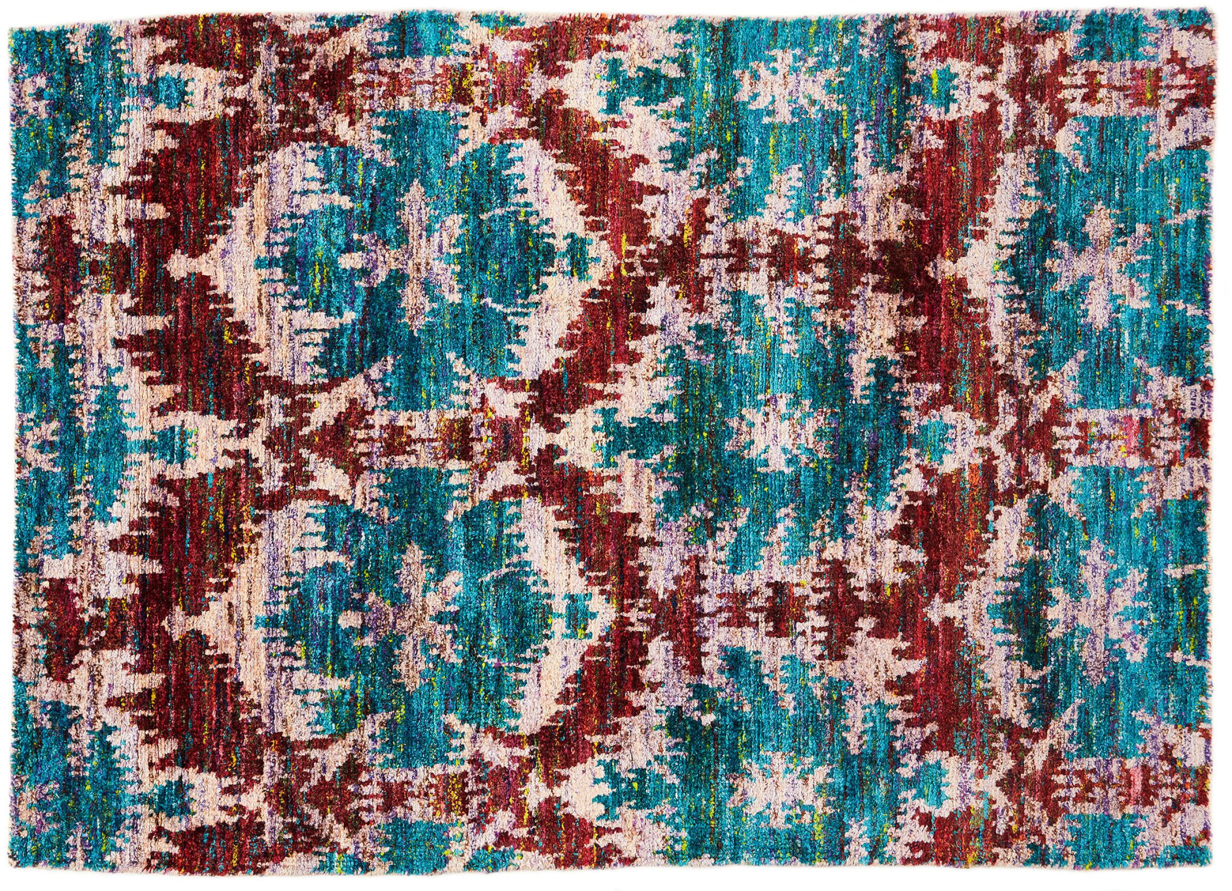 Este tapete é feito de seda pura, mantendo-se extremamente acessível. A chamada seda sari é fiada à mão na Índia. O material consiste em fios de seda pura que sobraram da tecelagem dos preciosos sarees de seda na Índia. Isso cria um carpete de alta qualidade e, ao mesmo tempo, fabricado de forma sustentável.