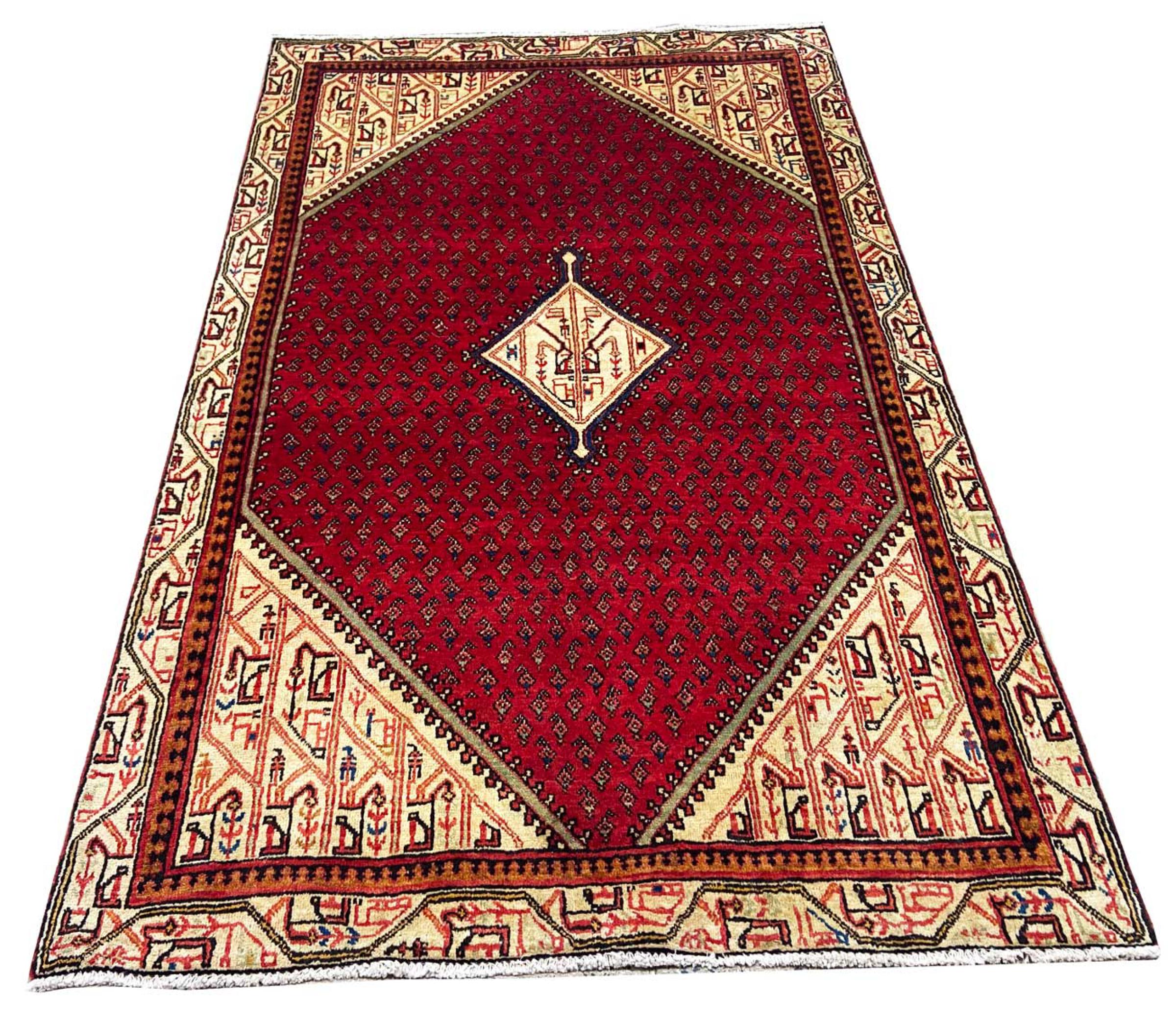 Nº do Tapete: 303174006752635 Tamanho: 221x131 cm Espessura: aproximadamente 12 mm Nós: 128 000 - 160 000 / m² Processamento: Atado à mão Veludo: Lã tecida à mão Urdidura: Algodão Origem: Pérsia / Iran Idade: Novo Peso: aproximadamente 10 kg Também conhecido como Arak , Sarough, Sarouk, Saruk, Saroq, Sultanabad Em armazém: Único - Apenas 1 em stock