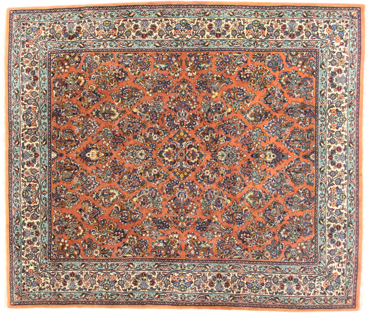Nº do Tapete: 167749001426444 Tamanho: 261x225 cm Espessura: aproximadamente 12 mm Nós: 128 000 - 160 000 / m² Processamento: Atado à mão Veludo: Lã tecida à mão Urdidura: Algodão Origem: Pérsia / Iran Idade: Novo Peso: aproximadamente 21 kg Também conhecido como Arak , Sarough, Sarouk, Saruk, Saroq, Sultanabad Em armazém: Único - Apenas 1 em stock