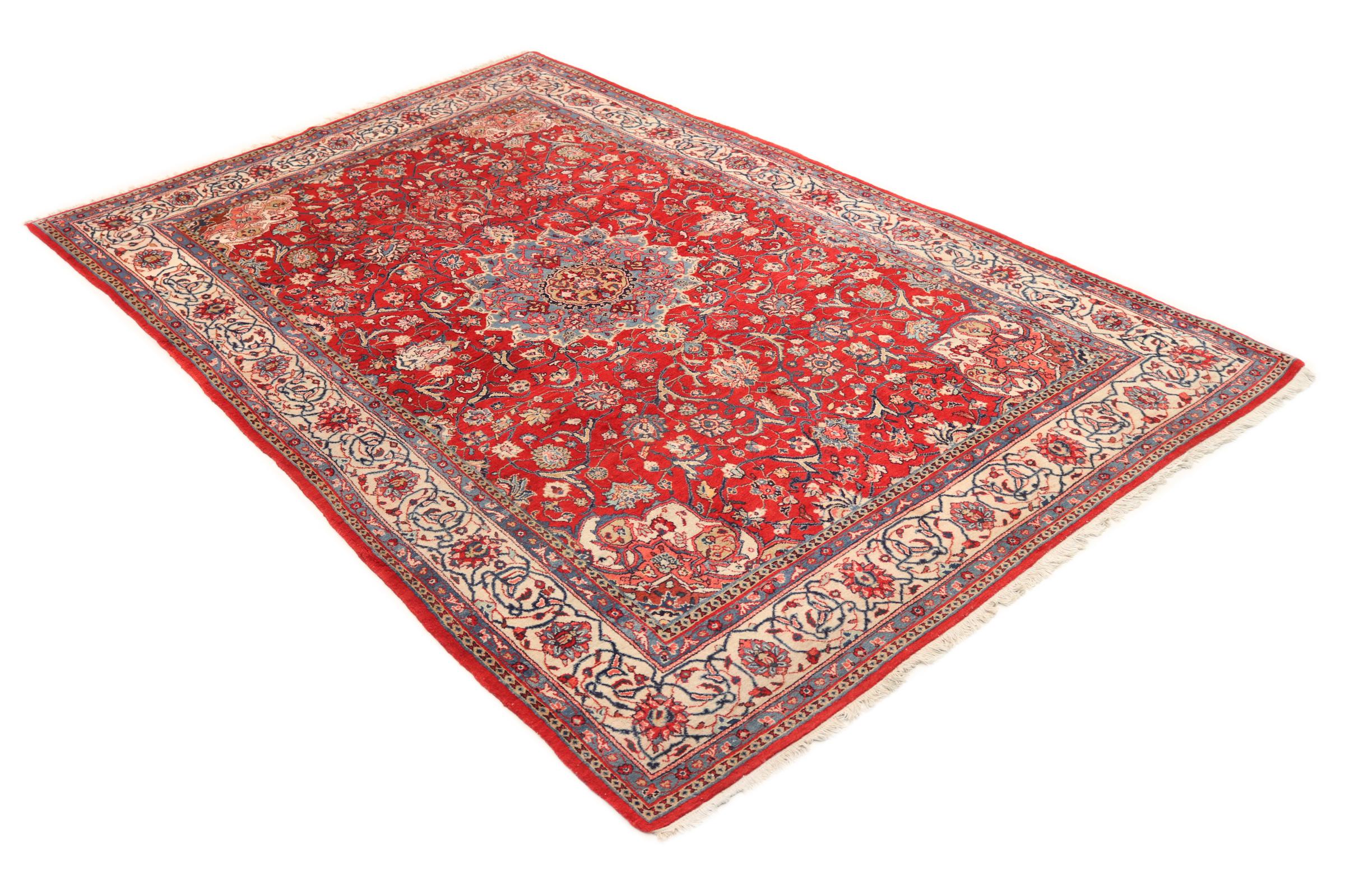 Este tapete persa foi feito à mão em Arak. A região é sinônimo de tapetes pesados, de altíssima qualidade e robustez. Os tapetes Sarough também são extremamente populares graças às suas cores fortes e belos ornamentos. Este tapete é garantido como uma obra de arte atemporal.