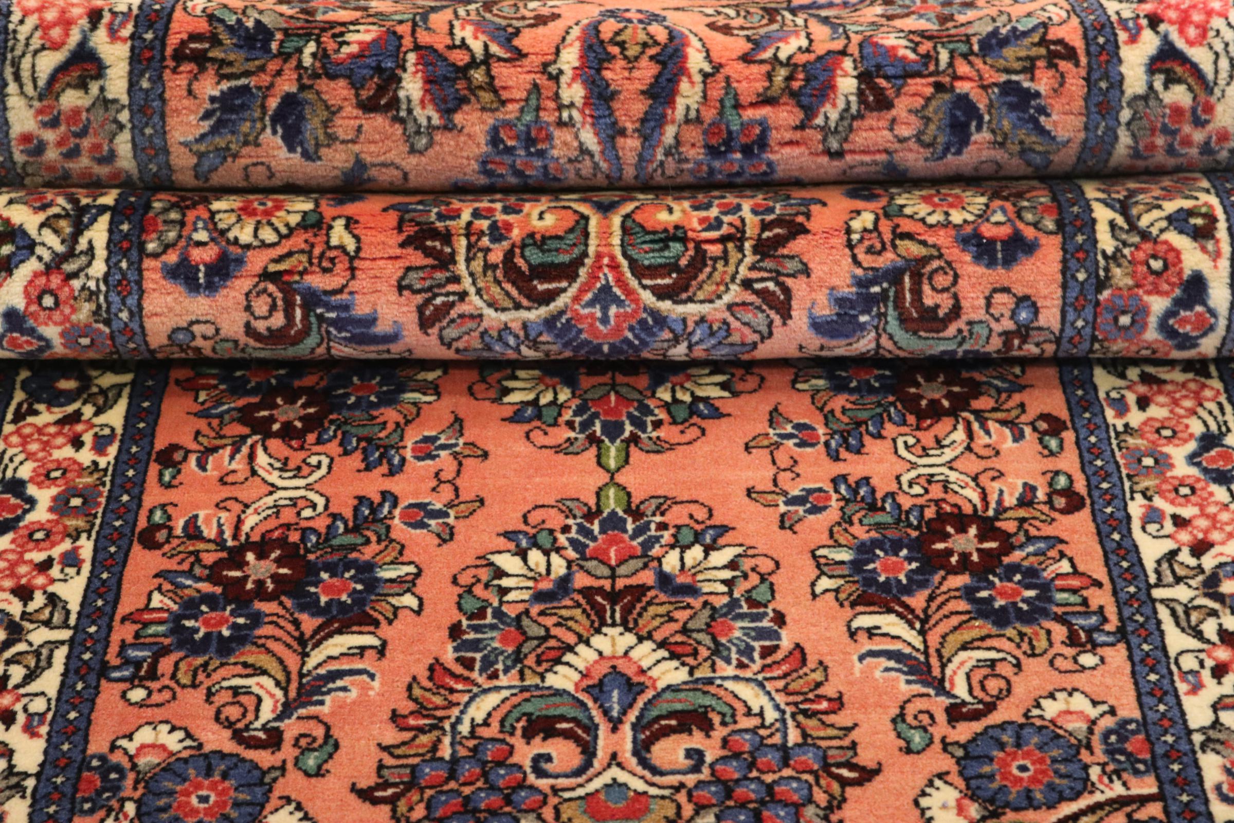 Este tapete persa foi feito à mão em Arak. A região é sinônimo de tapetes pesados, de altíssima qualidade e robustez. Os tapetes Sarough também são extremamente populares graças às suas cores fortes e belos ornamentos. Este tapete é garantido como uma obra de arte atemporal.