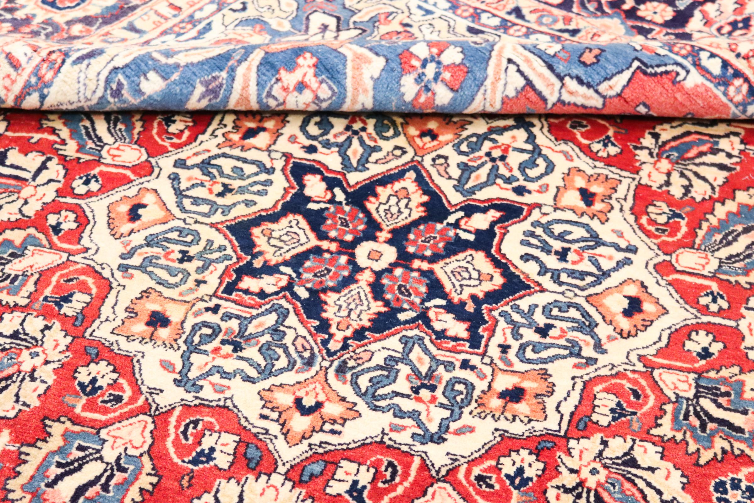 Este tapete persa foi feito à mão em Arak. A região é sinônimo de tapetes pesados, de altíssima qualidade e robustez. Os tapetes Sarough também são extremamente populares graças às suas cores fortes e belos ornamentos. Este tapete é garantido como uma obra de arte atemporal.