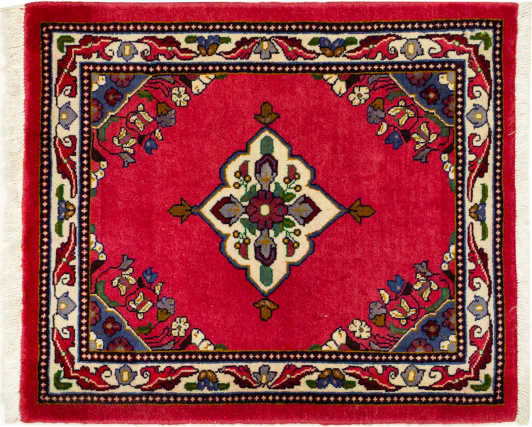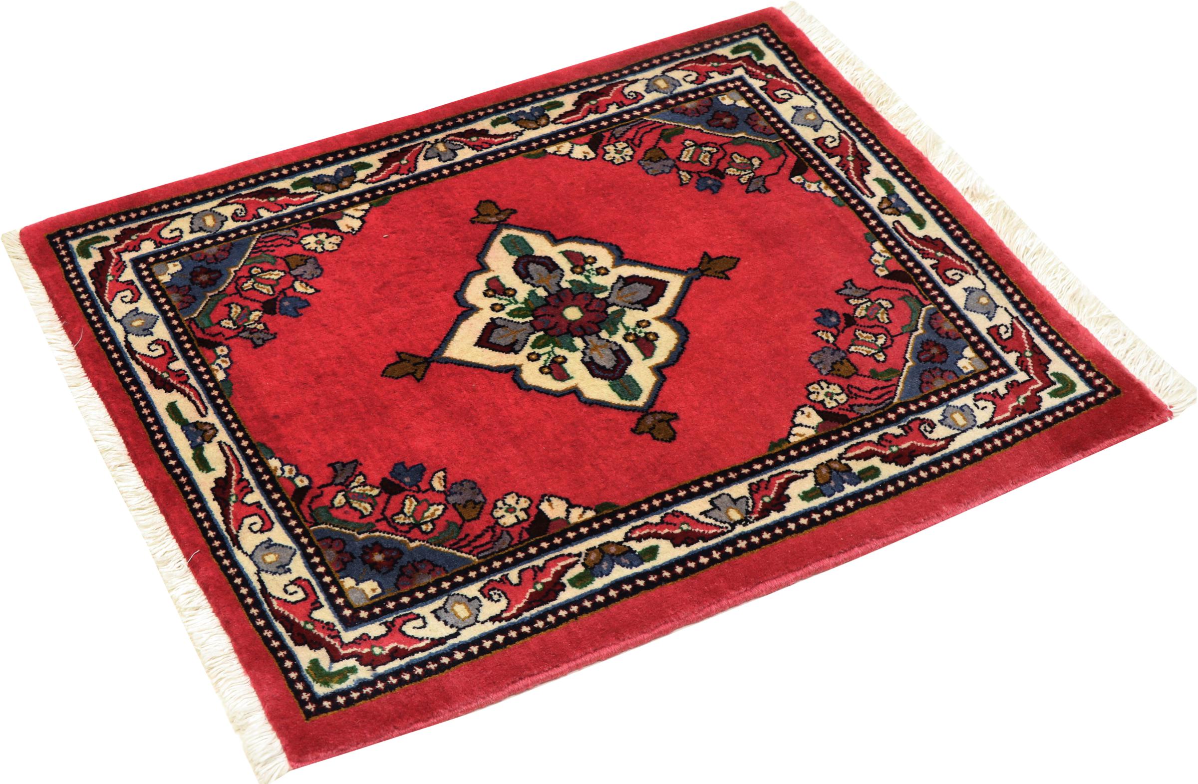 Nº do Tapete: 303354008055337 Tamanho: 79x69 cm Espessura: aproximadamente 5 mm Nós: 128 000 - 160 000 / m² Processamento: Atado à mão Veludo: Lã tecida à mão Urdidura: Algodão Origem: Pérsia / Iran Idade: Novo Peso: aproximadamente 2 kg Também conhecido como Arak , Sarough, Sarouk, Saruk, Saroq, Sultanabad Em armazém: Único - Apenas 1 em stock