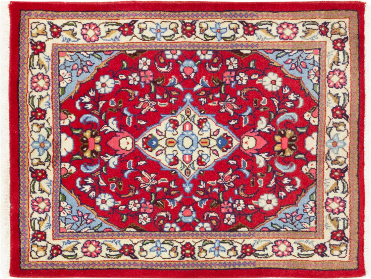 Nº do Tapete: 30331900749809 Tamanho: 83x64 cm Espessura: aproximadamente 5 mm Nós: 128 000 - 160 000 / m² Processamento: Atado à mão Veludo: Lã tecida à mão Urdidura: Algodão Origem: Pérsia / Iran Idade: Novo Peso: aproximadamente 2 kg Também conhecido como Arak , Sarough, Sarouk, Saruk, Saroq, Sultanabad Em armazém: Único - Apenas 1 em stock