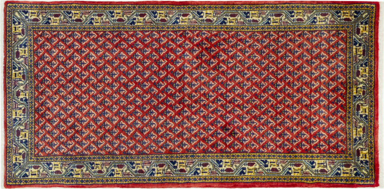 Nº do Tapete: 303477003069318 Tamanho: 131x66 cm Espessura: aproximadamente 5 mm Nós: 200 000 - 250 000 / m² Processamento: Atado à mão Veludo: Lã tecida à mão Urdidura: Algodão Origem: Pérsia / Iran Idade: Novo Peso: aproximadamente 3 kg Também conhecido como Sarough Mir Em armazém: Único - Apenas 1 em stock