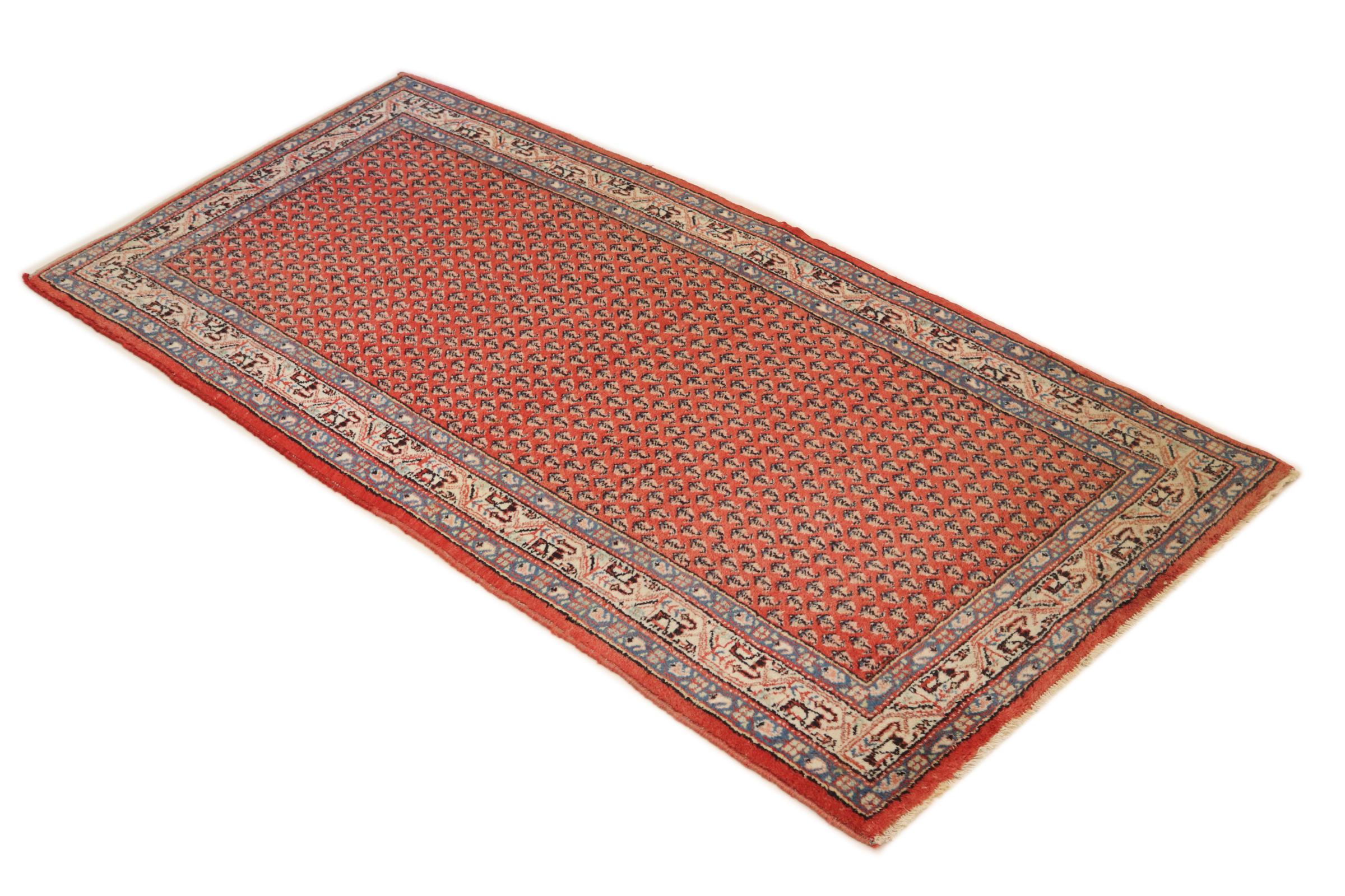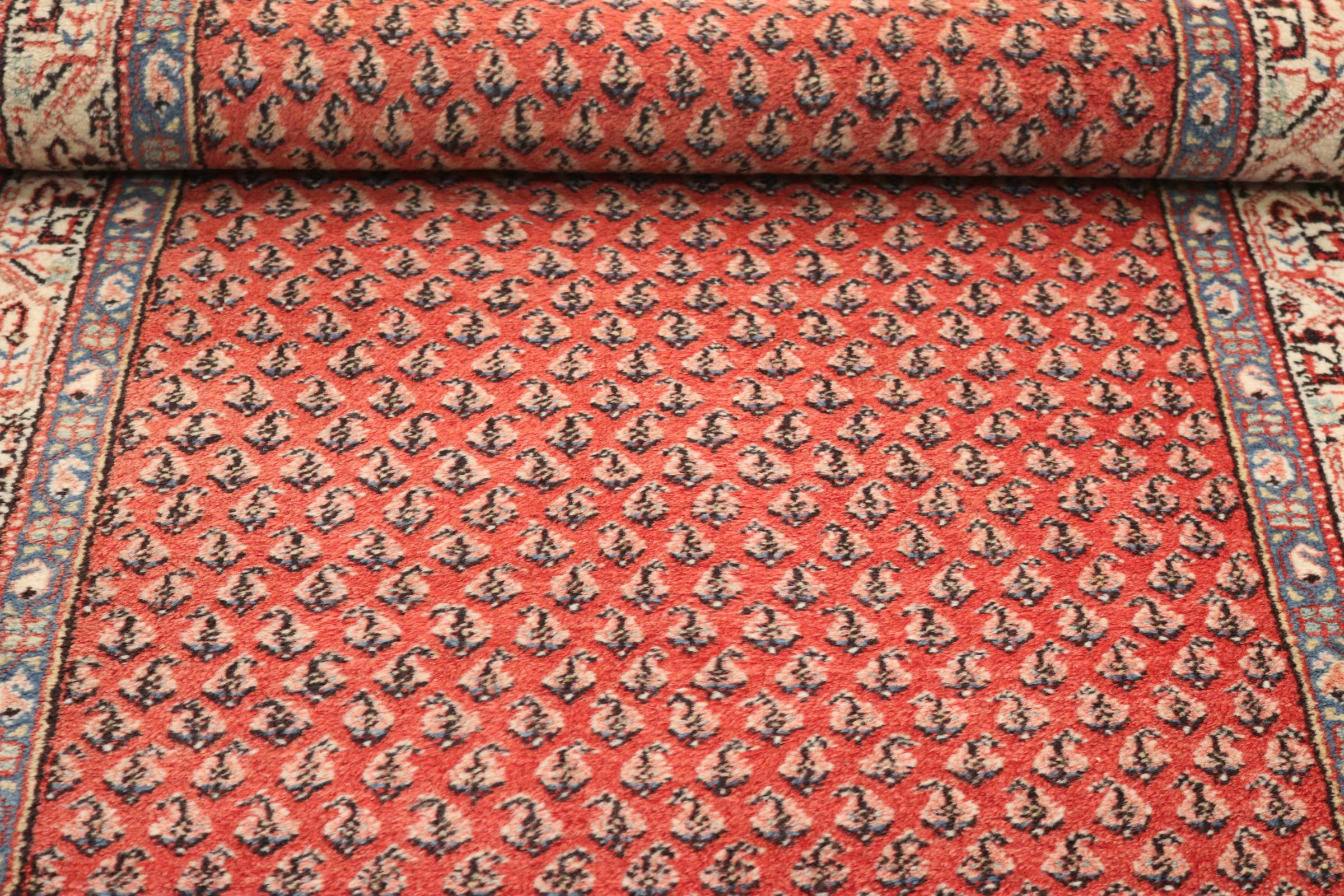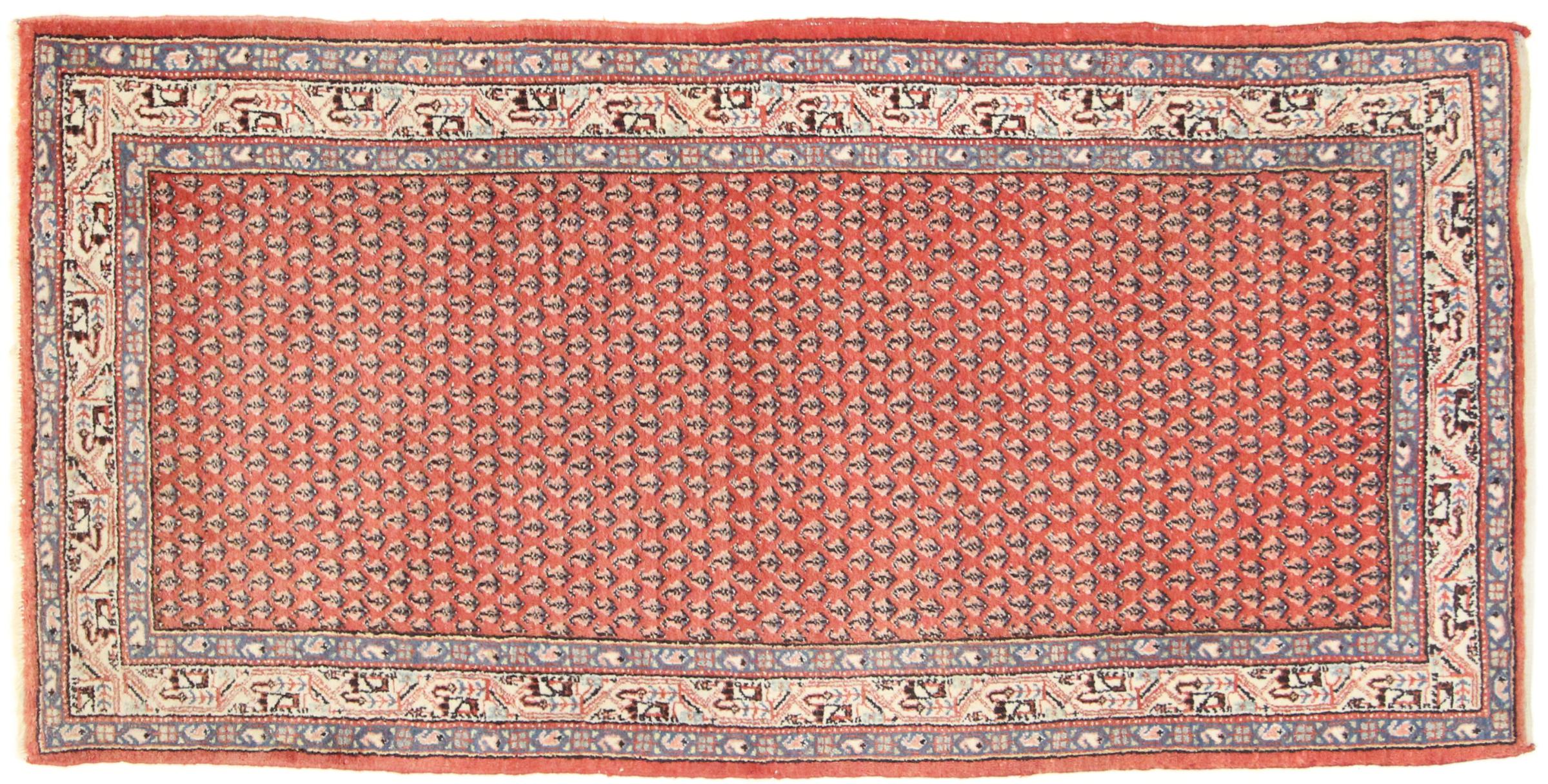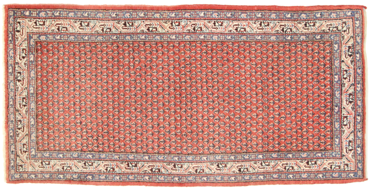 Nº do Tapete: 167488002871292 Tamanho: 214x109 cm Espessura: aproximadamente 12 mm Nós: 128 000 - 160 000 / m² Processamento: Atado à mão Veludo: Lã tecida à mão Urdidura: Algodão Origem: Pérsia / Iran Idade: Novo Peso: aproximadamente 9 kg Também conhecido como Sarough Mir Em armazém: Único - Apenas 1 em stock