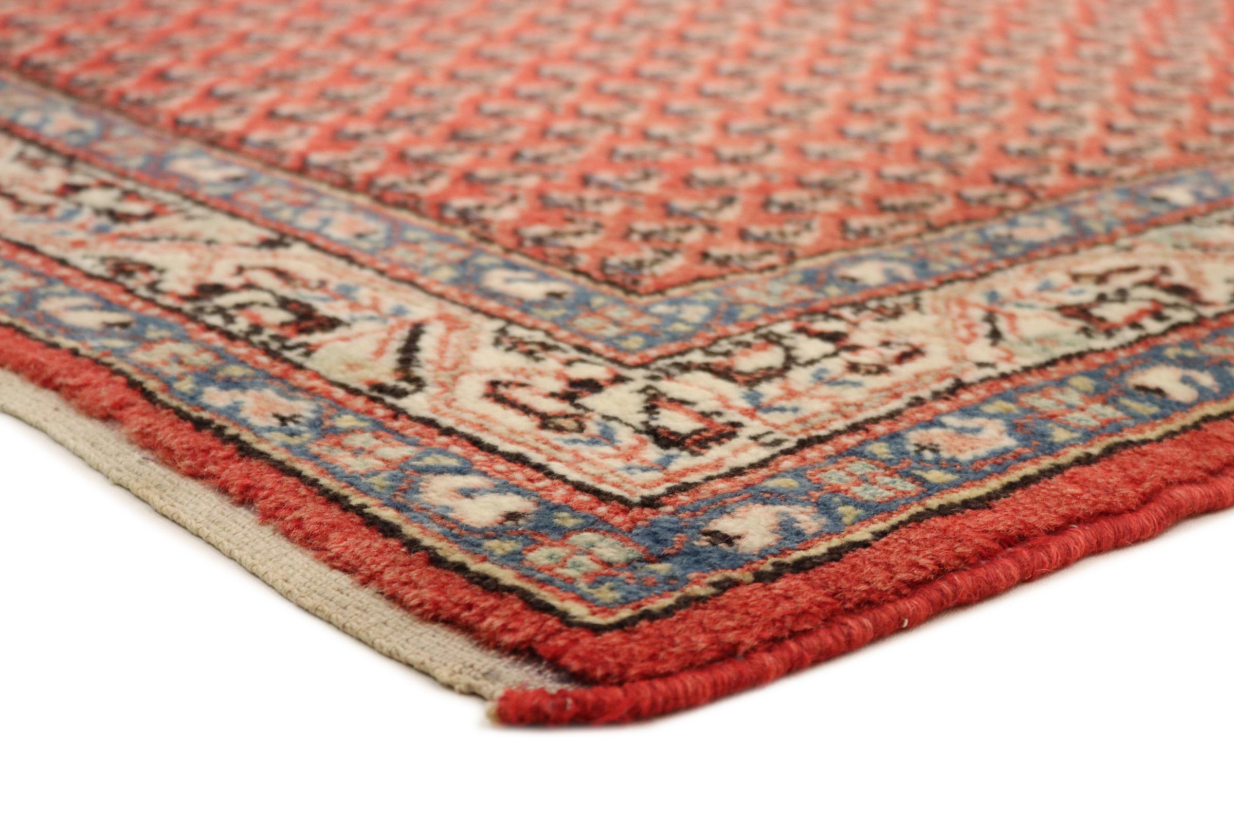 Este tapete Sarough Mir tem um padrão muito típico, também designado por desenho "all-over". É claro e evita deliberadamente ornamentos curvos. Desta forma, o tapete pode acalmar uma divisão e, ao mesmo tempo, dar-lhe um toque de cor viva.