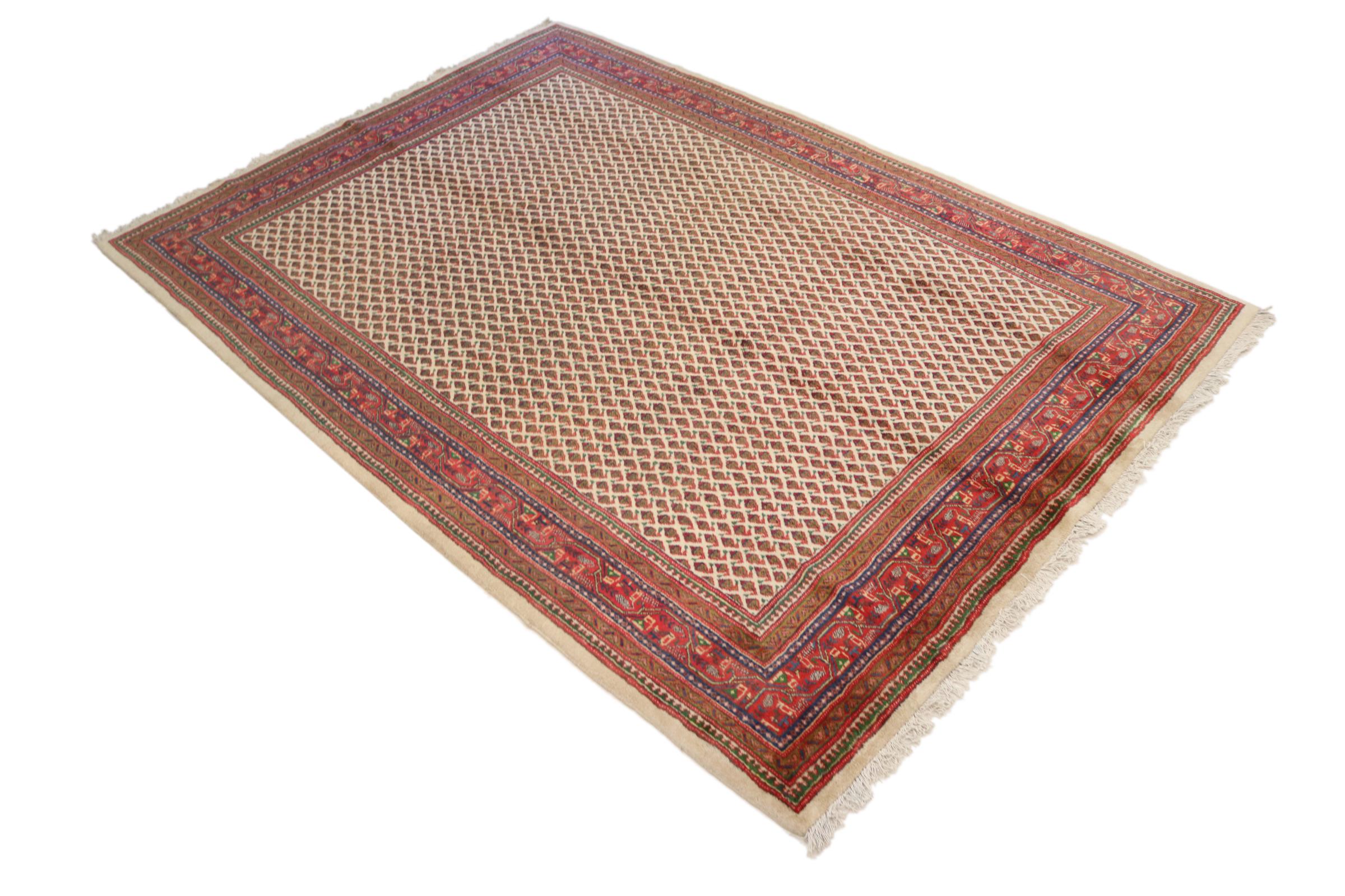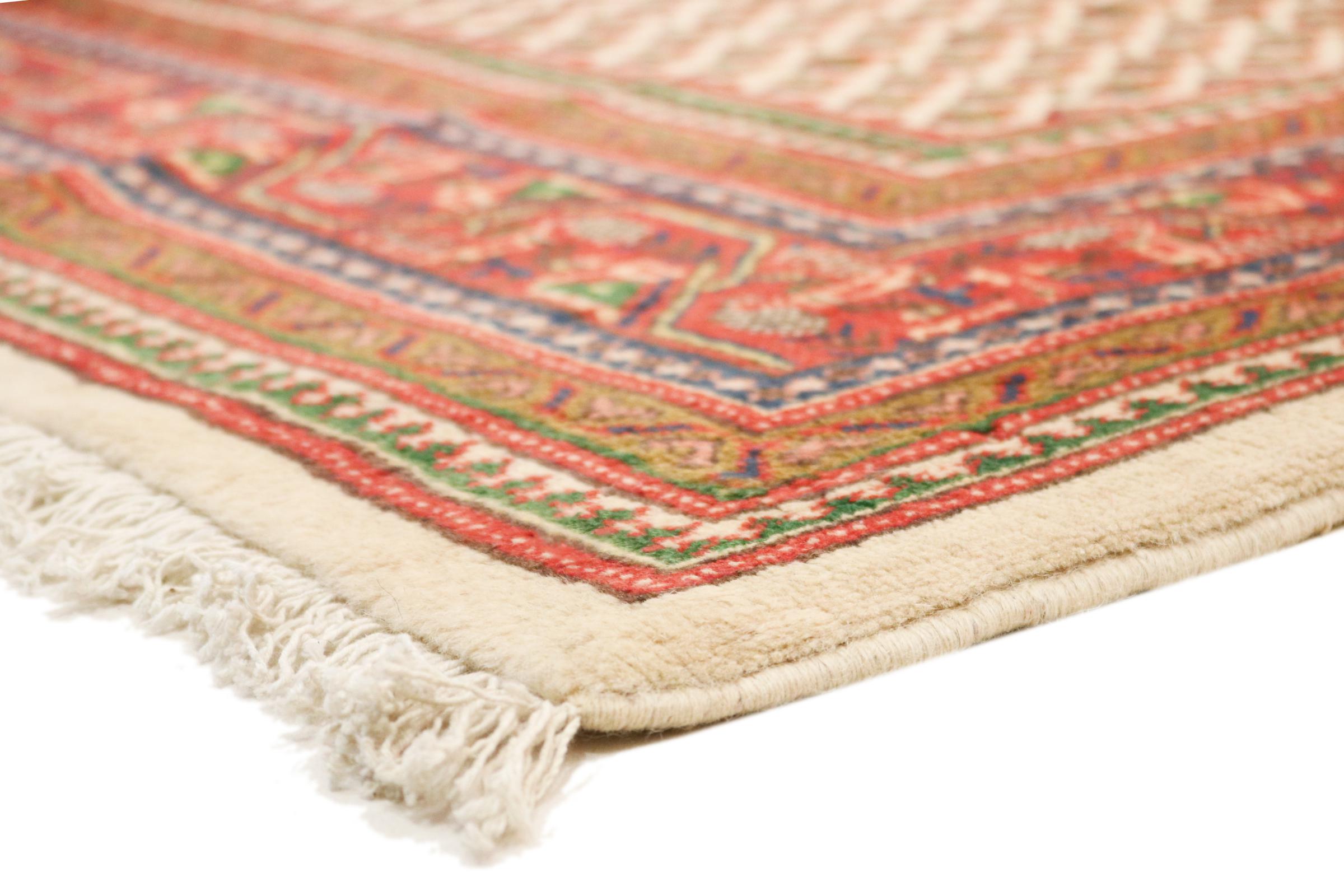 Este tapete Sarough Mir tem um padrão muito típico, também designado por desenho "all-over". É claro e evita deliberadamente ornamentos curvos. Desta forma, o tapete pode acalmar uma divisão e, ao mesmo tempo, dar-lhe um toque de cor viva.