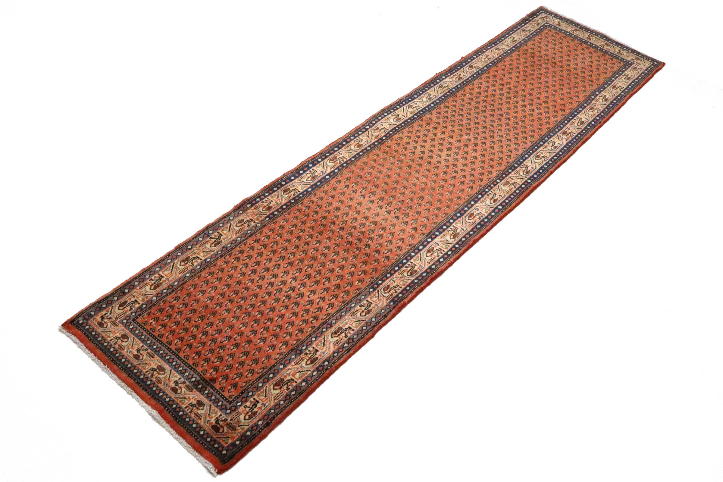 Nº do Tapete: 110898002214432 Tamanho: 321x81 cm Espessura: aproximadamente 12 mm Nós: 200 000 - 250 000 / m² Processamento: Atado à mão Veludo: Lã tecida à mão Urdidura: Algodão Origem: Pérsia / Iran Idade: Novo Peso: aproximadamente 10 kg Também conhecido como Sarough Mir Em armazém: Único - Apenas 1 em stock