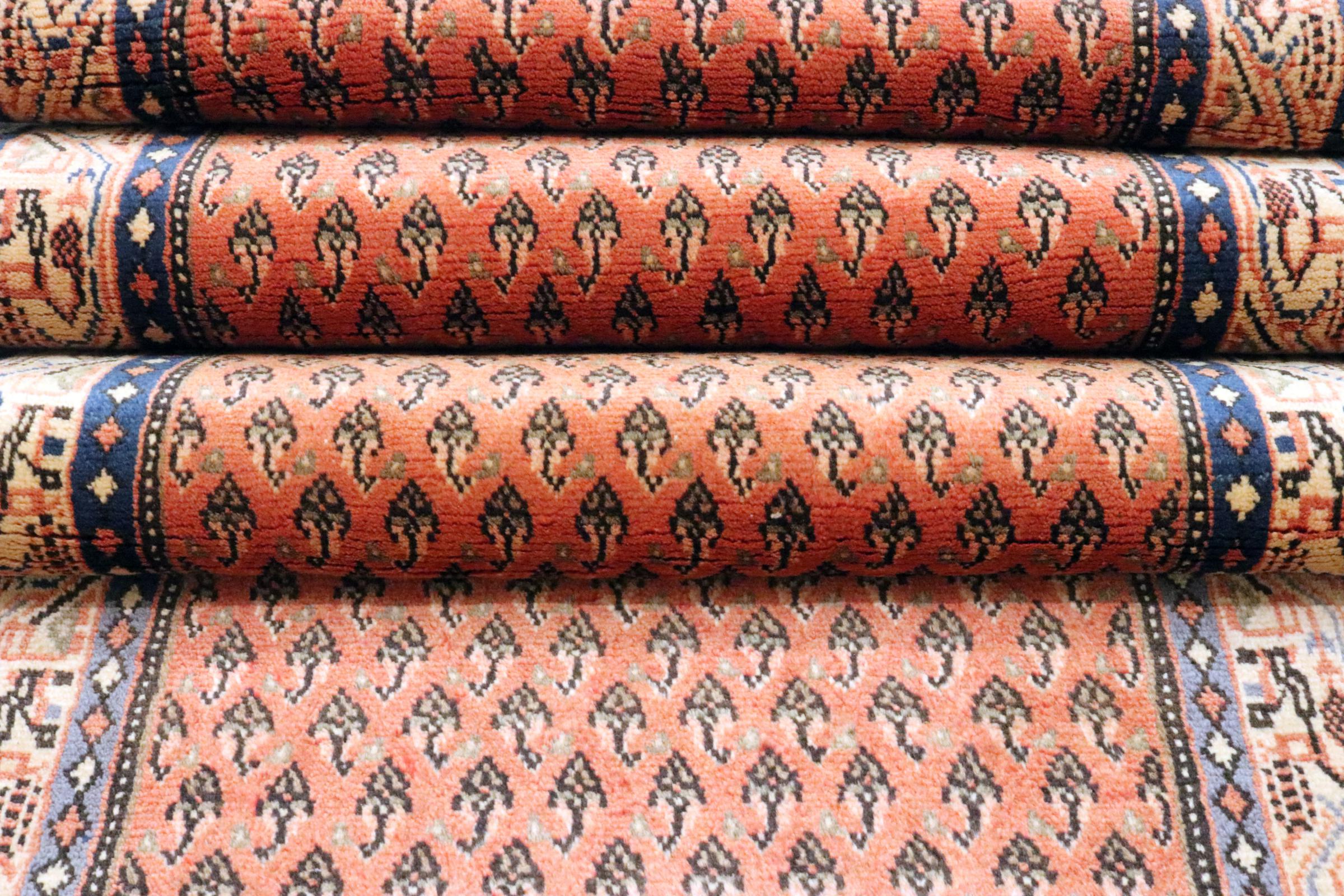 Este tapete Sarough Mir tem um padrão muito típico, também designado por desenho "all-over". É claro e evita deliberadamente ornamentos curvos. Desta forma, o tapete pode acalmar uma divisão e, ao mesmo tempo, dar-lhe um toque de cor viva.