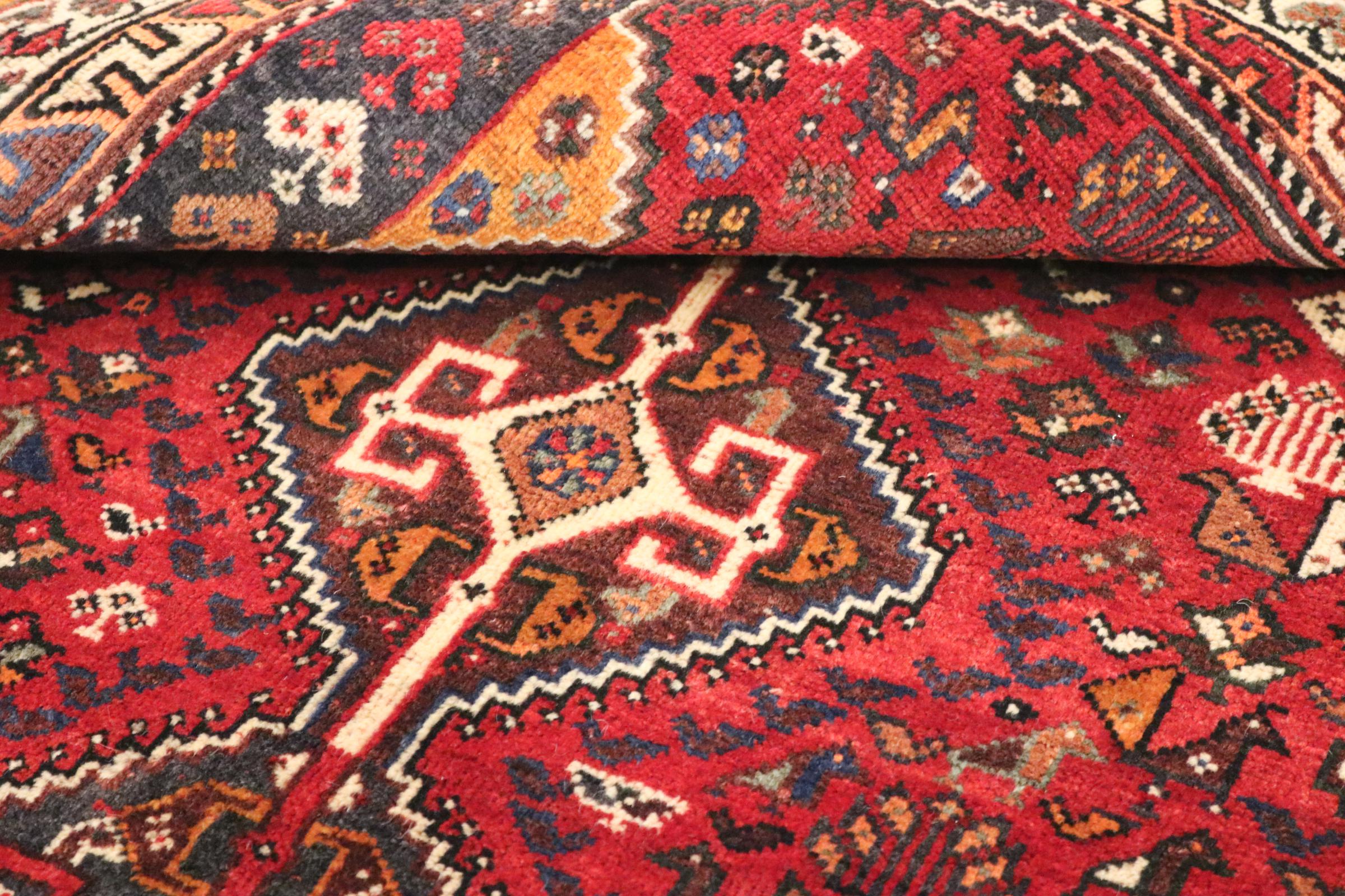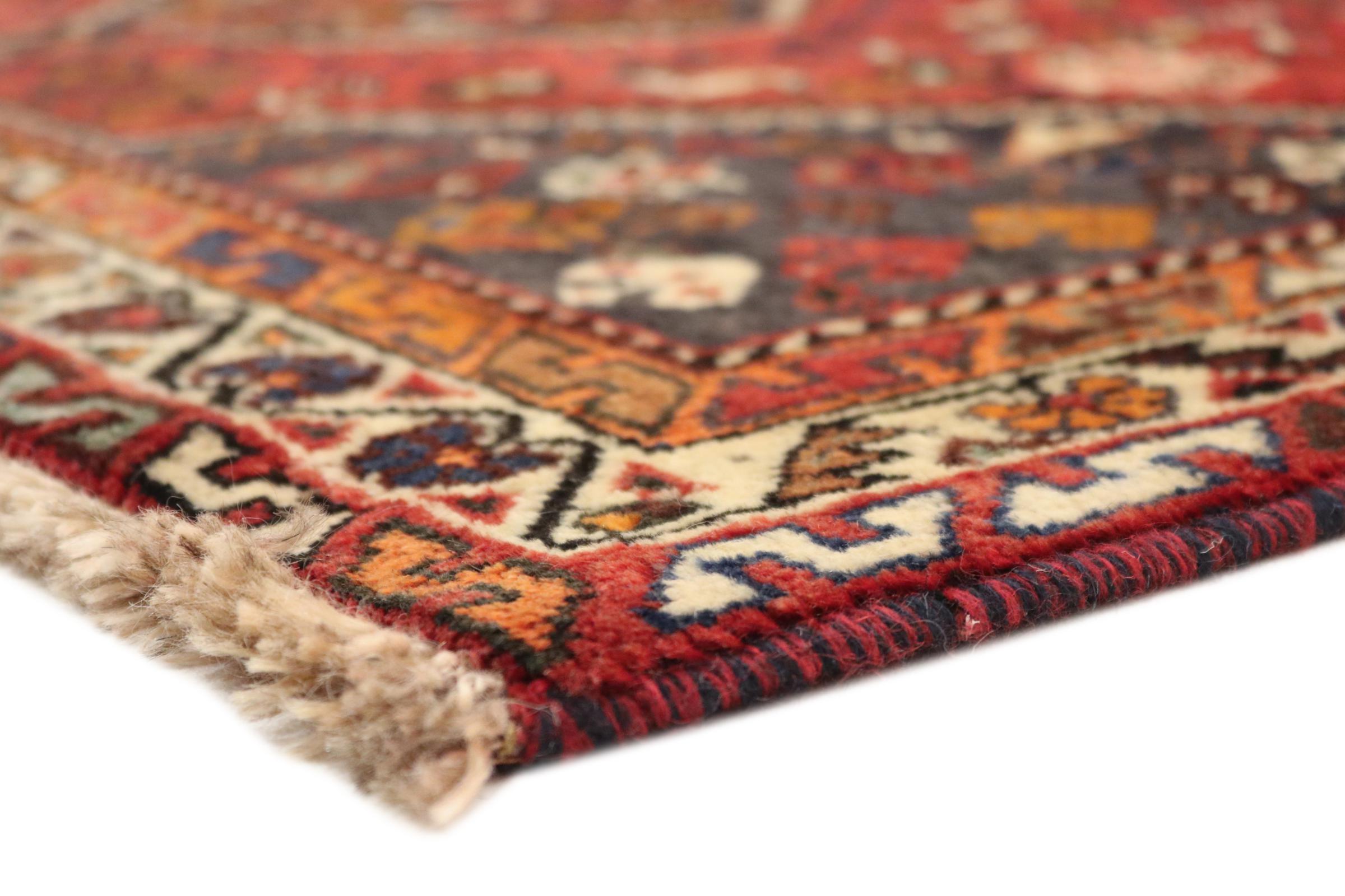 Este tapete Shiraz reflecte o trabalho artesanal dos nómadas da província de Fars. O seu design simples, as cores bonitas e a boa qualidade falam por si, tal como a sua longa vida. Os padrões e formas geométricos são intemporais, sem exceção, e extremamente populares também nos interiores escandinavos. As cores fortes trazem aconchego e calor ao seu quarto.