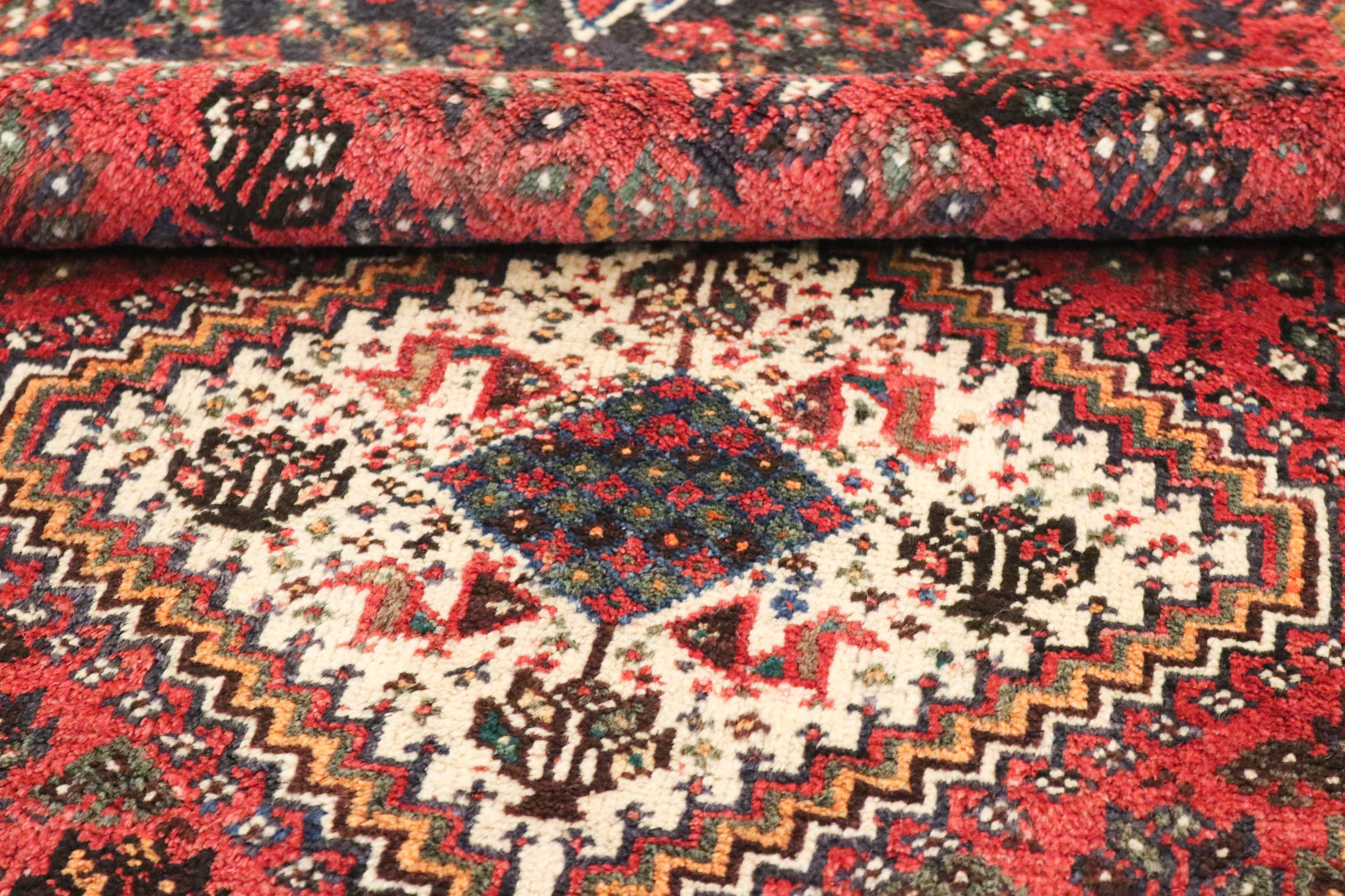 Este tapete Shiraz reflecte o trabalho artesanal dos nómadas da província de Fars. O seu design simples, as cores bonitas e a boa qualidade falam por si, tal como a sua longa vida. Os padrões e formas geométricos são intemporais, sem exceção, e extremamente populares também nos interiores escandinavos. As cores fortes trazem aconchego e calor ao seu quarto.