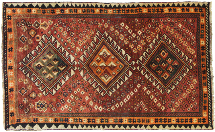 Este tapete pertence a tapetes de aldeia e nómadas do Irão, antiga Pérsia. Este tipo de tapete é atado à mão em cidades mais pequenas e aldeias da velha tradição. Mesmo os nómadas ainda atam tapetes persas ao ar livre. Os tapetes são atados sem padrão e completamente a partir da cabeça. Caracterizam-se por ornamentos clássicos, dispostos em padrões rectos e geométricos. Graças à sua origem cultural-tradicional, estes tapetes têm um carácter único que encarna a antiga Pérsia.