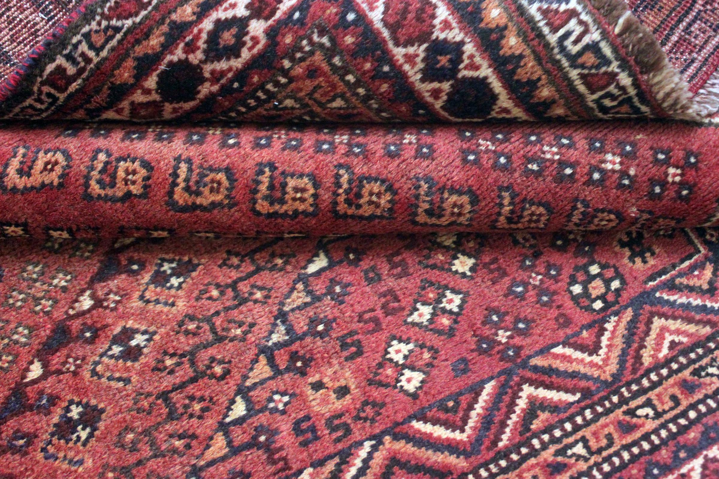 Este tapete pertence a tapetes de aldeia e nómadas do Irão, antiga Pérsia. Este tipo de tapete é atado à mão em cidades mais pequenas e aldeias da velha tradição. Mesmo os nómadas ainda atam tapetes persas ao ar livre. Os tapetes são atados sem padrão e completamente a partir da cabeça. Caracterizam-se por ornamentos clássicos, dispostos em padrões rectos e geométricos. Graças à sua origem cultural-tradicional, estes tapetes têm um carácter único que encarna a antiga Pérsia.