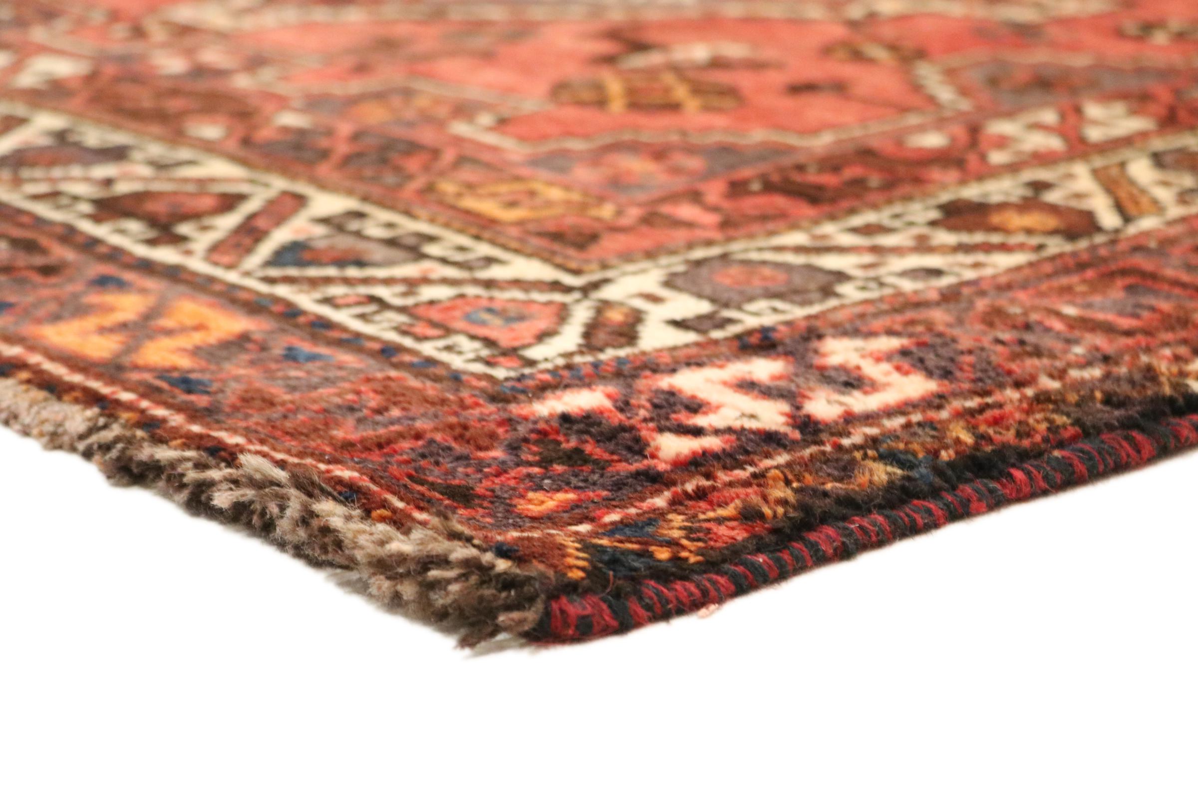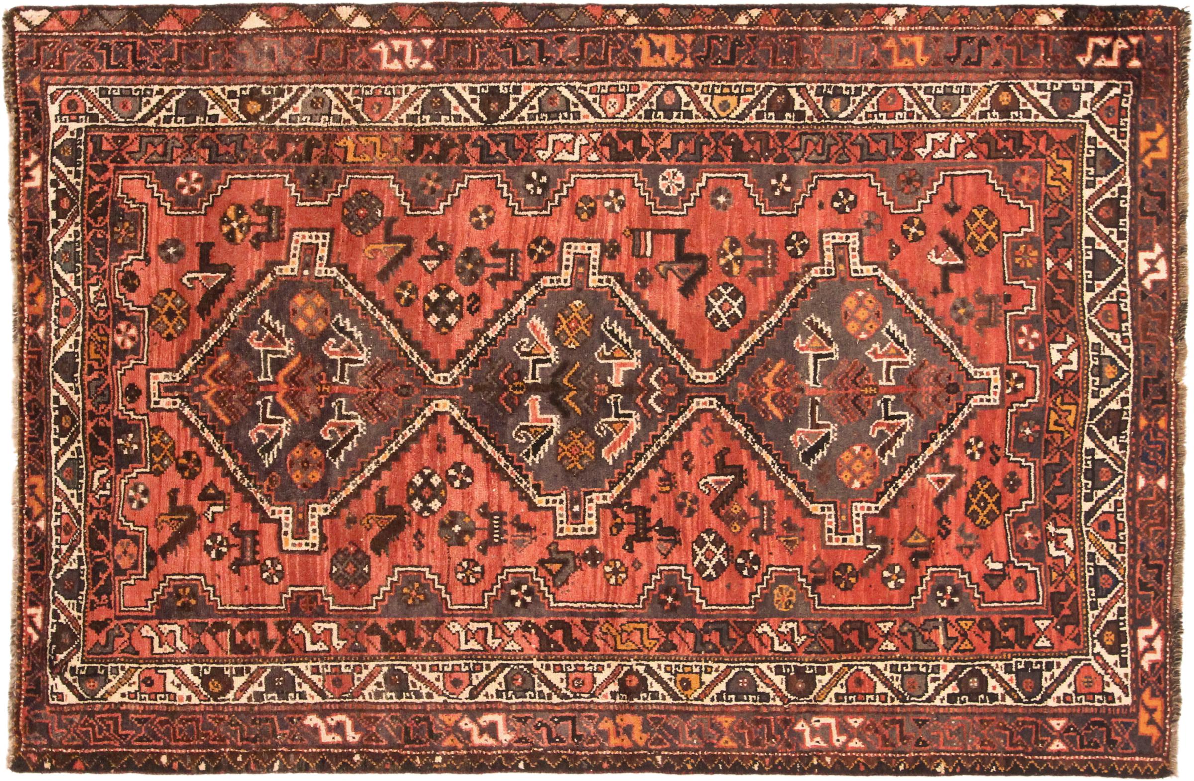 Este tapete pertence a tapetes de aldeia e nómadas do Irão, antiga Pérsia. Este tipo de tapete é atado à mão em cidades mais pequenas e aldeias da velha tradição. Mesmo os nómadas ainda atam tapetes persas ao ar livre. Os tapetes são atados sem padrão e completamente a partir da cabeça. Caracterizam-se por ornamentos clássicos, dispostos em padrões rectos e geométricos. Graças à sua origem cultural-tradicional, estes tapetes têm um carácter único que encarna a antiga Pérsia.