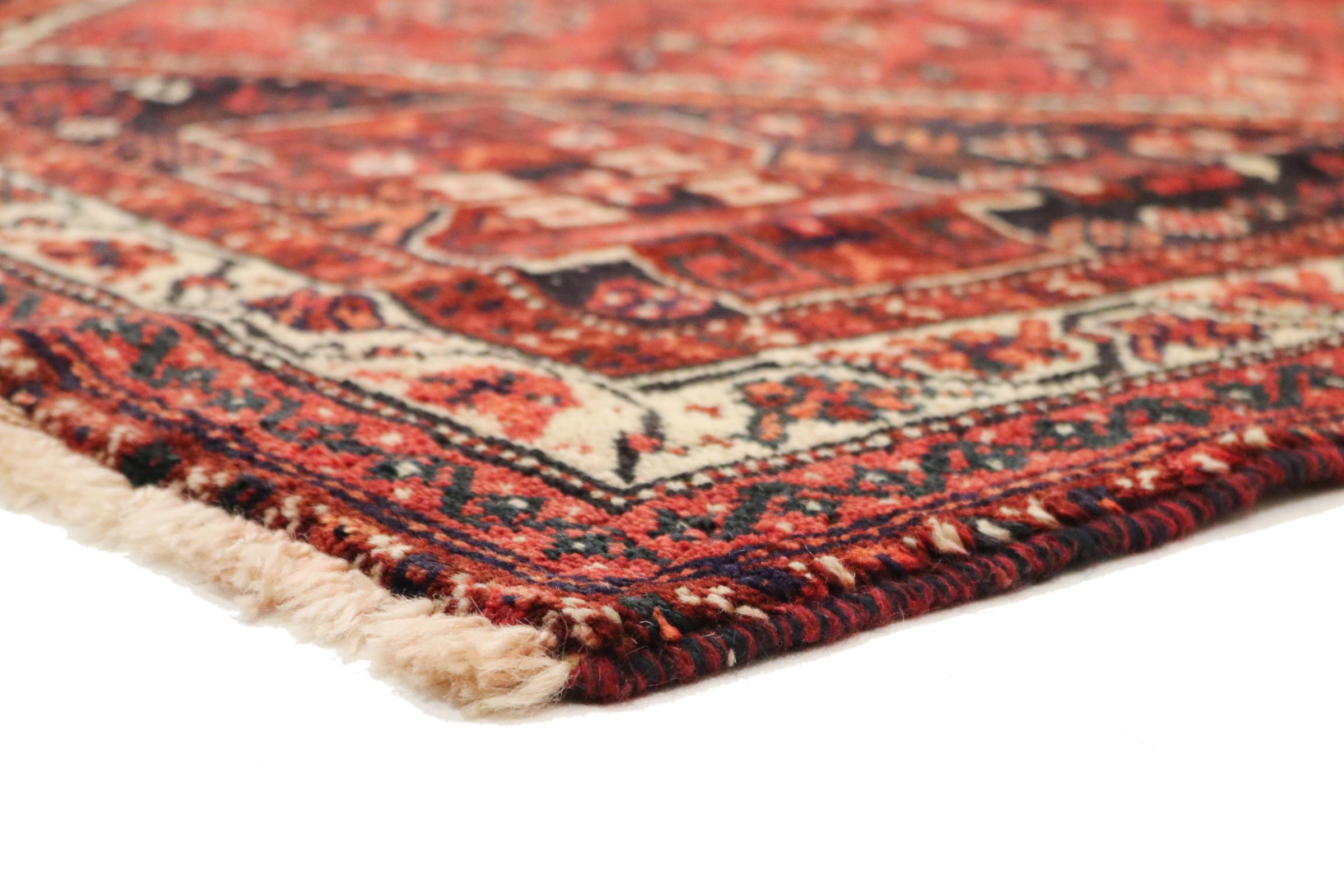 Este tapete pertence a tapetes de aldeia e nómadas do Irão, antiga Pérsia. Este tipo de tapete é atado à mão em cidades mais pequenas e aldeias da velha tradição. Mesmo os nómadas ainda atam tapetes persas ao ar livre. Os tapetes são atados sem padrão e completamente a partir da cabeça. Caracterizam-se por ornamentos clássicos, dispostos em padrões rectos e geométricos. Graças à sua origem cultural-tradicional, estes tapetes têm um carácter único que encarna a antiga Pérsia.