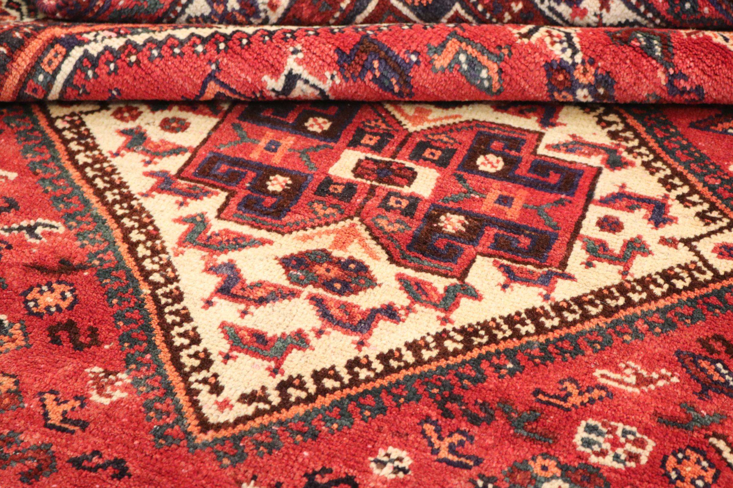 Este tapete Shiraz reflecte o trabalho artesanal dos nómadas da província de Fars. O seu design simples, as cores bonitas e a boa qualidade falam por si, tal como a sua longa vida. Os padrões e formas geométricos são intemporais, sem exceção, e extremamente populares também nos interiores escandinavos. As cores fortes trazem aconchego e calor ao seu quarto.