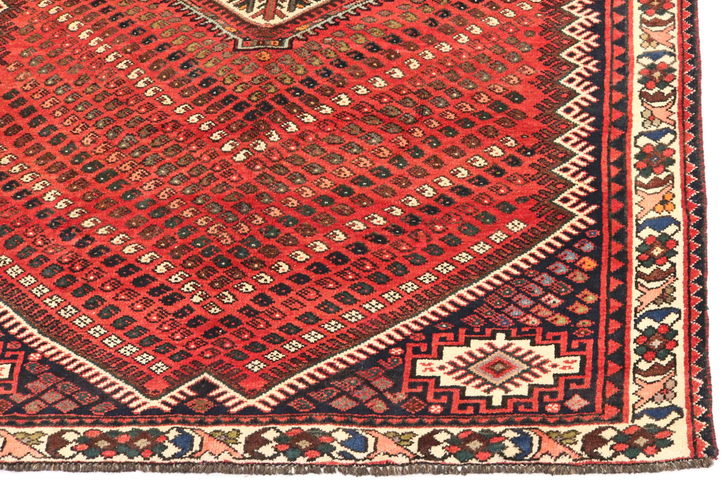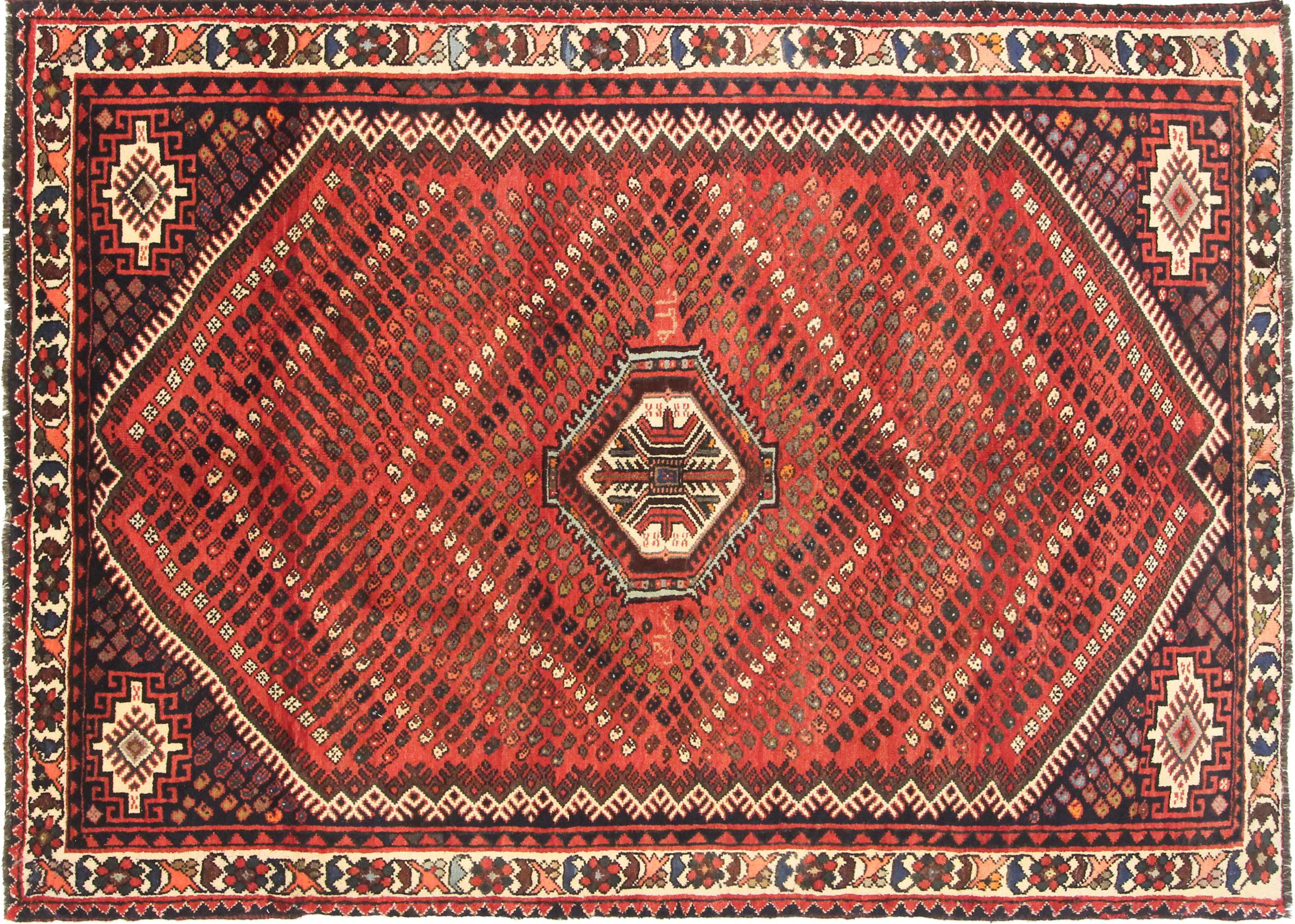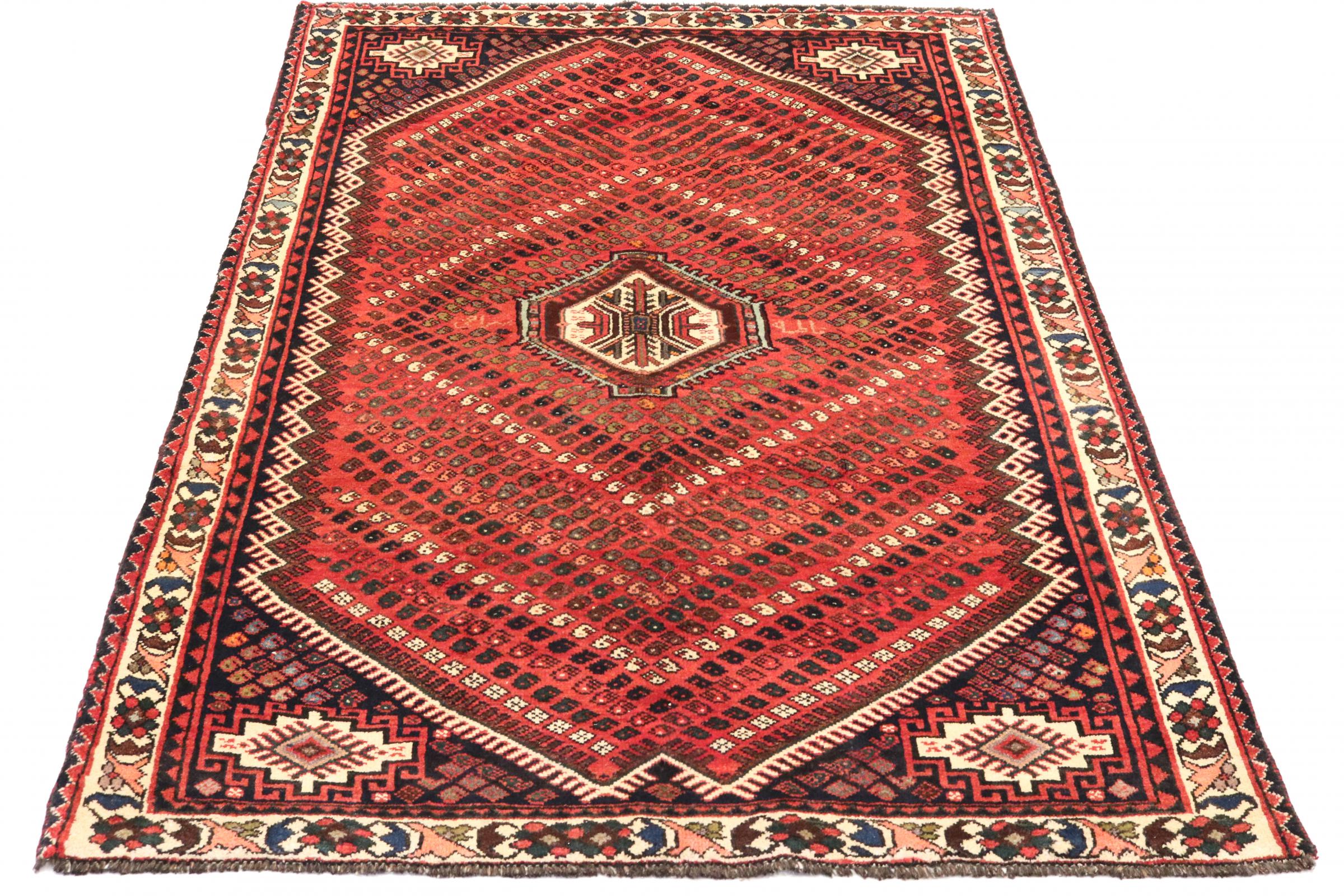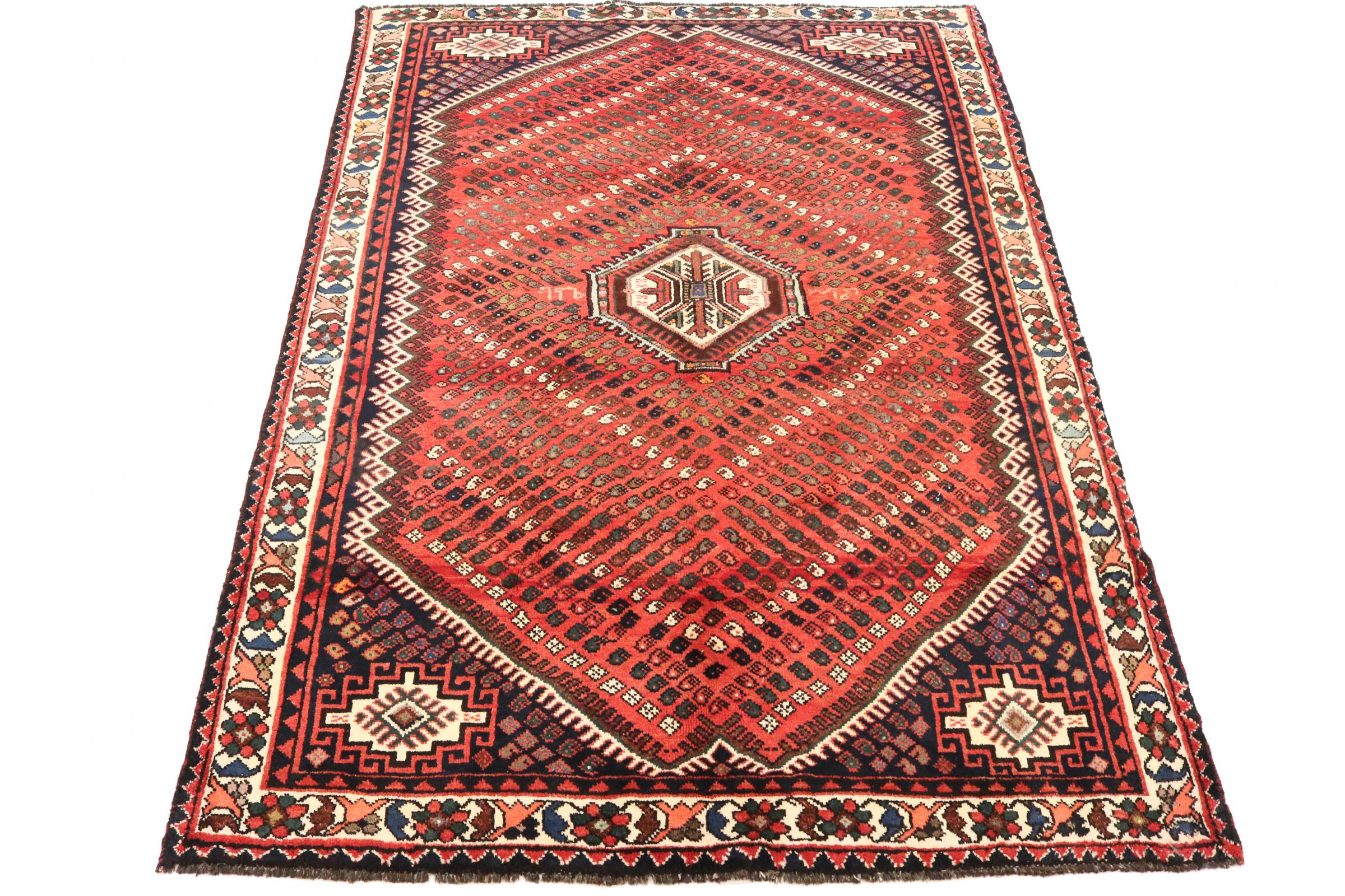 Este tapete pertence a tapetes de aldeia e nómadas do Irão, antiga Pérsia. Este tipo de tapete é atado à mão em cidades mais pequenas e aldeias da velha tradição. Mesmo os nómadas ainda atam tapetes persas ao ar livre. Os tapetes são atados sem padrão e completamente a partir da cabeça. Caracterizam-se por ornamentos clássicos, dispostos em padrões rectos e geométricos. Graças à sua origem cultural-tradicional, estes tapetes têm um carácter único que encarna a antiga Pérsia.
