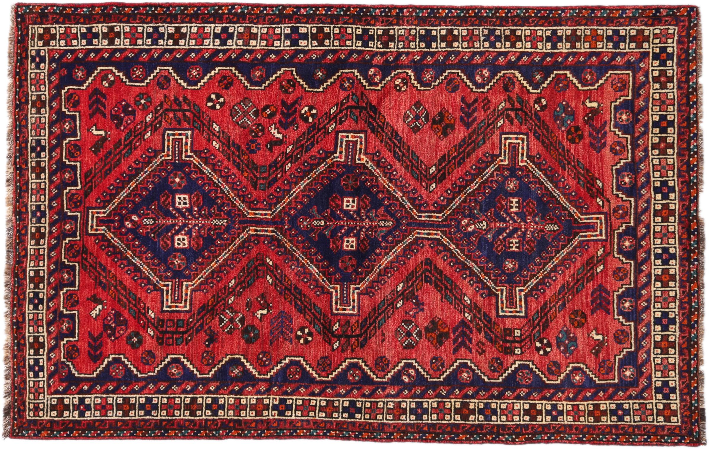 Este tapete pertence a tapetes de aldeia e nómadas do Irão, antiga Pérsia. Este tipo de tapete é atado à mão em cidades mais pequenas e aldeias da velha tradição. Mesmo os nómadas ainda atam tapetes persas ao ar livre. Os tapetes são atados sem padrão e completamente a partir da cabeça. Caracterizam-se por ornamentos clássicos, dispostos em padrões rectos e geométricos. Graças à sua origem cultural-tradicional, estes tapetes têm um carácter único que encarna a antiga Pérsia.