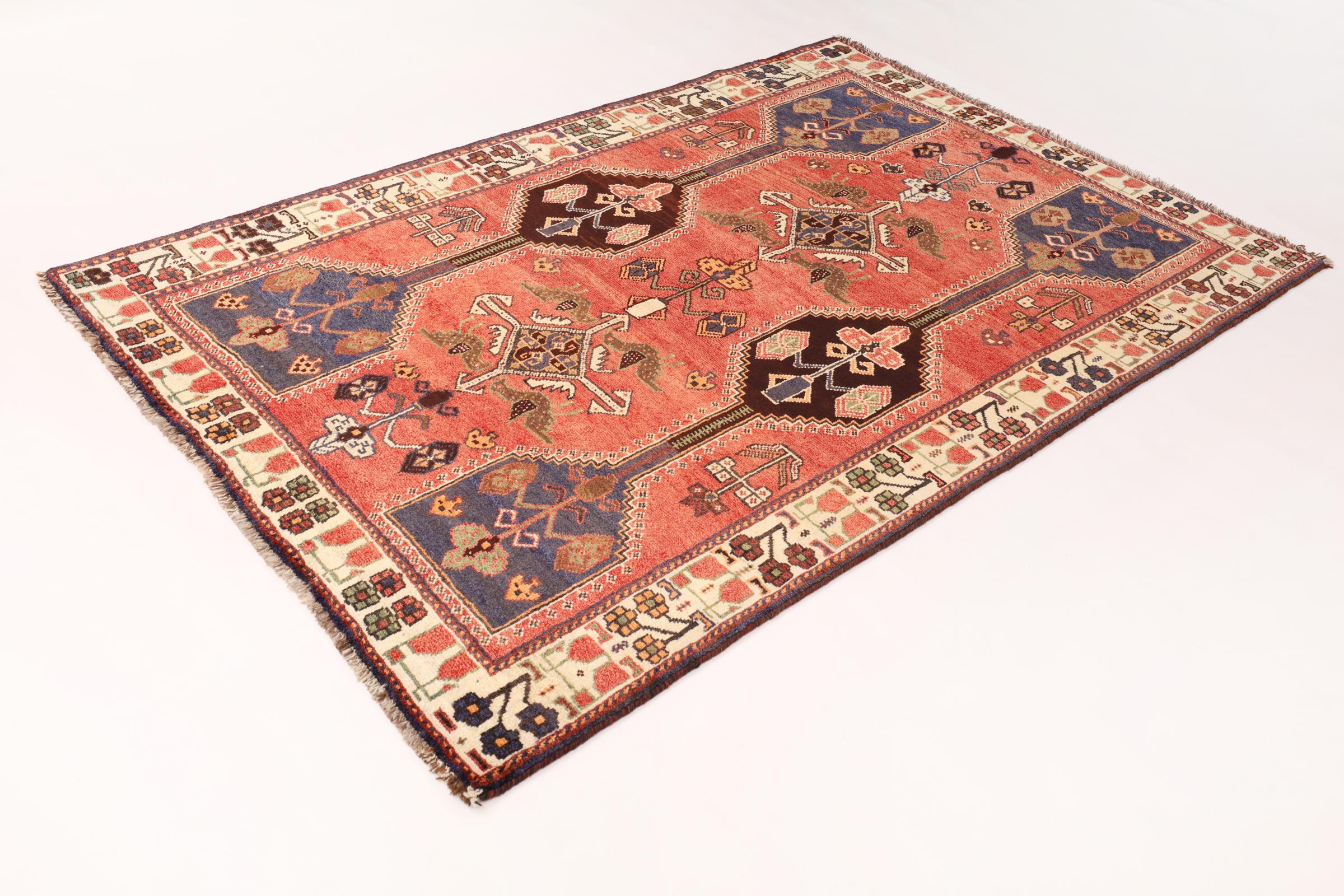 Este tapete Shiraz reflecte o trabalho artesanal dos nómadas da província de Fars. O seu design simples, as cores bonitas e a boa qualidade falam por si, tal como a sua longa vida. Os padrões e formas geométricos são intemporais, sem exceção, e extremamente populares também nos interiores escandinavos. As cores fortes trazem aconchego e calor ao seu quarto.