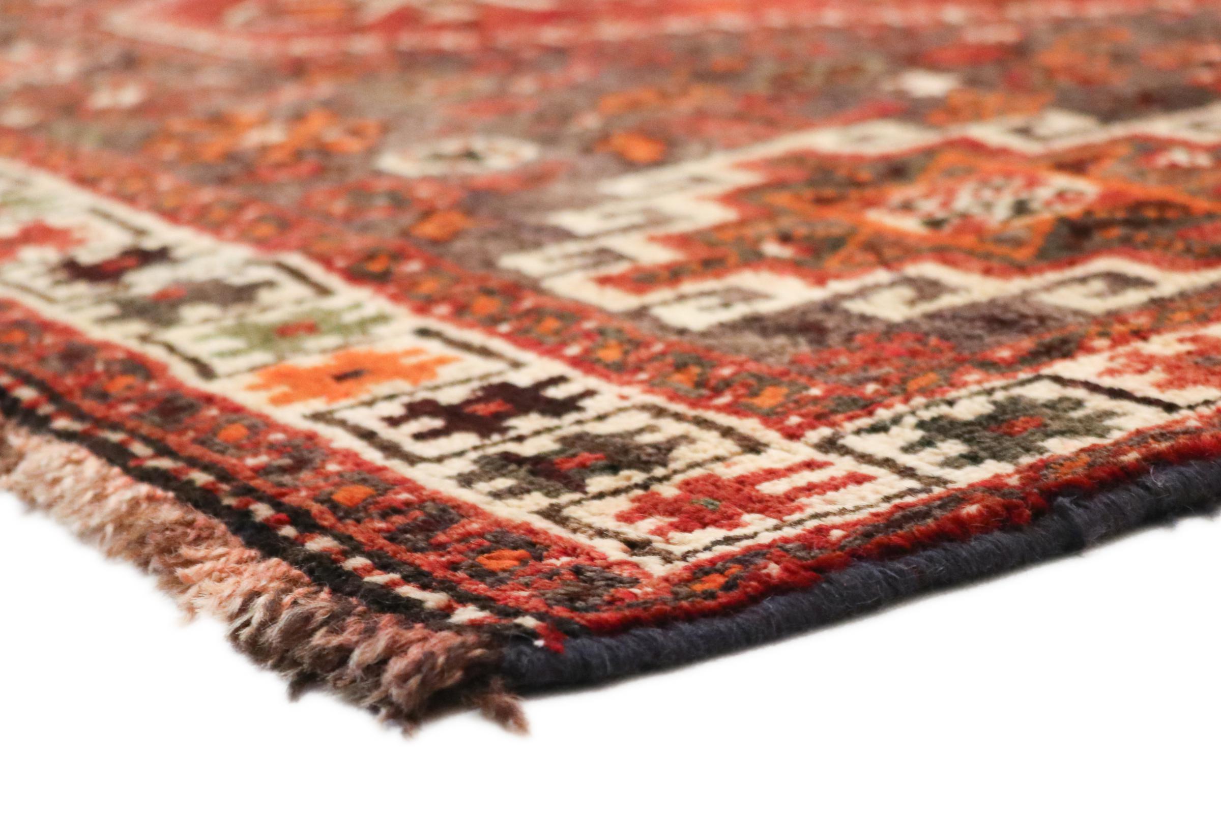 Este tapete pertence a tapetes de aldeia e nómadas do Irão, antiga Pérsia. Este tipo de tapete é atado à mão em cidades mais pequenas e aldeias da velha tradição. Mesmo os nómadas ainda atam tapetes persas ao ar livre. Os tapetes são atados sem padrão e completamente a partir da cabeça. Caracterizam-se por ornamentos clássicos, dispostos em padrões rectos e geométricos. Graças à sua origem cultural-tradicional, estes tapetes têm um carácter único que encarna a antiga Pérsia.