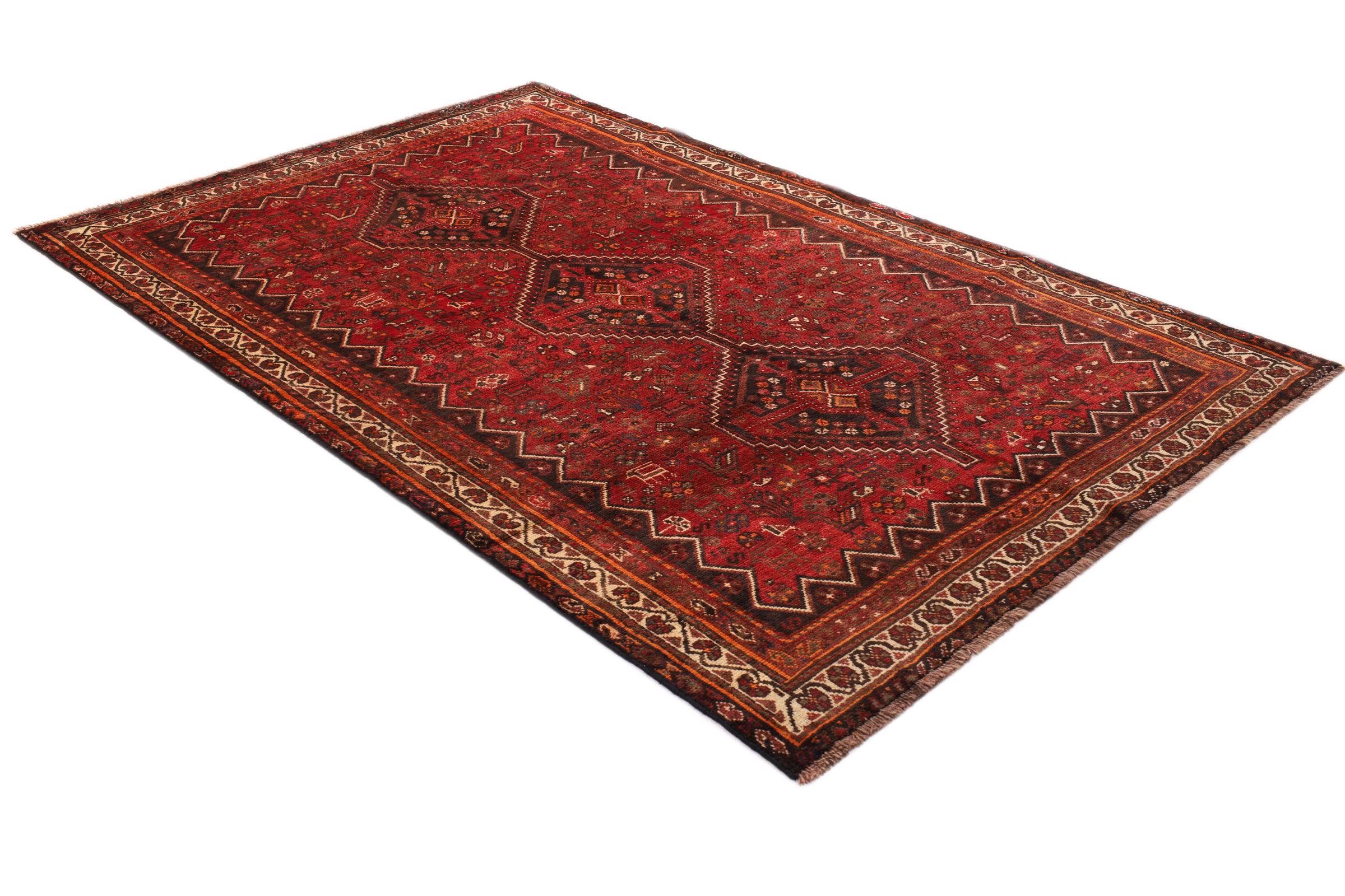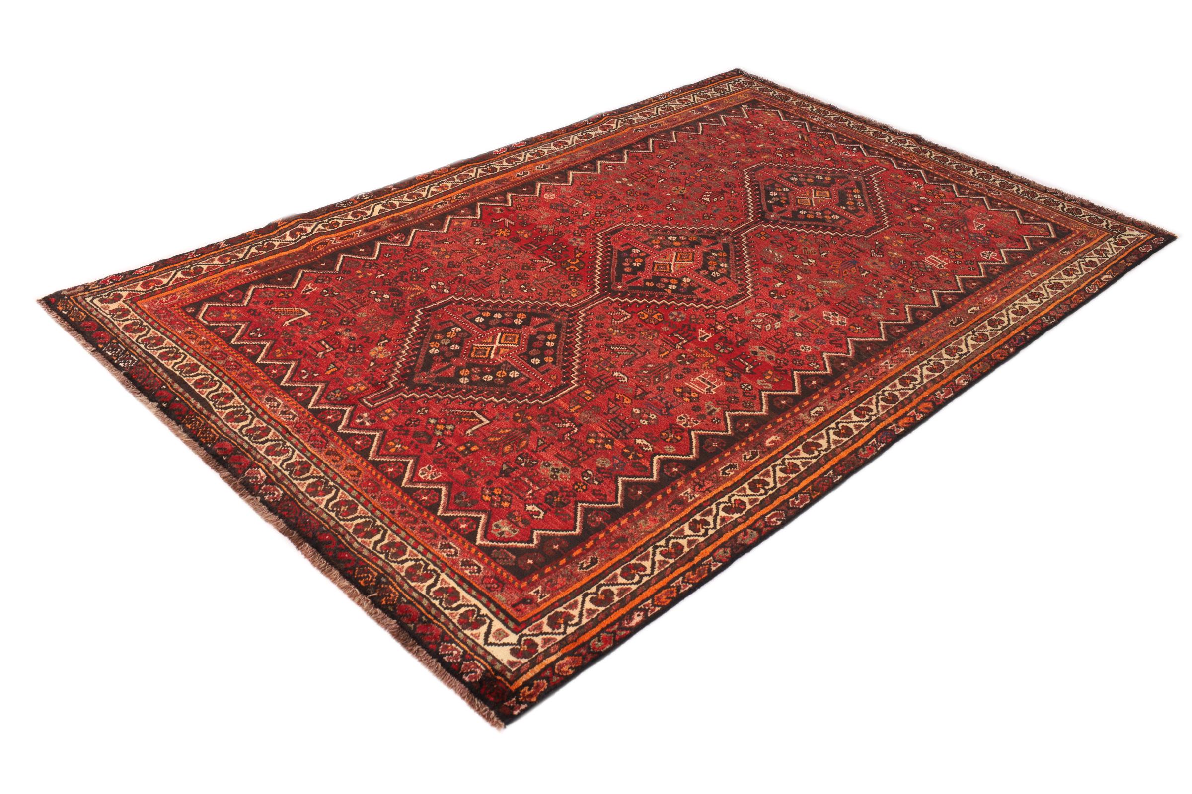 Este tapete Shiraz reflecte o trabalho artesanal dos nómadas da província de Fars. O seu design simples, as cores bonitas e a boa qualidade falam por si, tal como a sua longa vida. Os padrões e formas geométricos são intemporais, sem exceção, e extremamente populares também nos interiores escandinavos. As cores fortes trazem aconchego e calor ao seu quarto.